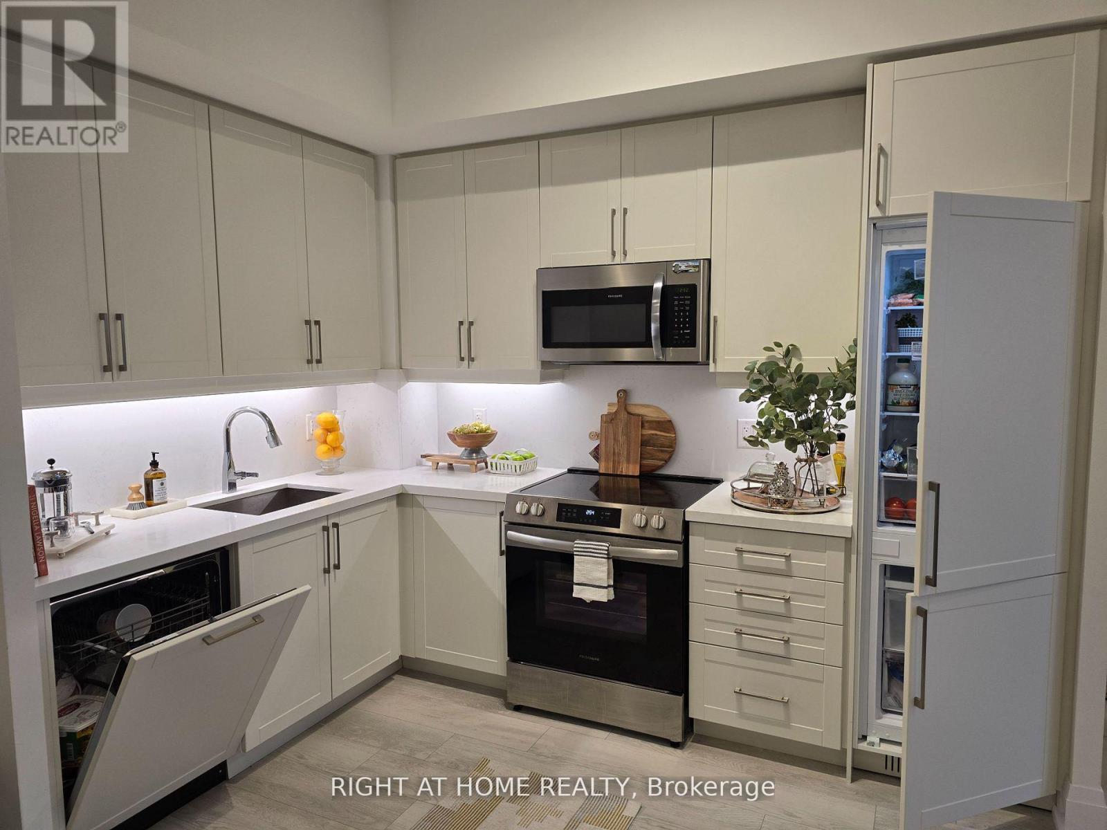 Welcome to The Branch Condos, a new condo community Located in a highly sought-after area by Zancor Homes at 2450 Old Bronte Rd., Oakville. This Bright and Spacious, 2 Bedroom 2 Bath Suite features 10' Ceilings. spacious open-concept living and dining area, Modern kitchen features high-end stainless steel appliances, Modern Upgraded built-in Fridge and DW, w/top quality countertops & Backsplash. The primary bedroom boasts an ensuite bathroom w/ glass shower and ample closet space, while the second bedroom offers flexibility for a guest room or home office. bathrooms are upgraded with Glass Shower & sold countertops, contemporary fixtures and finishes. Amenities include 24 hour concierge, indoor pool, sauna, yoga room, party rooms, outdoor bbq's, landscaped courtyard, pet station and many more.Rarely offered! 4 underground parking spots and 3 Lockers included with this unit. **EXTRAS** Bult-in Appliances, upgraded Kitchen cabinets, Sink & Faucet, Surround Sound speakers & Home theater, pot lights, Frameless Glass showers w/marble floor tiles, upgraded trim baseboard, Motorised blinds w/Remote control for all windows (id:64974)