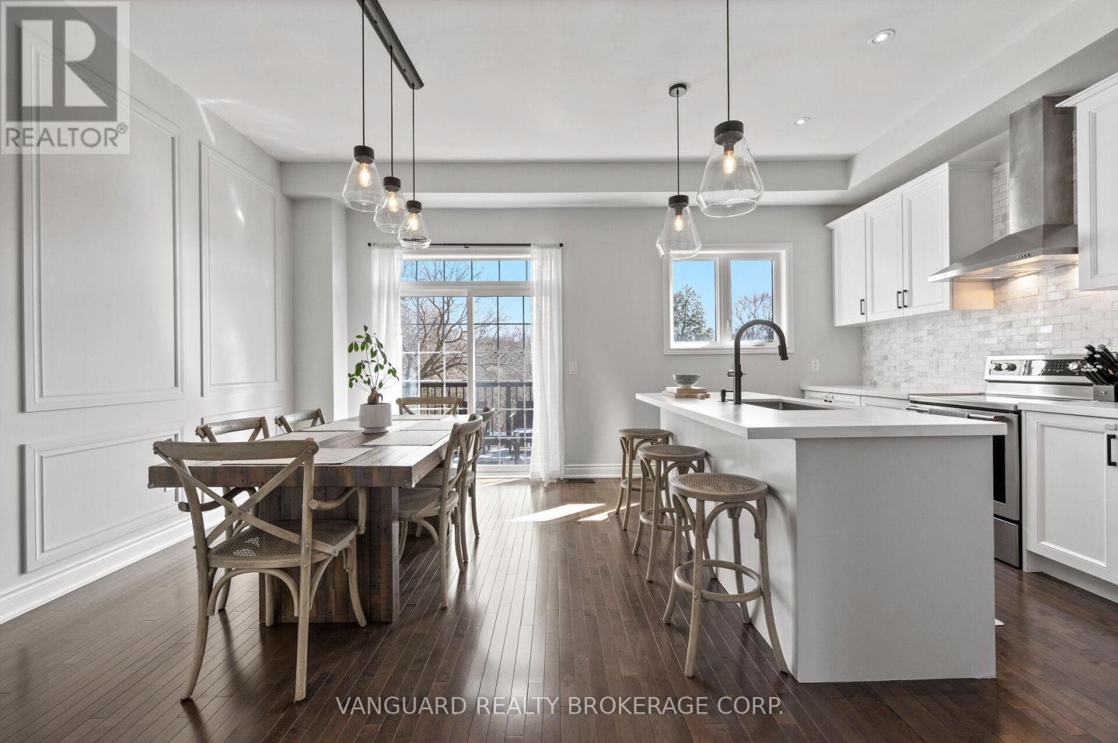 Welcome to 8331 Islington Ave, located in sought-after Islington Woods. Situated on a rare ravine lot, this beautifully maintained 3-bedroom, 5-bathroom townhome offers 1,503 sq ft of elegant living space with impressive 10-ft ceilings on the main floor and 9-ft ceilings on the second.The gourmet kitchen features quartz countertops, a marble backsplash, extended upper cabinetry, and stainless steel appliances, seamlessly flowing into the open-concept dining area with a walk-out to a private balcony. Hardwood flooring, pot lights, and custom millwork add warmth and sophistication throughout.The spacious primary bedroom offers hardwood floors, a 4-piece ensuite, and its own walk-out balcony. Additional bedrooms are bright and generously sized. The walk-out basement provides added living space and flexibility, leading to a fully fenced yard, with convenient access to the garage from inside the home.Ideally located just minutes from the amenities of Vaughan downtown, this exceptional home is perfect for buyers seeking style, comfort, and location. (id:64974)