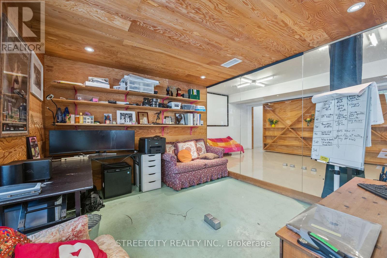 Corner lot building with 74 foot frontage. Bright interior suited for office or retail with spacious basement for storage or additional office space. Two side-boulevard parking spots. Prominent sign exposure. (id:65010)