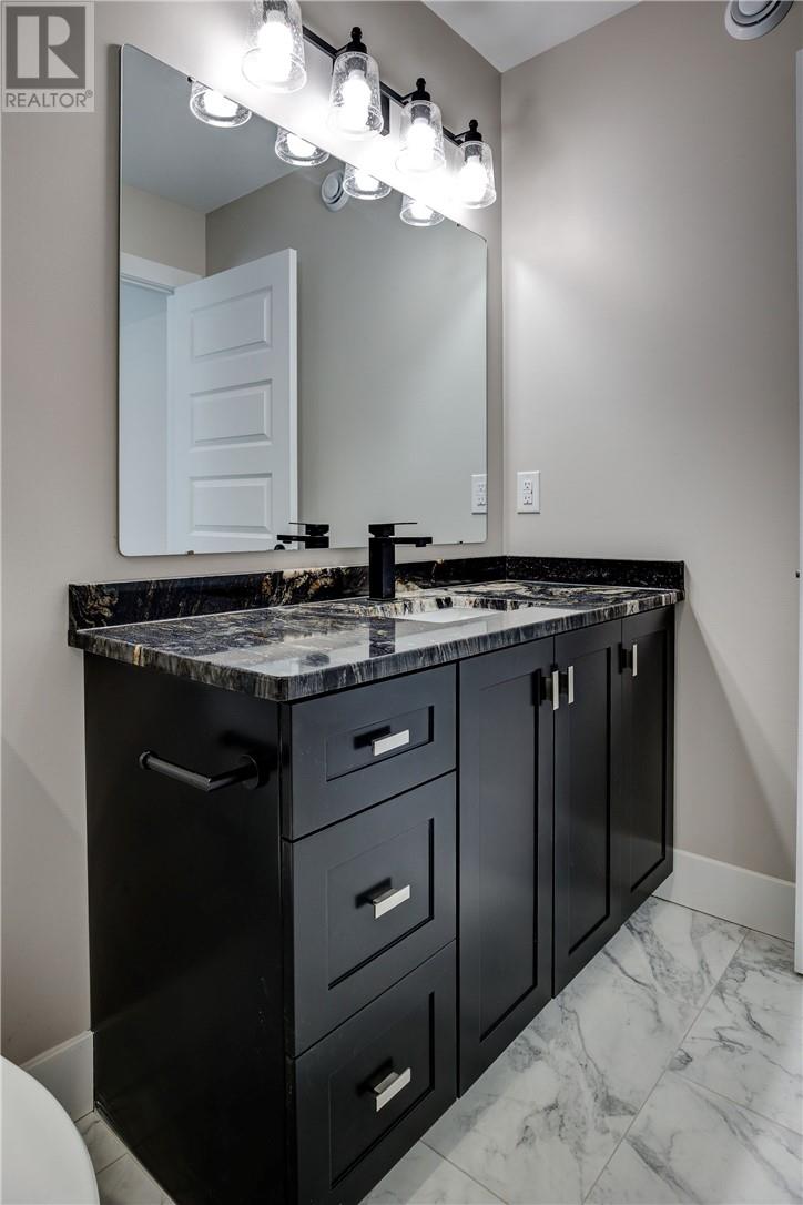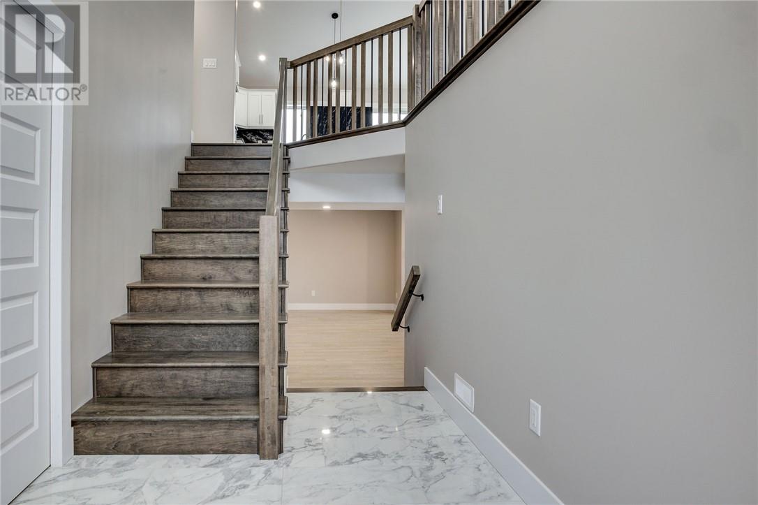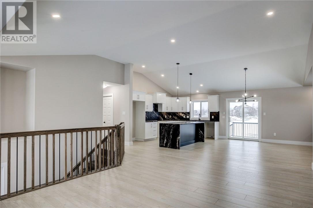 It’s here! The new twist to the very popular “Laurel” bungalow model. This home has a great layout featuring 2+2 bedrooms and 3 bathrooms. Entering from the large main entry foyer or through the garage entry into a spacious mud room (perfect for all family sporting equipment) you will be impressed with the open concept, modern living area with vaulted ceilings, customize kitchen with coffee bar, centre island and main floor laundry. The lower level, that is mainly above grade features a cozy and warm family room with cultured Stone gas fireplace and 2 bedrooms. This carpet free energy efficient home is located in the newer Moonglo neighborhood near all amenities and scenic trails (id:64974)
