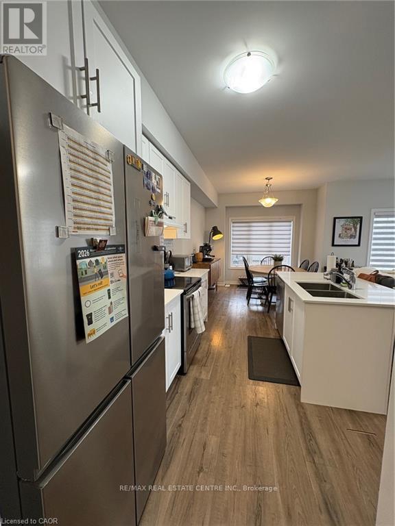 For lease in the highly sought-after River Mill community is this stunning back-to-back corner townhouse offering modern, open-concept living across three well-designed levels. The first floor features a bright den or office space with large windows, making it ideal for those who work from home or an extra bedroom space. Upstairs, the second floor showcases a spacious open layout with a bright white kitchen, a cozy dinette, and a generous living room that opens to a private balcony overlooking the park -perfect for enjoying your morning coffee while taking in breathtaking views and sunshine. The third floor includes a large primary bedroom, a well-sized second bedroom with a large window, and a beautifully finished main bathroom with a double sink vanity. The home is filled with natural light thanks to its abundance of large windows and is one of the few units in the development that directly faces the park-a rare and desirable feature. Situated in a prime location close to schools, parks, ponds, and nature trails, and just steps from the bus stop, this home offers unparalleled convenience. You're only minutes away from big box stores, Restaurants, the Cambridge Smart Centre, Costco, Toyota, and have easy access to Highway 401, public transit, and GO Transit. This home offers both functionality and charm in a growing, family-friendly neighborhood. Don't miss the opportunity to lease this beautiful corner unit-schedule your private viewing today! (id:64974)