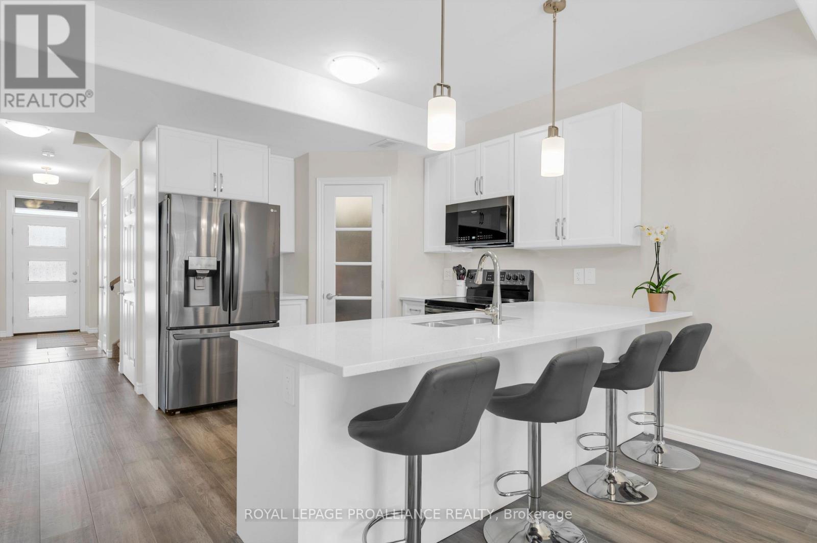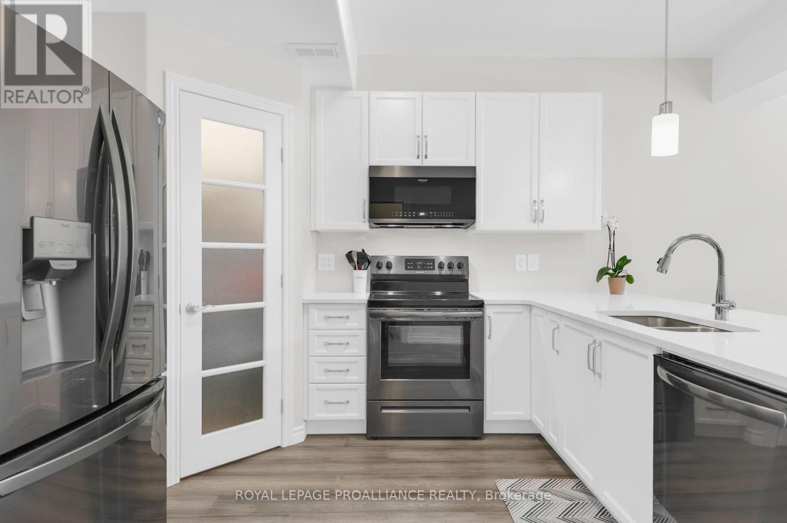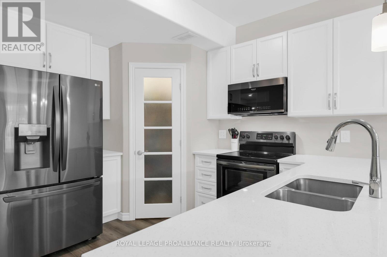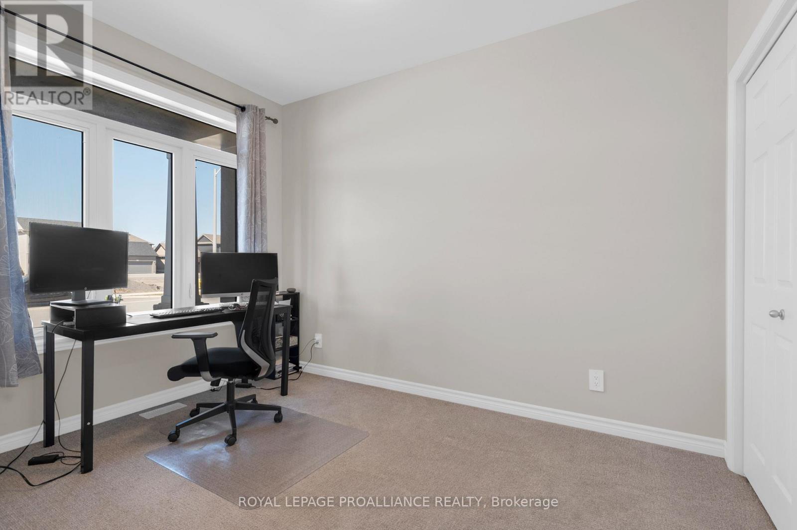 This Stonehaven 2 model is admired for its two separate primary suites, each with their own walk-in closet & private bath. An opportunity for more than 3,000 sq feet of living space with 1,883 already beautifully finished + additional unspoiled options in the bright basement with tall ceilings & window. Exterior class with tasteful stucco, stone & brick selections & perennial garden lined interlocking walkway to the pot lit covered front porch. 9' ceilings & engineered hardwood flooring throughout the main floor living area. Classic white kitchen cabinetry with quartz countertops, convenient corner pantry & black stainless steel appliances. The peninsula island overlooks the expansive dinning & living area with sliding door to the private pressure treated wood deck & established yard beyond. This main level provides inside access from the 237 sq ft garage & main floor laundry with above storage cabinets + 2 piece powder room & den, providing a great office, TV room or third bedroom option if desired. ~ The Stonehaven 2 model is admired for it's two separate primary suites. ~ One privately positioned to the rear providing a walk-in closet, ensuite double vanity sinks & step in shower with bench seating & the other on the upper level offering another walk-in closet, 4 piece ensuite, custom window bench seating & a large secluded sitting area, a great rec room / flex space to suite your needs. Full unfinished basement offers further benefits with its large above grade window & rough in bath. Riverstone Subdivision, where modern elegance meets natural beauty. This up-and-coming neighbourhood offers a harmonious blend of contemporary home design and serene surroundings within great proximity to Moira River, 401, premium golf, parks & town amenities. (id:64974)