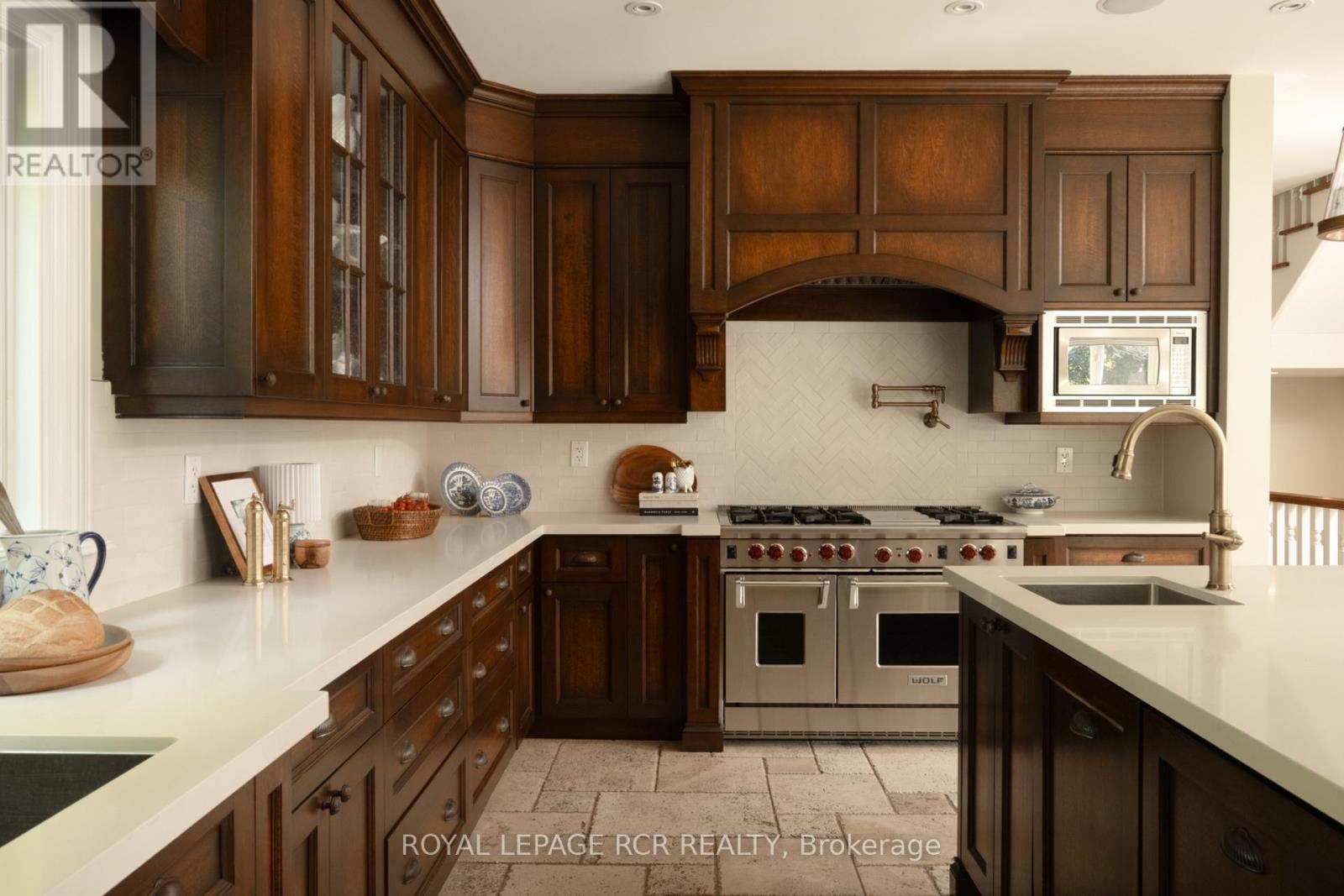 Timeless elegance meets impeccable craftsmanship in this stunning Cheltenham estate. A rare find, this beautifully built 5+1 bed, 6 bath home in the sought-after Cheltenham community offers thoughtful design & exquisite details throughout. Chefs kitchen blending beauty & practicality, featuring a 48" Wolf gas range, Sub Zero fridge/freezer, Bosch dishwasher, built-in microwave, & custom quarter-sawn oak cabinetry. 5" solid white oak floors create an inviting atmosphere. The natural beauty of tumbled limestone, natural stone & marble in the kitchens, baths, & basement enhances the spaces timeless elegance, combining sophistication w/ comfort. The primary suite is a true sanctuary w/ heated floors, a spa-like steam shower, a romantic soaker tub, a spacious walk-in closet & focal fireplace. Every detail has been thoughtfully considered, from coffered ceilings in the dining room to vaulted ceilings in the family room & sunroom, adding architectural charm & grandeur. The main floor also includes a dedicated office, perfect for WFH or quiet study. Upstairs, 3 beds each w/ walk-in closets. Two share a Jack-&-Jill bath, while the 3rd has its own private ensuite creating private retreats for family & guests. Every detail, from custom millwork & extensive closet systems to solid wood doors, reflects timeless quality. Step outside to a beautifully landscaped yard, complete w/ irrigation system & a grand outdoor stone fireplace. The property boasts nearly an acre of lush grounds, with a 3-car garage plus an additional backyard workshop garage w/ a loft ideal for toys, landscape equipment & hobbies. For added versatility, theres a bright, welcoming 1-bed, 1-bath loft apartment w/ its own entrance, walk-in closet & separate laundry perfect for in-laws or rental income. The finished basement offers even more comfort w/ guest bed & bath, media & game zones, a bar, crafts room, gym, & a ton of storage, creating a warm, inviting and functional space for gatherings & daily life. (id:64974)