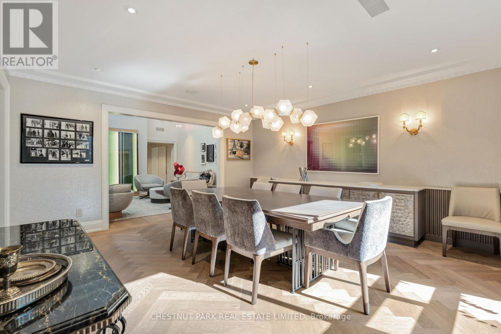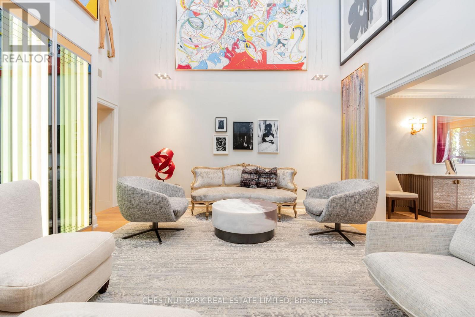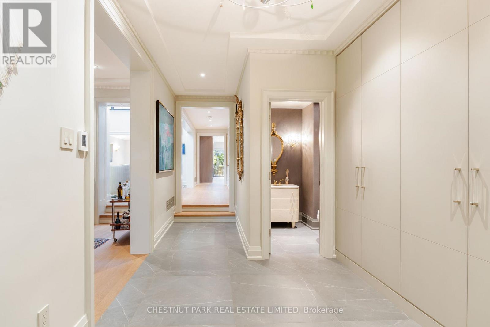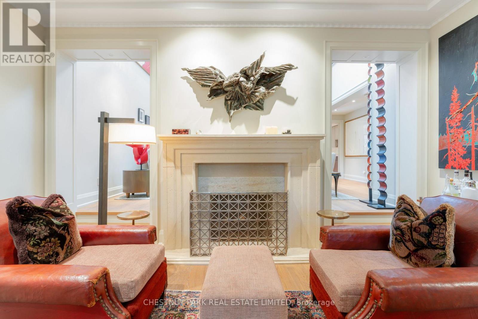 Experience elevated living in this fully reimagined 3-bedroom, 4-bathroom townhome, quietly tucked within a prestigious Forest Hill/Deer Park enclave. Rebuilt from the studs up, this exceptional residence spans over 6,400 total sq.ft. of sophisticated living space, seamlessly blending timeless elegance with modern luxury. A gracious foyer with porcelain tile flooring, bespoke built-ins, and a solid-core entry door leads to expansive living and dining areas adorned with oak hardwood floors (herringbone in the dining room), crown moulding, and custom drapery. The dramatic family room impresses with soaring ceilings, skylights, and gallery-style walls, creating an ideal backdrop for art and entertaining. At the heart of the home, the chef's kitchen is a true showpiece, featuring porcelain countertops, custom cabinetry, a Wolf gas range with dual ovens, Sub-Zero fridge/freezer, two dishwashers, and a built-in coffee system. French doors open to a private stone patio, perfect for outdoor dining and entertaining. The serene primary suite offers a custom walk-in closet and a spa-inspired 5-piece ensuite with floating vanity, TV mirror, soaker tub, and a glass-enclosed shower with offset controls. Two additional bedrooms - one easily adaptable as a home office - share a designer 3-piece bath and walk-in closet. The sun-filled lower level provides remarkable versatility, boasting a recreation room with gas fireplace and dual Murphy beds, a gym or second family room with walkout, a full galley kitchen, a 450-bottle wine cellar, private office, sleek wet bar, and a spa-like bathroom with steam shower - ideal for guests or extended family. A private two-car garage with direct mudroom entry adds everyday convenience. Residents enjoy concierge service and premium amenities including two fitness centres, an outdoor pool, party room, and more. Just steps to Forest Hill Village, Yonge & St. Clair, TTC, and some of Toronto's most sought-after schools. (id:64974)
