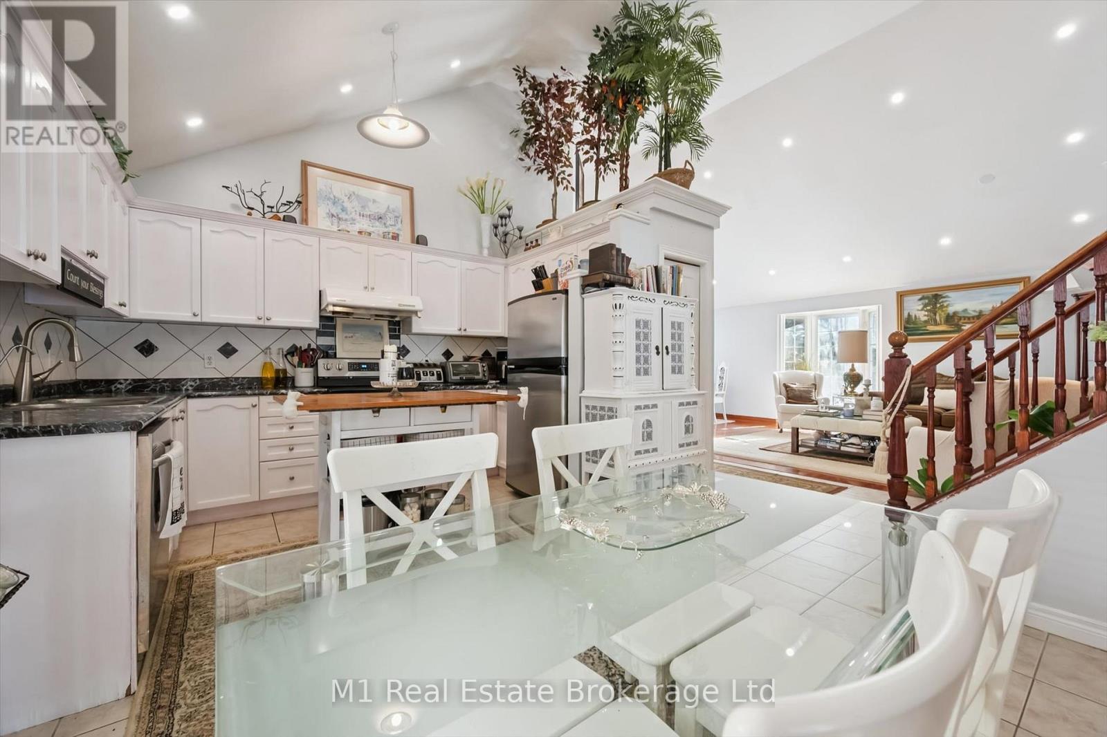 Stylish, spacious, and tucked away on a quiet court, this beautifully maintained 4-bedroom, 3-bathroom backsplit sits on a premium corner lot in Guelph's highly sought-after South End. From the moment you step inside, soaring cathedral ceilings in the expansive living and dining rooms create an airy, light-filled atmosphere-perfect for both everyday living and effortless entertaining.The separate eat-in kitchen offers modern appliances and ample space for family meals, casual gatherings, and morning coffee rituals. Upstairs, you'll find three generously sized bedrooms, including a primary retreat complete with a 4-piece ensuite and cozy gas fireplace. A second full bathroom serves the additional bedrooms on this level.The inviting family room, anchored by a second gas fireplace, is ideal for movie nights, game days, or relaxed evenings at home. A 4th bedroom and bathroom complete this floor. A finished basement adds even more versatility, offering space for a recreation room, home gym, or play area, while a bonus office and double-car garage enhance the home's everyday functionality.Outside, the fenced backyard provides privacy, curb appeal, and extra breathing room thanks to the premium corner lot setting. Just minutes to scenic trails, shopping, restaurants, and all the amenities the South End is known for, this home perfectly balances quiet court living with unbeatable convenience. (id:64974)