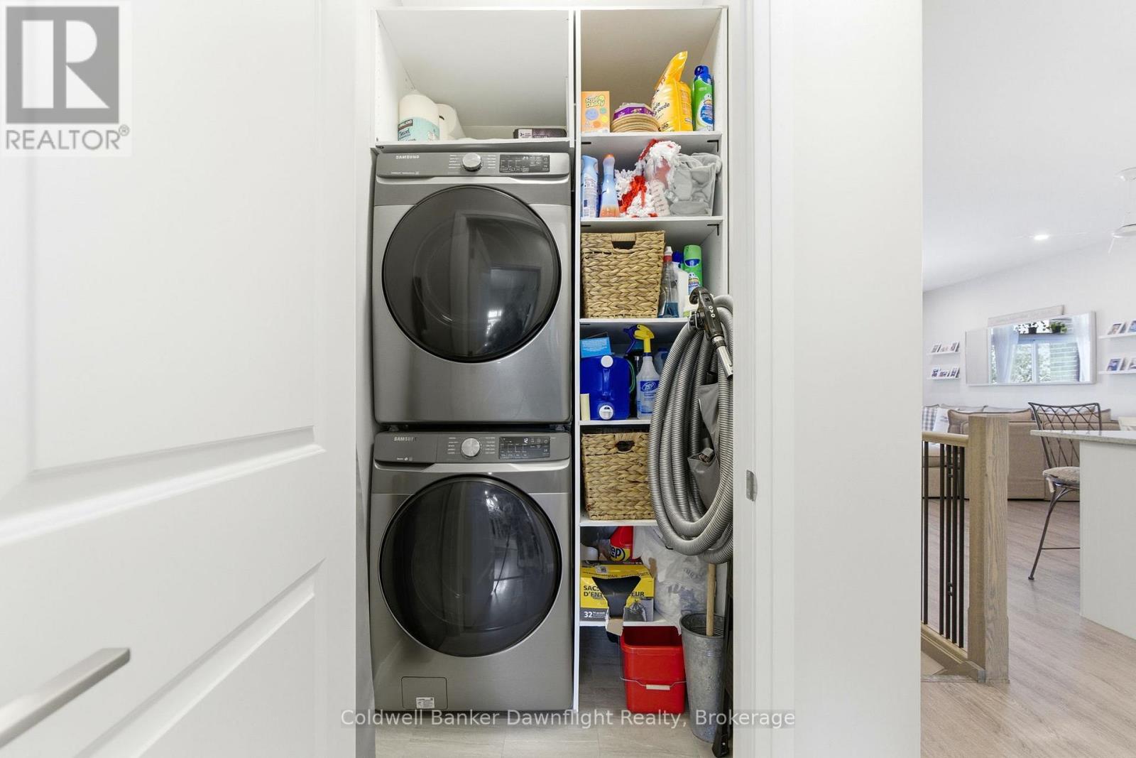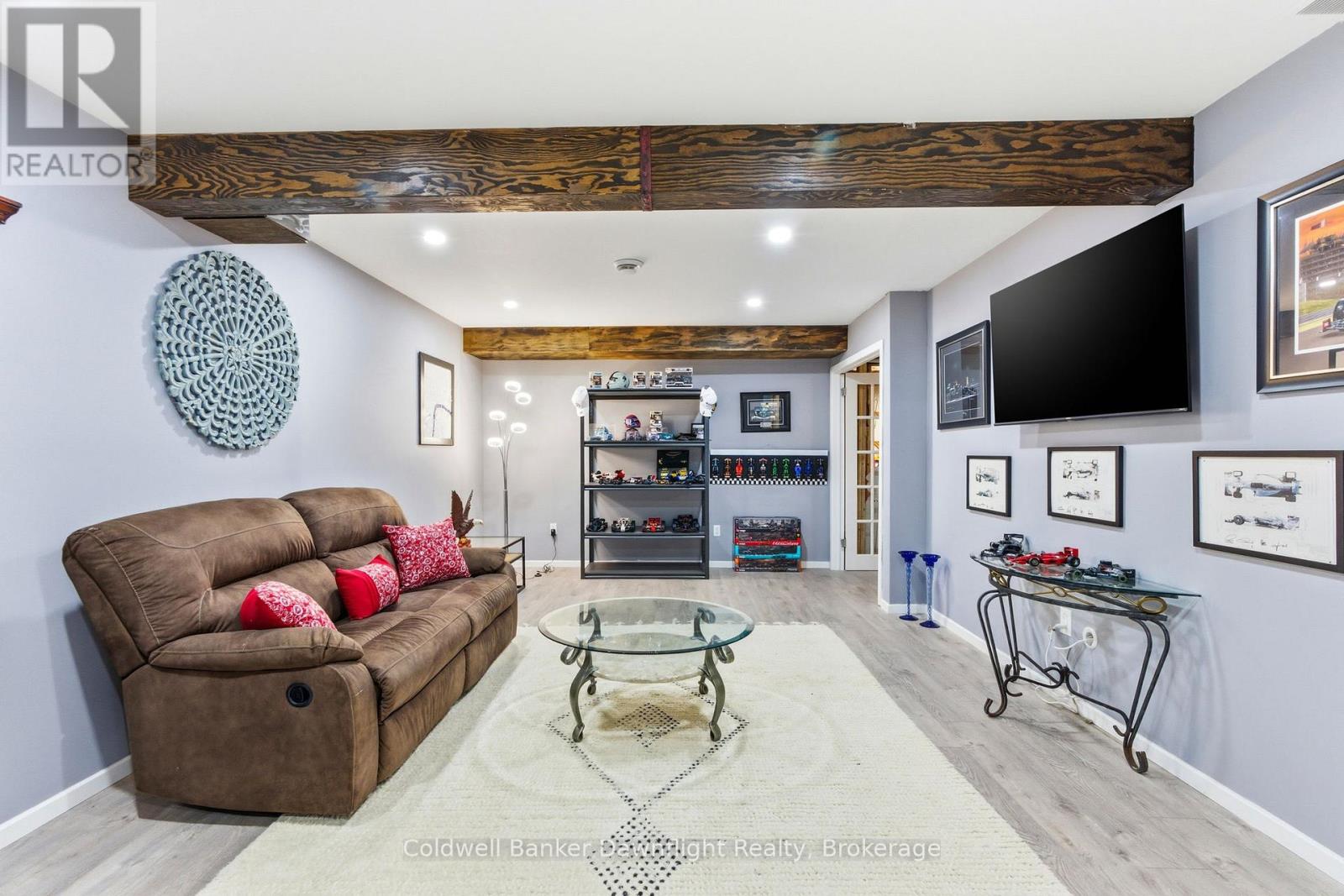 Welcome to South Pointe, one of Exeter's newer and most sought-after subdivisions. This beautifully maintained bungalow-style townhome, built in 2021 and ideally located second from the end off Albert Street, offers comfort, style, and easy living-perfect for first-time buyers, retirees, or anyone looking to step into the market.The thoughtfully designed layout features 2+1 bedrooms and 2.5 baths, with a bright and spacious main floor. The custom kitchen boasts granite countertops, stainless steel appliances, and a stylish honeycomb backsplash, seamlessly connecting to the living and dining areas. Two newer solar tubes (2024) enhance the natural light, creating a warm and welcoming atmosphere. From the living room, enjoy peaceful views of the covered back porch overlooking lovely gardens, a tranquil pond, and a gently flowing creek.The primary suite is conveniently located on the main level and includes a walk-in closet, private ensuite, and an abundance of natural light. A second main-floor bedroom provides flexibility as a guest room, home office, or cozy den. Vinyl plank flooring, installed in 2024, flows throughout the main level, complementing the open-concept living space. A full 4-piece bath with a deep soaker tub completes the main level.The partially finished basement (2022) adds even more value, offering a large bedroom, 2-piece bath, and a spacious rec room with tall ceilings, plus ample unfinished storage and workshop space-leaving plenty of room to customize and add future square footage.Located just minutes from the local hospital, schools, shopping, and the scenic McNaughton Park, this home delivers low-maintenance living in a prime location. A rare opportunity to enjoy modern comfort in a welcoming community! (id:64974)