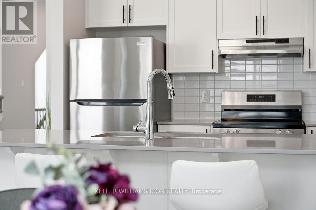 Welcome to this rare end-unit freehold townhome (built in 2025) in Half Moon Bay, Barrhaven. The main level features an open-concept living and dining area with a bright kitchen, a flush breakfast bar, and a convenient powder room, ideal for both everyday living and entertaining. With a southwest-facing backyard, sunlight fills the living room all afternoon, perfect for slow mornings and golden-hour evenings! Upstairs, you'll find three generously sized bedrooms, including a primary suite with a walk-in closet and ensuite, plus a full main bath. The finished basement with two lookout windows adds valuable flex space, perfect for a family room, home office, or gym. Enjoy the benefits of an attached garage with inside entry, and the added light and curb appeal that only an end unit can offer. Situated in a family-friendly community close to parks, schools, shopping, and transit, this home is an excellent opportunity for first-time buyers, growing families, or investors alike. (id:64974)