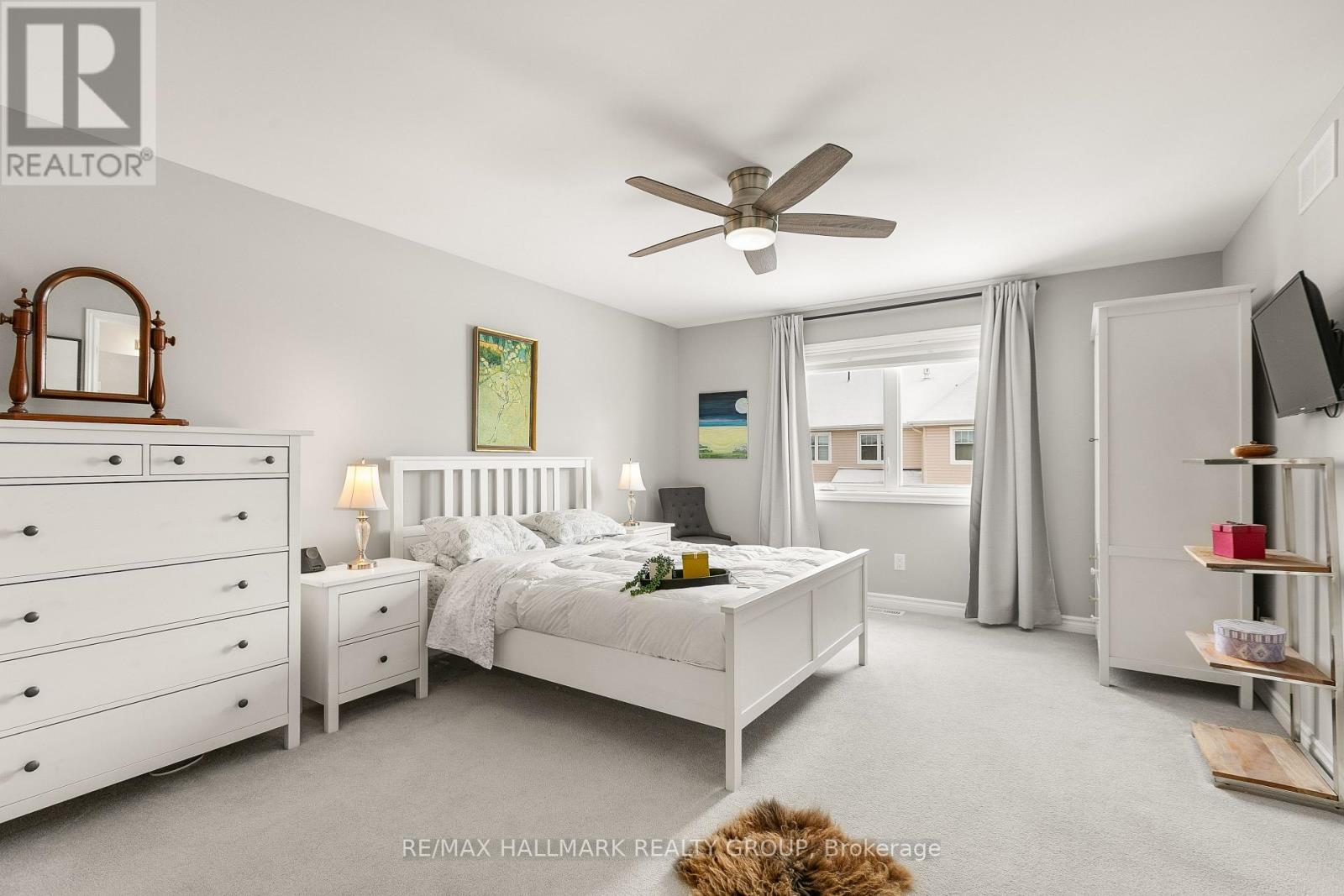Beautifully upgraded end-unit townhome on a premium corner lot in the heart of Findlay Creek, offering over 2,200 sq ft of finished living space and exceptional privacy with green space beside the home. This modern, open-concept layout is filled with natural light thanks to additional end-unit windows and features high-end finishes throughout. The main floor showcases hardwood flooring, a Modern kitchen with quartz countertops, stainless steel appliances, and extensive cabinetry, flowing seamlessly into spacious living and dining areas ideal for everyday living and entertaining. Inside entry from the garage leads into a practical mudroom with closet space, perfect for keeping things organized year-round. Upstairs, you'll find three well-sized bedrooms including a large primary retreat with walk-in closet and a 5-piece ensuite featuring a soaker tub and separate shower, along with convenient second-floor laundry. The fully finished basement adds valuable living space with a cozy gas fireplace, ideal for a family room, home office, or media area. Enjoy a massive backyard rarely found in townhomes, along with the added curb appeal of full side brick-a premium builder upgrade. Located just steps to parks, top-rated schools, walking trails, shopping, and transit, this is a move-in ready home in one of Ottawa's most desirable family-friendly communities. Book your private showing today. (id:64974)