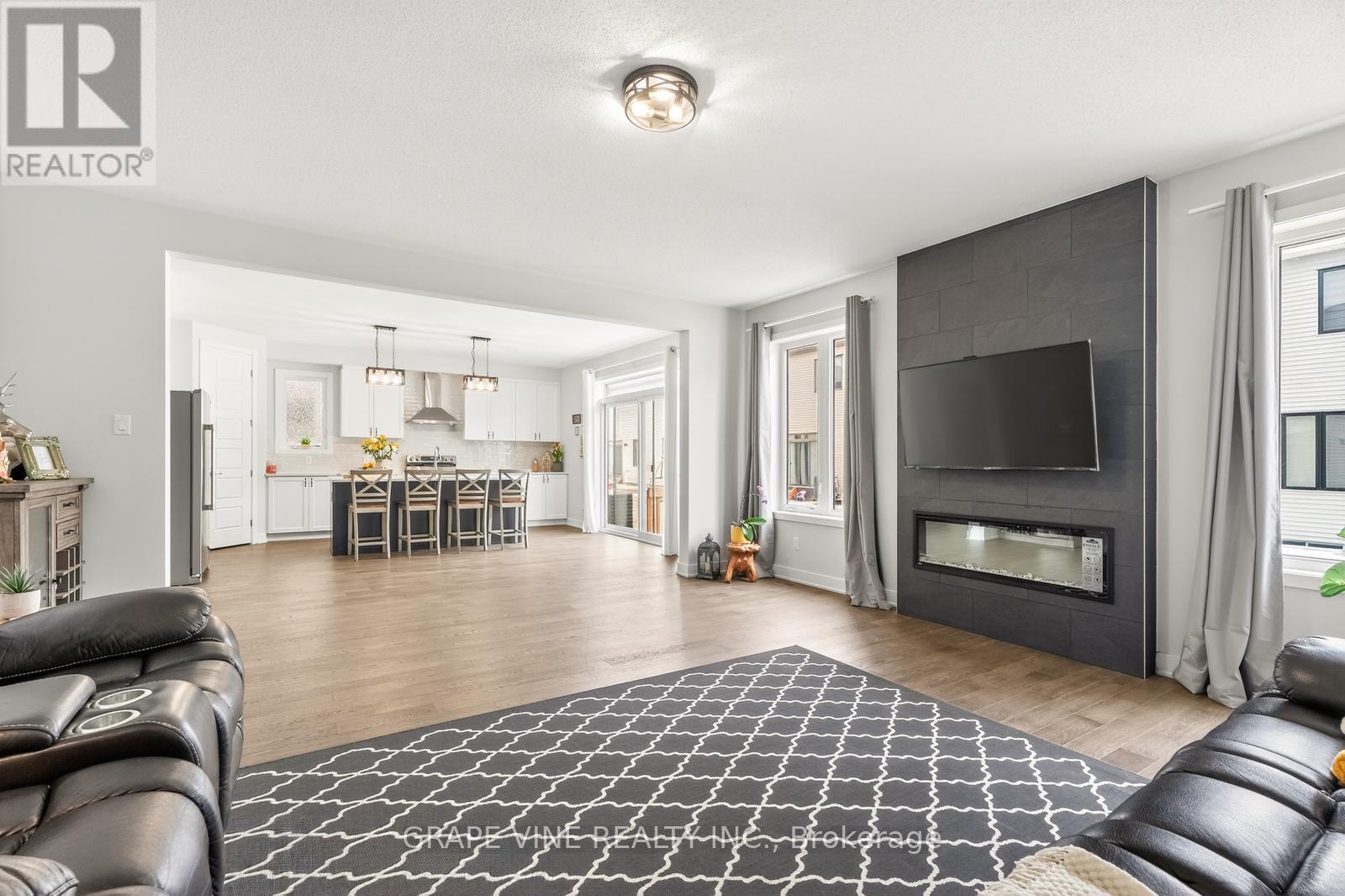 Welcome to an exceptional home tucked away in one of Richmond's most peaceful neighbourhoods. Offering over 4,000 sqft of thoughtfully crafted living space, this 5-bedroom, 5-bathroom residence seamlessly combines impressive scale with contemporary comfort. Showcasing more than $150,000 in high-end upgrades, every detail has been carefully curated to reflect refined elegance.Both the main and upper levels feature impressive 9-foot ceilings, enhanced by 8-foot doors throughout. Rich hardwood flooring extends across the main floor, up the staircase, and into the second-floor loft, while plush upgraded carpeting adds comfort to all bedrooms and the fully finished basement.Distinctive design elements include custom iron railings and a striking fireplace that anchors the main living area. The double-car garage is future-ready with a 200-amp electrical rough-in, ideal for an EV charging setup.At the centre of the home is a bright, open-concept chef's kitchen designed for both everyday living and entertaining. It features sleek quartz countertops, a matching backsplash, and a large centre island with breakfast seating-perfect for gathering with family and friends. A spacious walk-in pantry provides excellent storage for any home chef.Located on a quiet crescent, this property is perfect for nature enthusiasts, just steps from the Jock River with access to scenic walking trails and nearby parks. Enjoy the tranquility of the surroundings while remaining close to Richmond's local shops and amenities.Blending luxury, comfort, and thoughtful upgrades, this home is still covered under Tarion warranty for added peace of mind. An outstanding opportunity to own a truly remarkable property in Richmond. (id:64974)