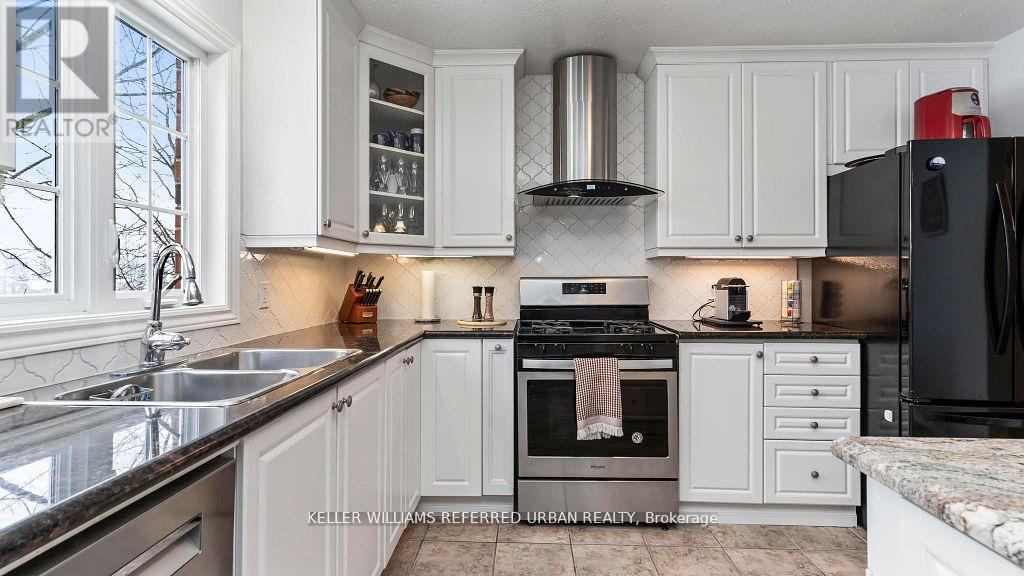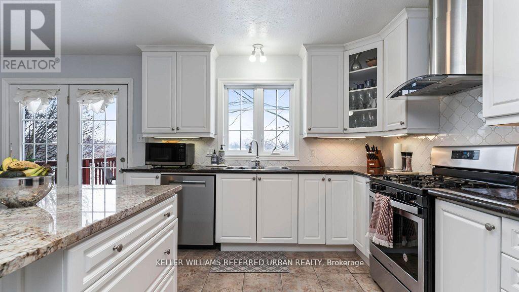 Welcome to this stunning pristine 2340sf. family home in North London's desirable Stoney creek neighbourhood. Located on a quiet, secluded street, near all amenities,schools,Western U., YMCA, & nearby transit, this home has the ideal location! Backing onto serene pond that offers stunning year-round natureviews,privacy, waking path access leading to Masonville Mall. Main flr featmassive open-cncpt livinrm/diningrm, lrg eat-in kitch w/ white cabinets,ceramicflrs,granite counter,centre island, modern backsplash, & elevated deck for enjoying your morning coffee while admiring the stunning view. Off the kitc is a cozy family room w/ gas fp. Numerous windows throughout create a bright airy ambiance. Powder room features an updated vanity & the main floor laund feat frontload washer/dryer. Updated oak staircase w/runner & iron spindles creates an open concept flow through main flr & upstairs. Oversized principal suite feat6'9 x 6'1 walk-in closet, 2nd closet & stunning 4 pc ensuite retreat w/separate glass shower, granite counters, ceramic flrs, & soaker. Quaint area off the master is perfect for home office & 3rd living space or easily converts back to aden & 4th bedrm as it still has the closet area. It features hardwood floors &plenty of light. Two more generous sized beds feat neutral broadloom & lots of closet space. Another spacious 4pc bth feat neutral decor & combo shower/tub.Downstairs is separated into licensed executive rental apartment w/ proper fire protection btwn units. Access to basement is through main house & the basement walk-out so home could be used for single family/rental/in-law suite/grown-adult child living at home! Dble concrete drive leads to concrete path & lrg back patio. Delightful French doors open to exceptional 1 bedroom + den open-cncpt aptw/ in-suite laund, laminate flrs, gorgeous bath w marble, kitch w/granitecounters, SS appliances, & generous size walk-in closet. Beautiful landscaping w irrigation. Roof 2022. Central vac. (id:64974)