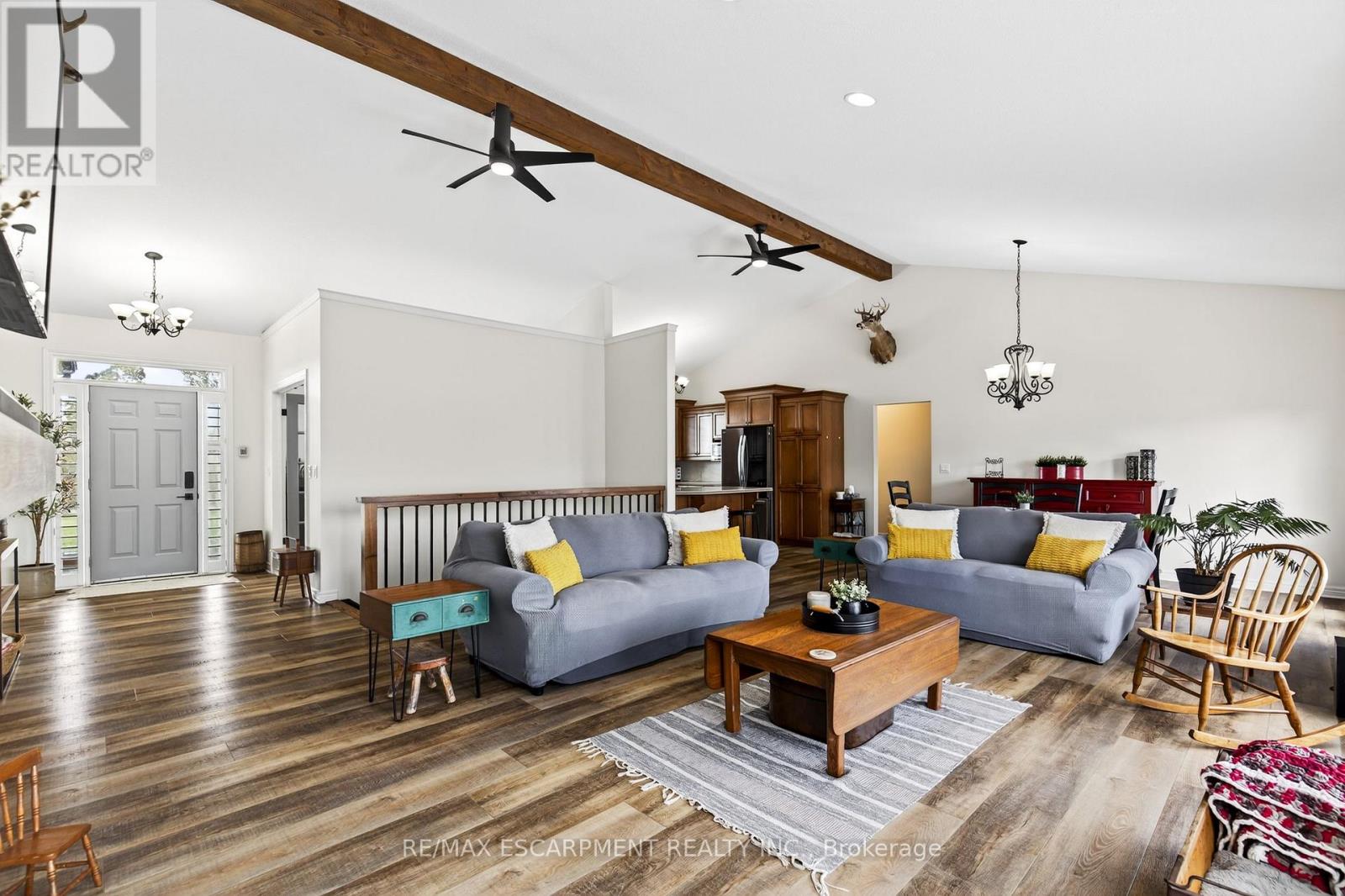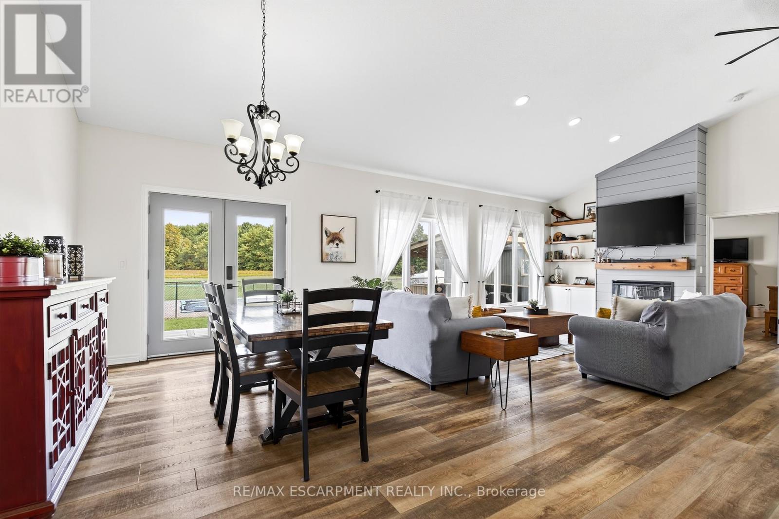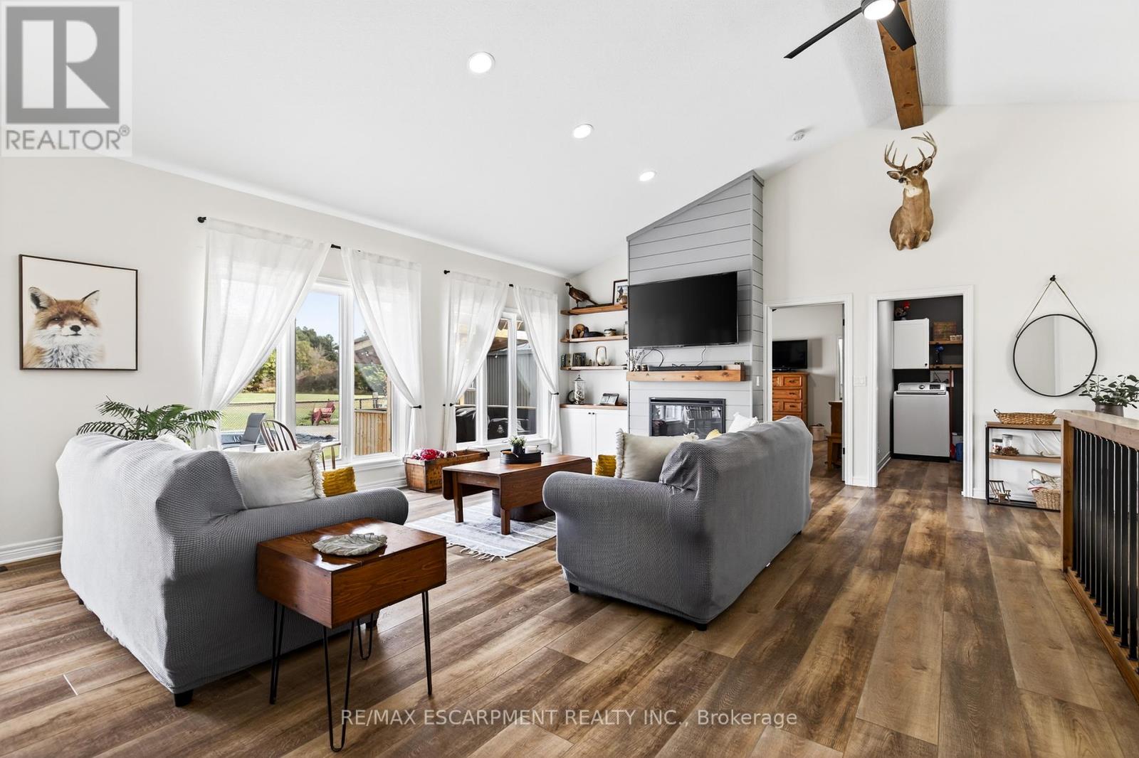 Experience the perfect blend of luxury and comfort in this stunning 1,902 sq. ft. bungalow set on 2.09 beautifully landscaped acres. Fully renovated main level and truly move-in ready. This 3 bedroom, 2 bath home is designed to impress. Step inside to find Luxury Vinyl Plank flooring throughout, freshly painted interiors, and a gorgeous modern kitchen with a breakfast bar, idealfor morning coffee or casual entertaining. The spacious great room boasts soaring cathedral ceilings, custom fireplace, and built-in shelving, creating the perfect gathering space for family and friends. The 1,853sq ft partially finished basement offers endless potential. Outdoors, you'll fall in love with the in-ground pool with nothing but open space, offering the ultimate private oasis. The backyard deck features both a cozy covered seating area along with a covered culinary space, perfect for summer barbecues and evening entertaining. For hobbyists or those with a love for mechanics, the separate serviced shop (with both water and hydro) provides ample room for projects, storage, or toys. This property truly has something for everyone inside and out. (id:64974)