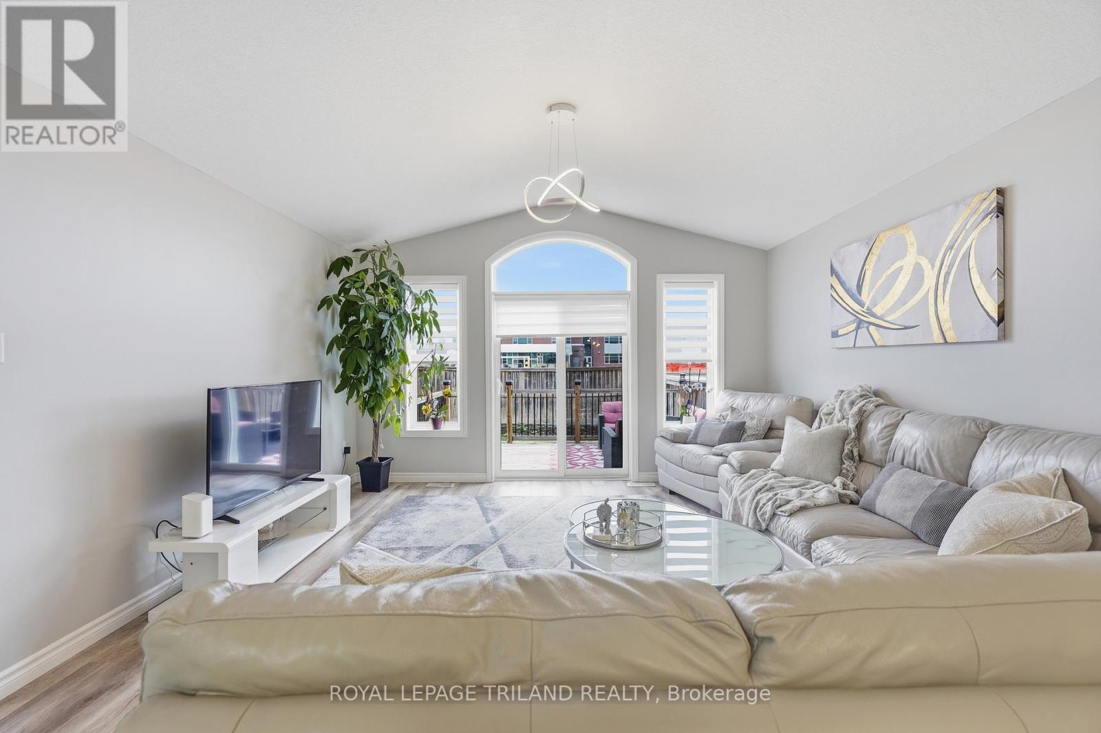 Discover this inviting, move-in ready attached two storey home, thoughtfully designed with affordability in mind and absolutely no condo or association fees. With three spacious bedrooms and four modern bathrooms, plus a finished lower level, this home offers exceptional versatility and comfort. The bright, carpet-free interior features a generous open concept living room, highlighted by a vaulted ceiling. Patio doors open toa fully fenced backyard with a deck, providing the perfect space for entertaining or relaxing. Enjoy the added privacy of backing onto Sir Arthur Currie Elementary School, and take advantage of the easy stroll to Foxfield District Park. Large windows and transom accents flood the rooms with natural sunlight, creating a warm, welcoming atmosphere. The primary bedroom is a true retreat, featuring a three-piece en-suite and a walk-in closet for ample storage. Located in the highly sought-after Northwest Foxfield subdivision, this home is close to schools, parks, golf courses, shopping destinations, Western University, and the hospital. With its blend of convenience, style, and value, this property is ideal for young families or professionals seeking a stylish condo alternative without the extra fees (id:64974)