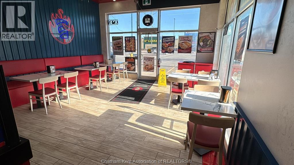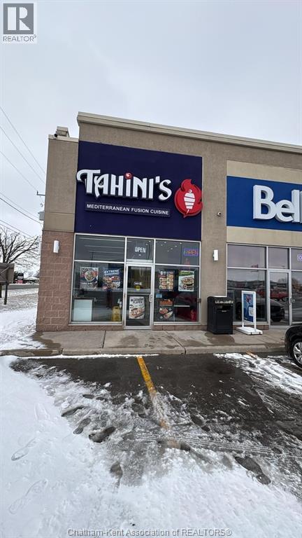Opportunity to acquire a Tahini’s franchise restaurant in a prime high-traffic retail corridor in Chatham-Kent. Strategically located within a dominant commercial node and surrounded by major anchor tenants including Walmart, Home Depot, and Real Canadian Superstore, this location benefits from strong daily traffic, excellent visibility, and ample on-site parking. This is an excellent opportunity for an owner-operator, young family, or entrepreneurial couple looking to bring fresh energy and operational focus to an established franchise brand. With its strong location fundamentals and national brand recognition, this business presents significant potential for growth through hands-on management, local marketing, and cost optimization. The existing infrastructure, leasehold improvements, and equipment are in place, providing a solid foundation for the next owner to build upon. This is a value-add opportunity in a proven retail setting. Please note that the buyer must be approved by the franchisor and franchise transfer and/or franchise fees may apply. The buyer will also be required to obtain landlord approval and assume the existing lease, subject to landlord consent. (id:64974)