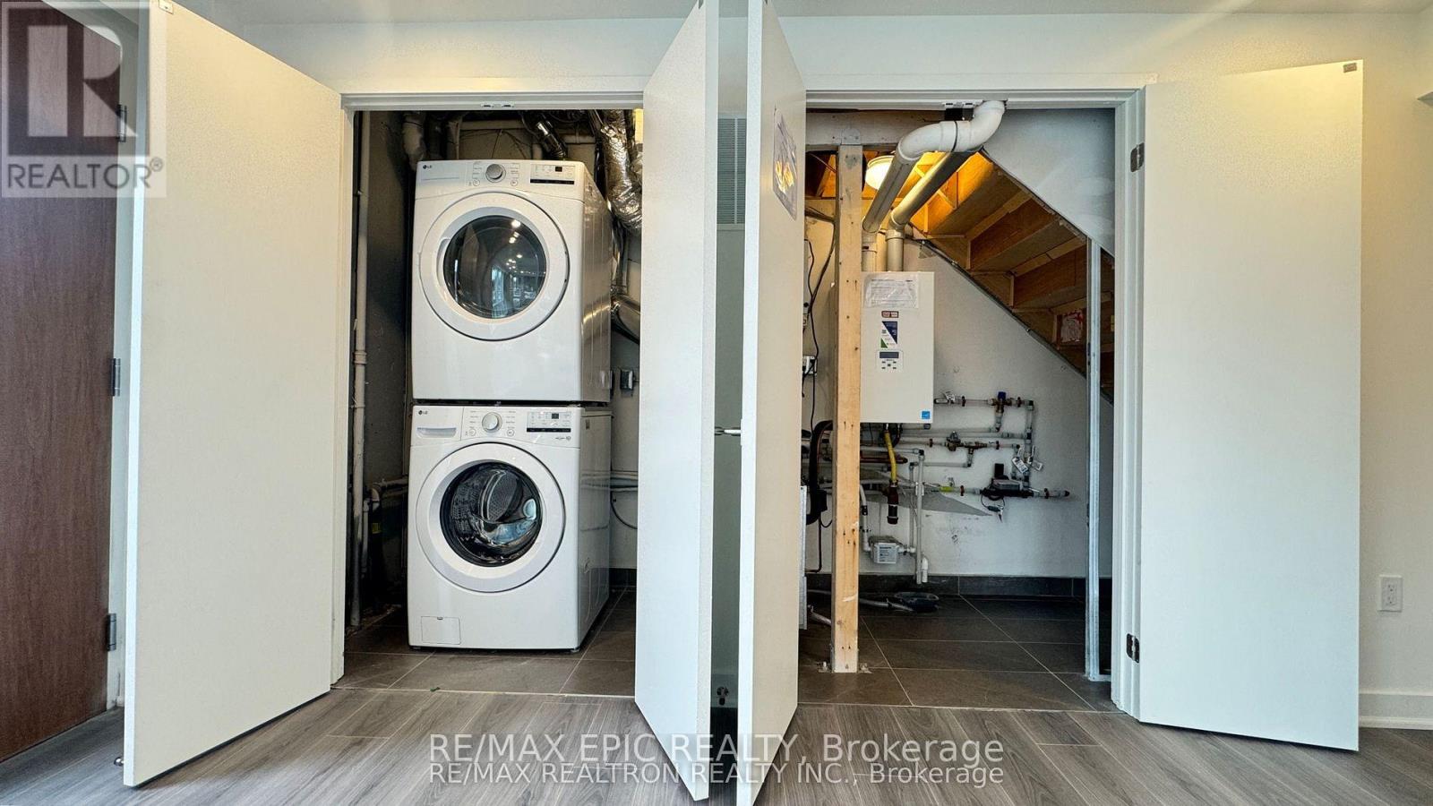 Be the very first to call this brand-new, never-lived-in 2-bedroom corner stacked townhouse your home, perfectly located in the highly sought-after Parkwoods community of North York. Built with a solid full-concrete structure for durability and quiet comfort, this rare two-storey residence beautifully combines modern style with everyday functionality.The main floor features an open-concept living and dining area with 9' smooth ceilings, premium Shadow Oak wide-plank flooring, upgraded pot lights, and a gourmet kitchen with Super White cabinetry, quartz countertops/backsplash, and integrated stainless-steel appliances. Upstairs, two bright bedrooms offer generous closet space, with the primary suite boasting an upgraded ensuite and walk-out to a large balcony-ideal for morning coffee or evening relaxation. Both bathrooms are upgraded with quartz vanities, and the primary includes an electrical bidet with heated seat for a spa-like touch.Thoughtful details include a smart thermostat, in-suite laundry, and energy-efficient systems. The home comes with a secure underground parking spot equipped with a dedicated EV charger Residents enjoy landscaped grounds, media/party rooms and visitor parking. Steps to TTC and close to the upcoming Eglinton Crosstown LRT, Hwy 401/DVP, parks, schools, cafes, Victoria Terrace, and Shops at Don Mills-this is a rare opportunity to own a brand-new luxury townhouse in a prime North York location. (id:64974)