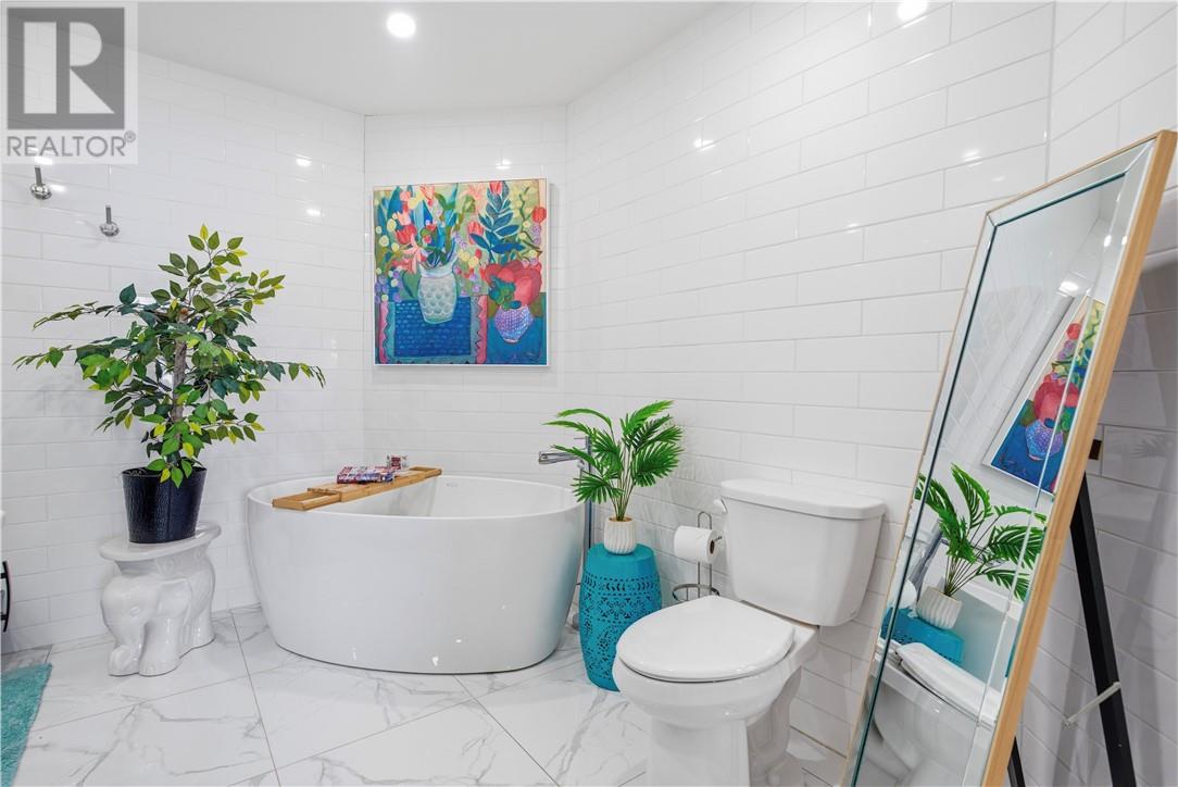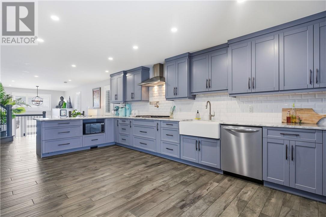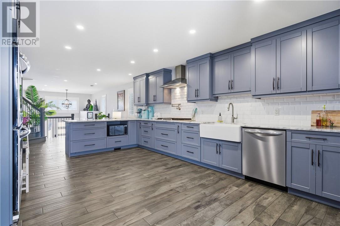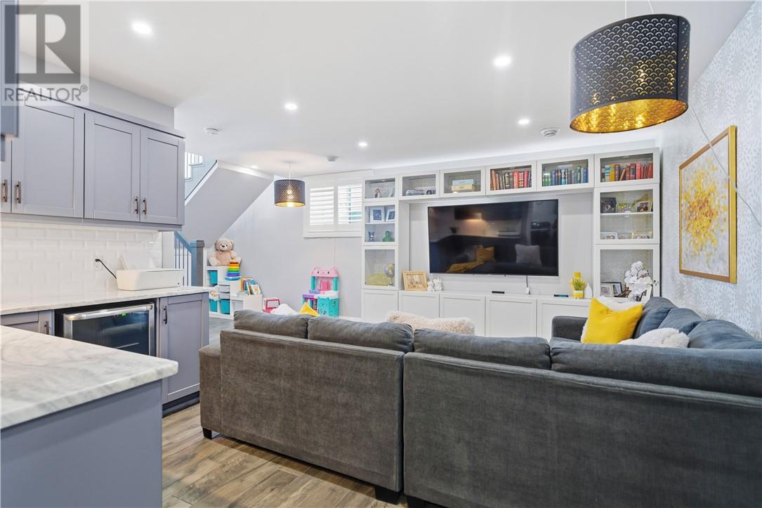 This stunning 2+1 bedroom home is nestled on a peaceful cul-de-sac and offers the perfect blend of comfort, style, and functionality. The generous sized foyer greets you to an inviting open concept layout, ideal for both everyday living and entertaining. Custom built with no detail overlooked, this home gives new meaning to the word dialed. Porcelain flooring throughout, every room was built with the finest of finishes. The spacious kitchen offers floor to ceiling cabinetry, a full sized fridge/freezer, a gas range with a pot filler, quartz countertops and walks onto a private fully fenced maintenance free backyard with no rear neighbours. The backyard offers a nice sized deck, 2 raised garden beds, and is landscaped with artificial grass. The primary bedroom is on the main floor and offers a walk-in closet, along with the most exquisite spa like ensuite bath. The upper level features a bedroom and another beautifully designed quality bathroom. All 3 bathrooms have a rain shower with a handheld sprayer. The lower level offers an open concept mini kitchen/recroom, a bedroom, a bathroom and a aesthetically pleasing laundry room. The garage (19.21 x 12.20) is currently being used as a lounging space and has never seen a car... Built in 2018 by Zulich. Quality, Style, Move-In Ready... Someone is going to benefit nicely. Book your showing today! (id:64974)