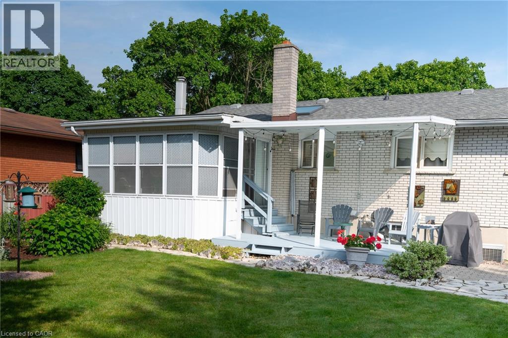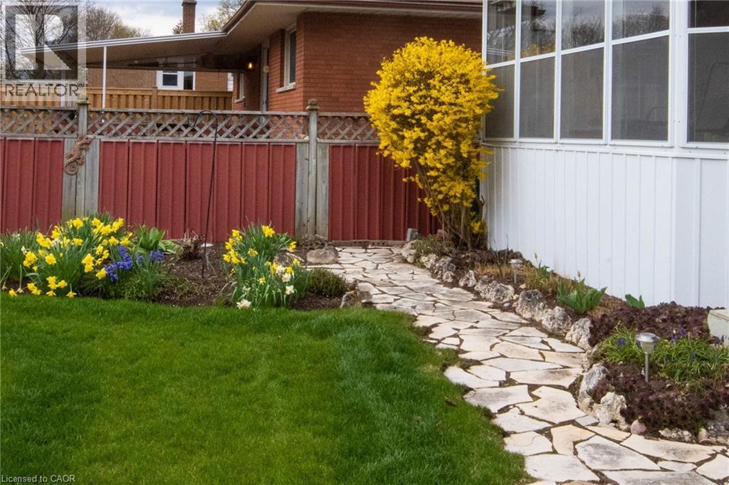 RAISED BUNGALOW WITH WALKOUT BASEMENT. Welcome to this beautifully maintained raised bungalow located in the sought after Rosemount neighbourhood in Kitchener. The home features a bright and functional layout with comfortable living spaces filled with natural light. The main level flows seamlessly into a sunroom that overlooks the backyard, offering a peaceful space to relax while enjoying views of the mature, landscaped gardens. The outdoor space is a true highlight, featuring well cared for gardens that create a private and serene setting. Notable updates include a roof replacement in 2020 and both the furnace and air conditioning updated in 2025, providing added peace of mind. Ideally situated close to schools, parks, and everyday amenities, this home offers comfort, convenience, and pride of ownership in a mature neighbourhood. (id:64974)