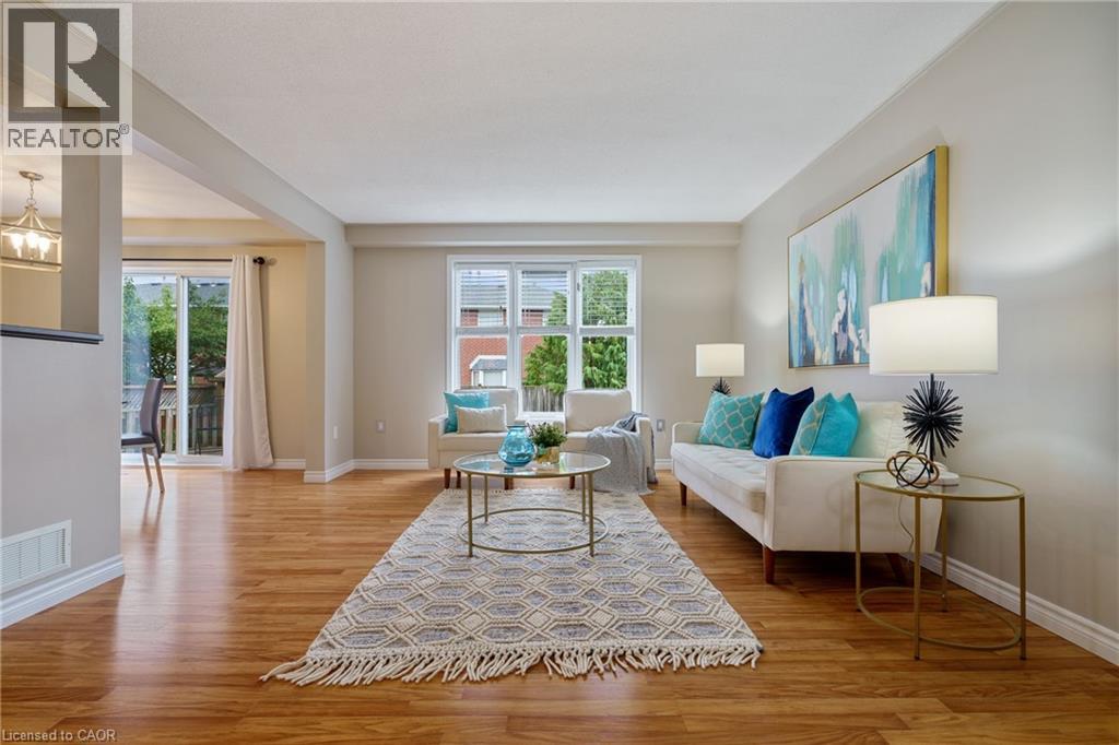 Welcome to 85 Chelsea Crescent! This beautifully maintained 3-BEDROOMS, 3-BATHROOMS, FREEHOLD townhome NO MAINTENANCE FEES, is located in highly sought-after Lower Stoney Creek and offers a rare PRIVATE DOUBLE DRIVEWAY with inside entry, garage door opener. Inside, you'll find a bright open-concept living and dining area that flows into the updated kitchen, complete with a large breakfast bar—perfect for family time and entertaining. The main floor features newer laminate flooring, and the dining room opens through sliding doors to a lovely two-tier deck with a gas BBQ hookup and a fully fenced backyard. Upstairs, there are two bedrooms plus a full main bath, along with a private principal suite on its own level, featuring a 2-piece bathroom and two large closets. The additional bedrooms also offer generous closet space. The finished lower level provides even more living space with a spacious family room, plenty of storage, and a convenient 3-piece bathroom with a separate shower. The home has been freshly painted, and the exterior showcases well-kept landscaping—making it completely move-in ready. All of this in a quiet, family-friendly location, close to schools, parks, shopping, churches, and with easy access to the highway. (id:64974)