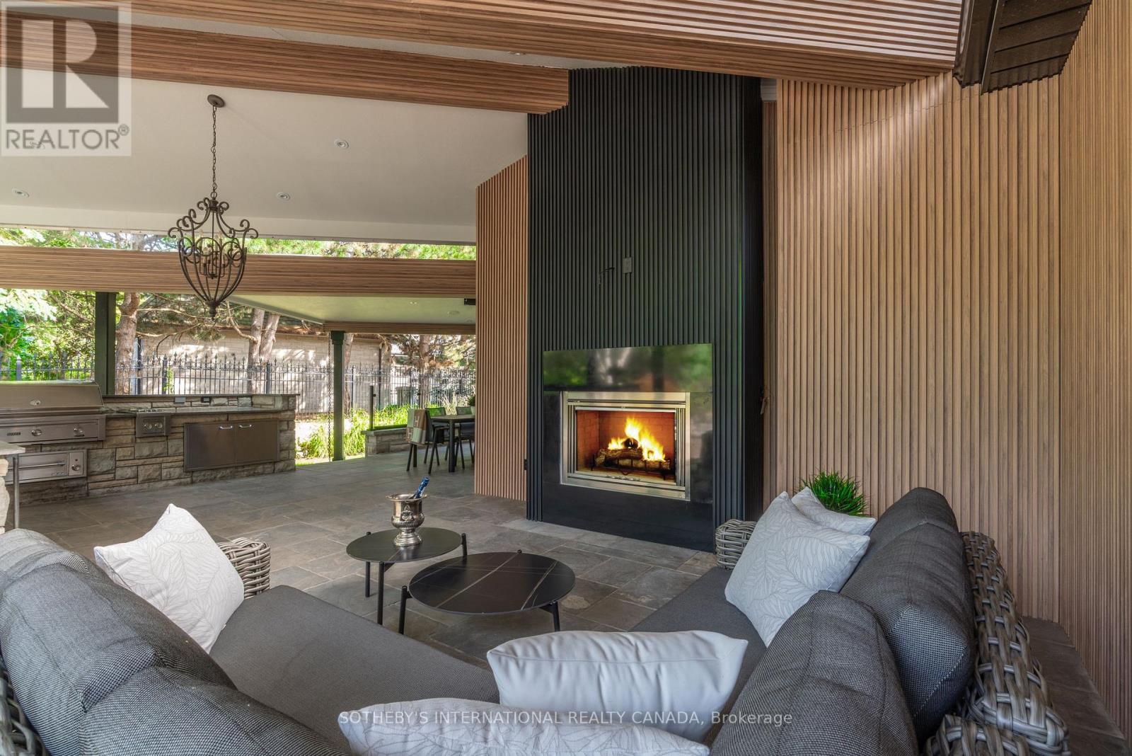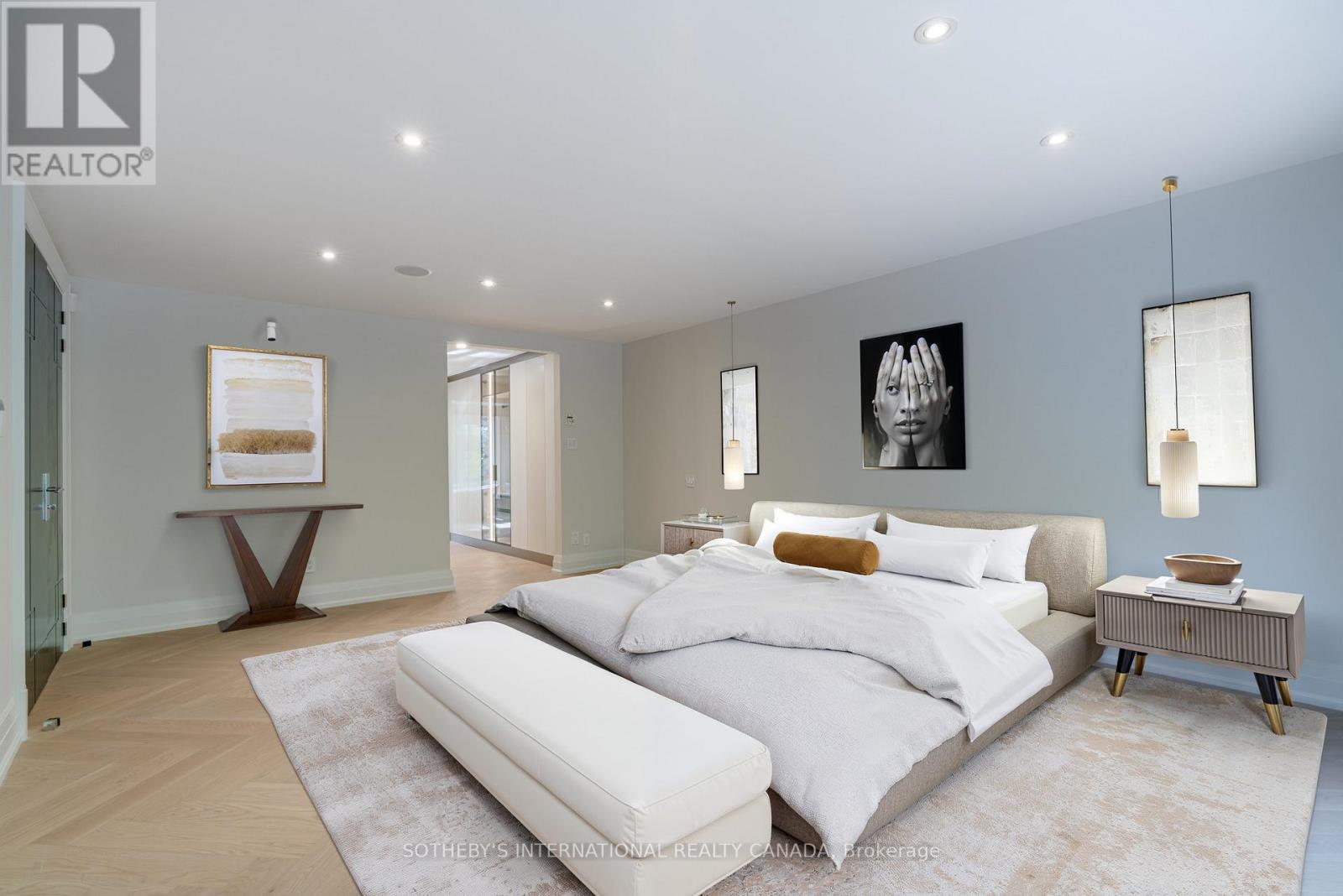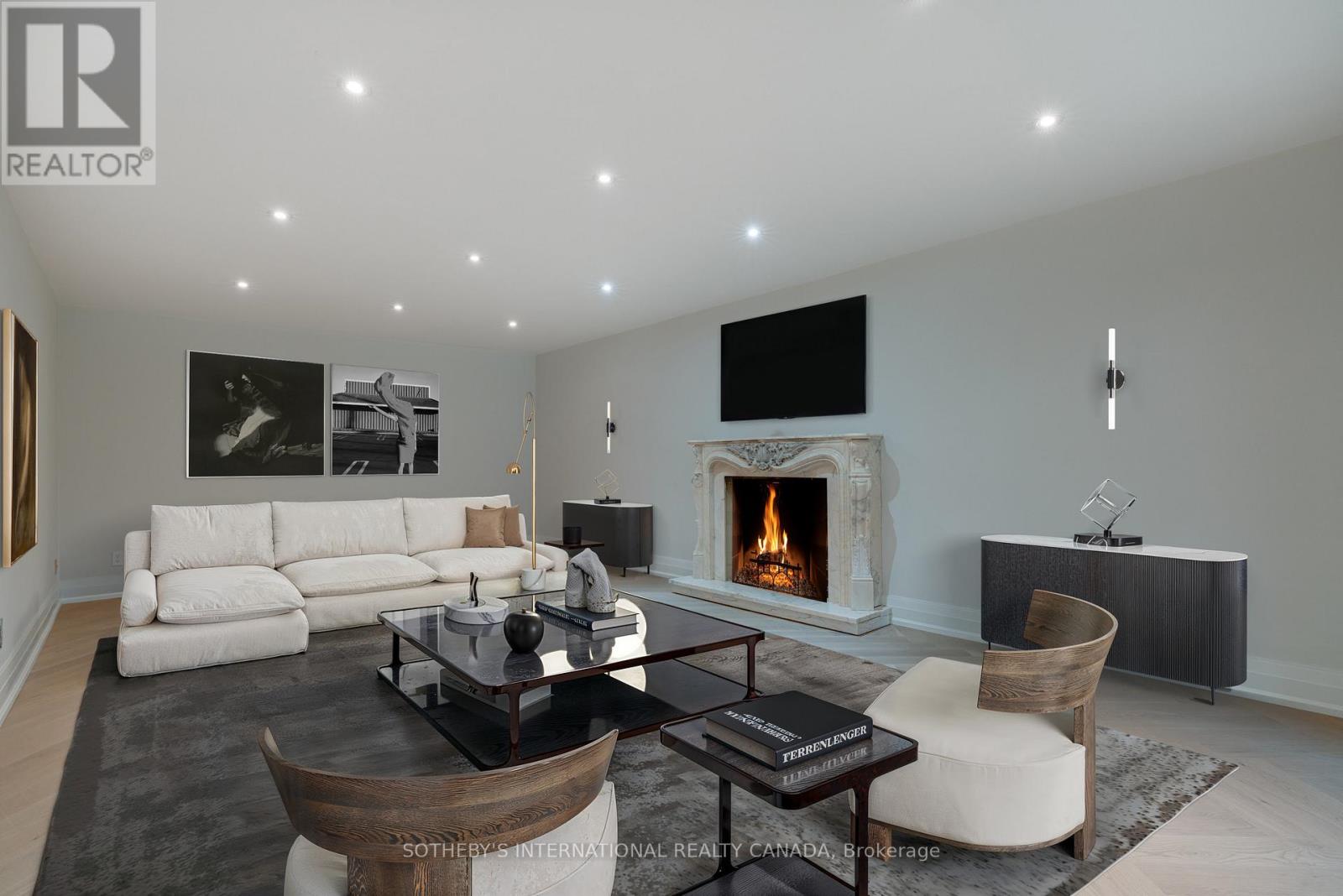 Fully renovated, this 5+1-bedroom, 8-bathroom transitional estate backs onto holes 6 and 7 of the prestigious National Golf Course in Woodbridge. Set on a private 1+ acre lot with dual-gated entrances, intricate stonework, professional landscape lighting, mature trees, and striking black glass doors at both the entrance and garages, the property blends quiet elegance with secure living. Inside, refined craftsmanship is showcased through slab stone finishes, marble fireplaces, and a grand reception entrance with a 3-storey floating staircase. The residence offers: A primary suite with a Fendi Casa inspired walk-in closet and spa-like bath, ensuite baths and built-in closets in every upper-level bedroom; 3+1 kitchens and 2 laundry rooms for ultimate convenience; a wellness area with heated floors, change room, powder room and contemporary spa-shower plus direct pool access. Media and games rooms, sauna, home gym (or nanny's suite), and a dedicated space for a customized panic room. The resort-style backyard is designed for entertaining with an inground pool, covered loggia with outdoor kitchen and fireplace, dining and seating areas, and open, park-like grounds perfect for growing an organic vegetable garden or children's play. Parking for 15 vehicles includes a 3-car garage with lift-ready capacity. Move-in ready before Christmas, this estate combines contemporary luxury, privacy, and security - perfect for the discerning buyer. *Some pictures are virtually furnished. (id:64974)