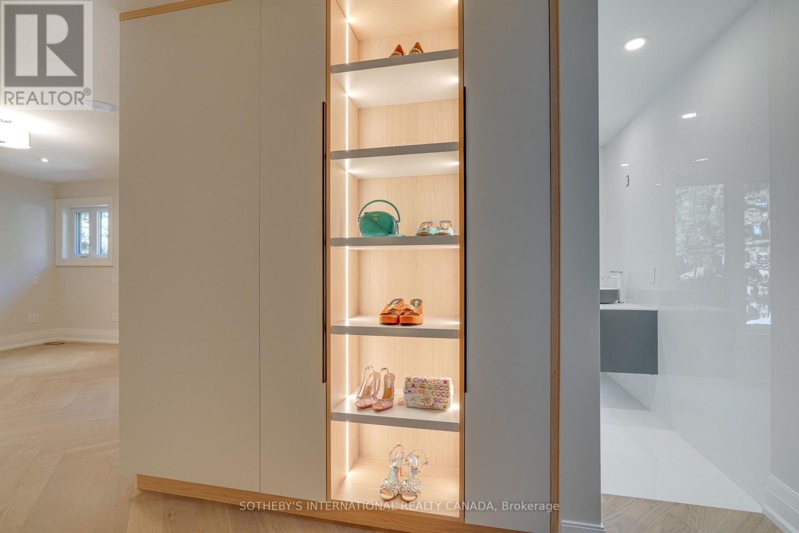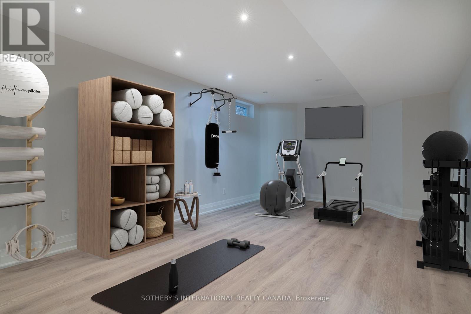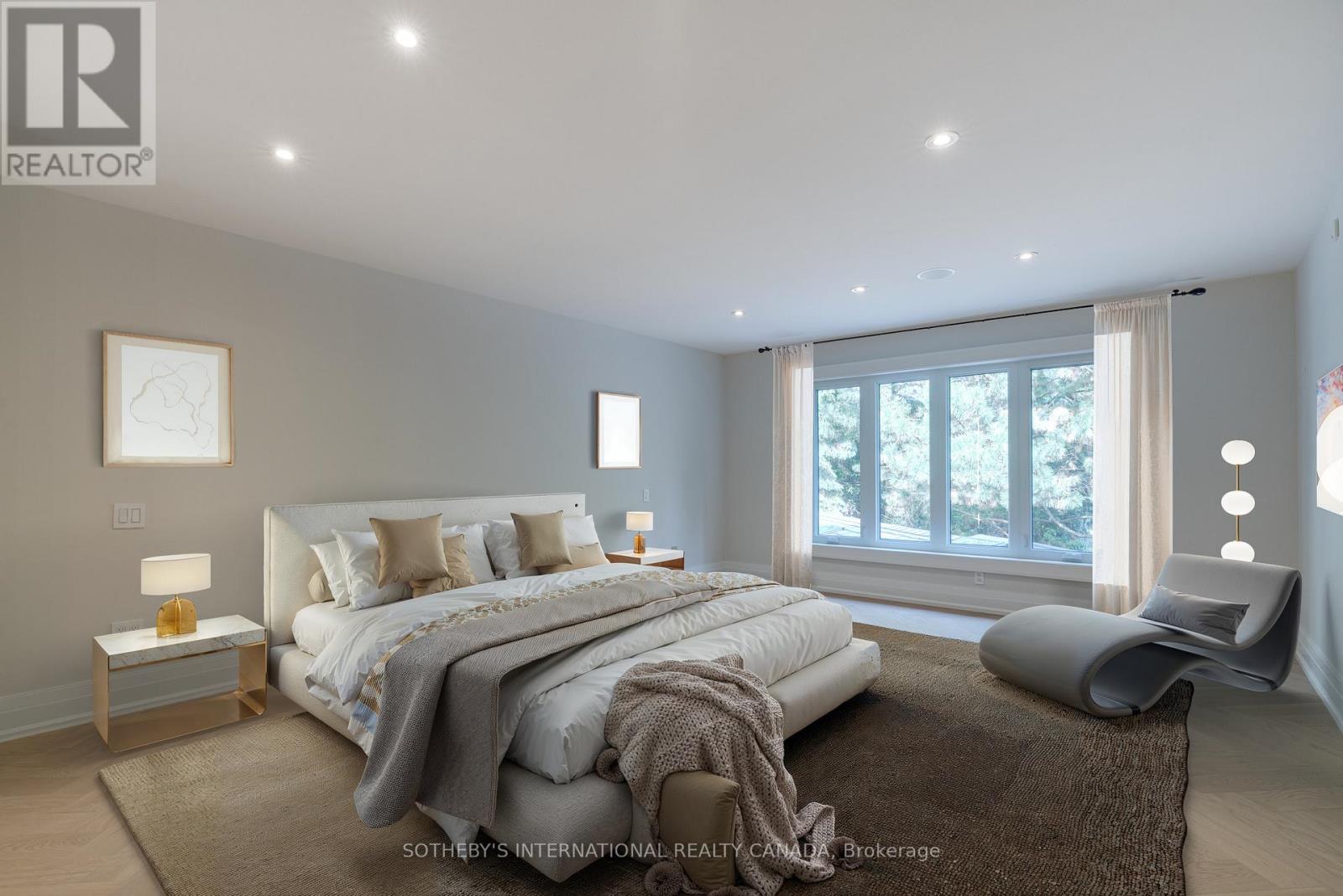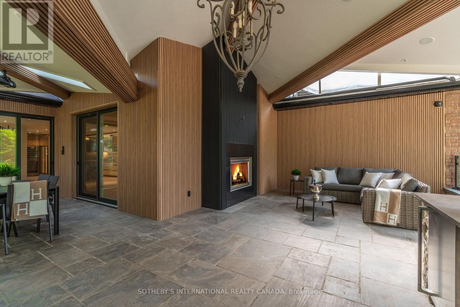 Fully renovated, this 5+1-bedroom, 8-bathroom transitional estate backs onto holes 6 and 7 of the prestigious National Golf Course in Woodbridge. Set on a private 1+ acre lot with dual-gated entrances, intricate stonework, professional landscape lighting, mature trees, and striking black glass doors at both the entrance and garages, the property blends quiet elegance with secure living. Inside, refined craftsmanship is showcased through slab stone finishes, marble fireplaces, and a grand reception entrance with a 3-storey floating staircase. The residence offers: A primary suite with a Fendi Casa inspired walk-in closet and spa-like bath, ensuite baths and built-in closets in every upper-level bedroom; 3+1 kitchens and 2 laundry rooms for ultimate convenience; a wellness area with heated floors, change room, powder room and contemporary spa-shower plus direct pool access. Media and games rooms, sauna, home gym (or nanny's suite), and a dedicated space for a customized panic room. The resort-style backyard is designed for entertaining with an inground pool, covered loggia with outdoor kitchen and fireplace, dining and seating areas, and open, park-like grounds perfect for growing an organic vegetable garden or children's play. Parking for 15 vehicles includes a 3-car garage with lift-ready capacity. Move-in ready before Christmas, this estate combines contemporary luxury, privacy, and security - perfect for the discerning buyer. *Some pictures are virtually furnished. (id:64974)