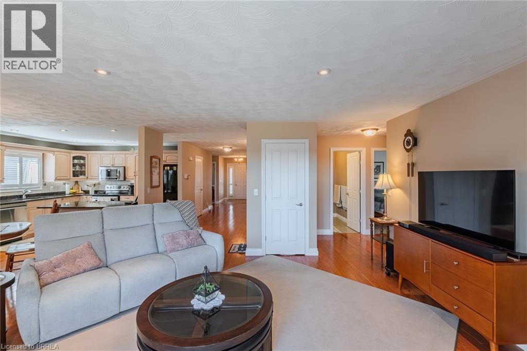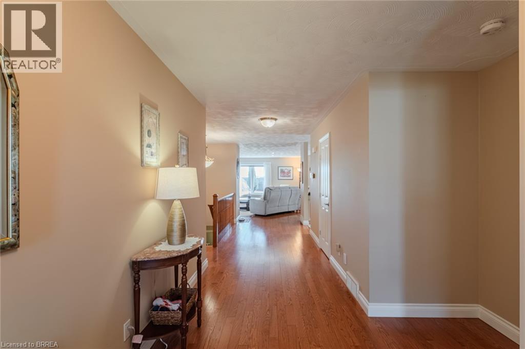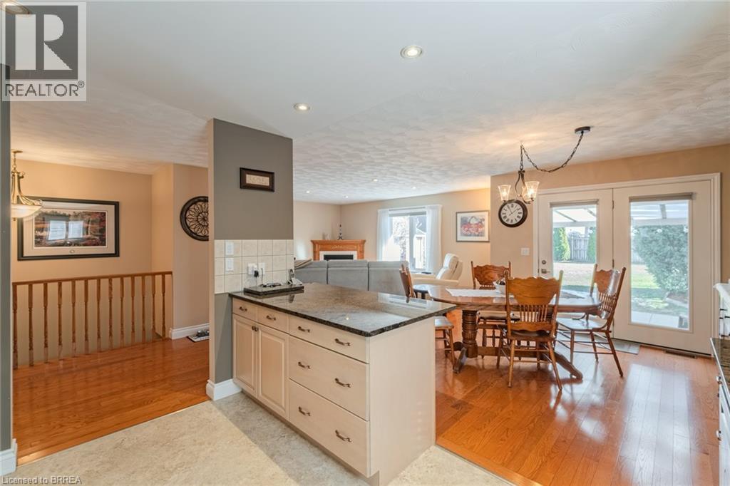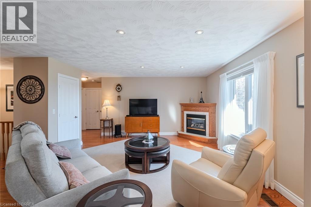Welcome to this beautifully maintained brick bungalow in Simcoe’s desirable east end, offering over 2,700 sq. ft. of finished living space and no rear neighbours for added privacy. The open-concept living and dining area features hardwood flooring and a cozy corner natural gas fireplace. The kitchen offers granite countertops, modern appliances, and a convenient breakfast peninsula. Step outside to an interlocking patio with sunshade, overlooking a deep, fully fenced yard with designer shed—perfect for relaxing or entertaining. The professionally finished basement adds exceptional living space with a stone gas fireplace, spacious family/games room with pool table and shuffleboard, fourth bedroom, 3-piece bath, large storage area, and cold cellar. A move-in-ready home in a sought-after neighbourhood close to amenities. In ground sprinkler system services the front yard. (id:64974)