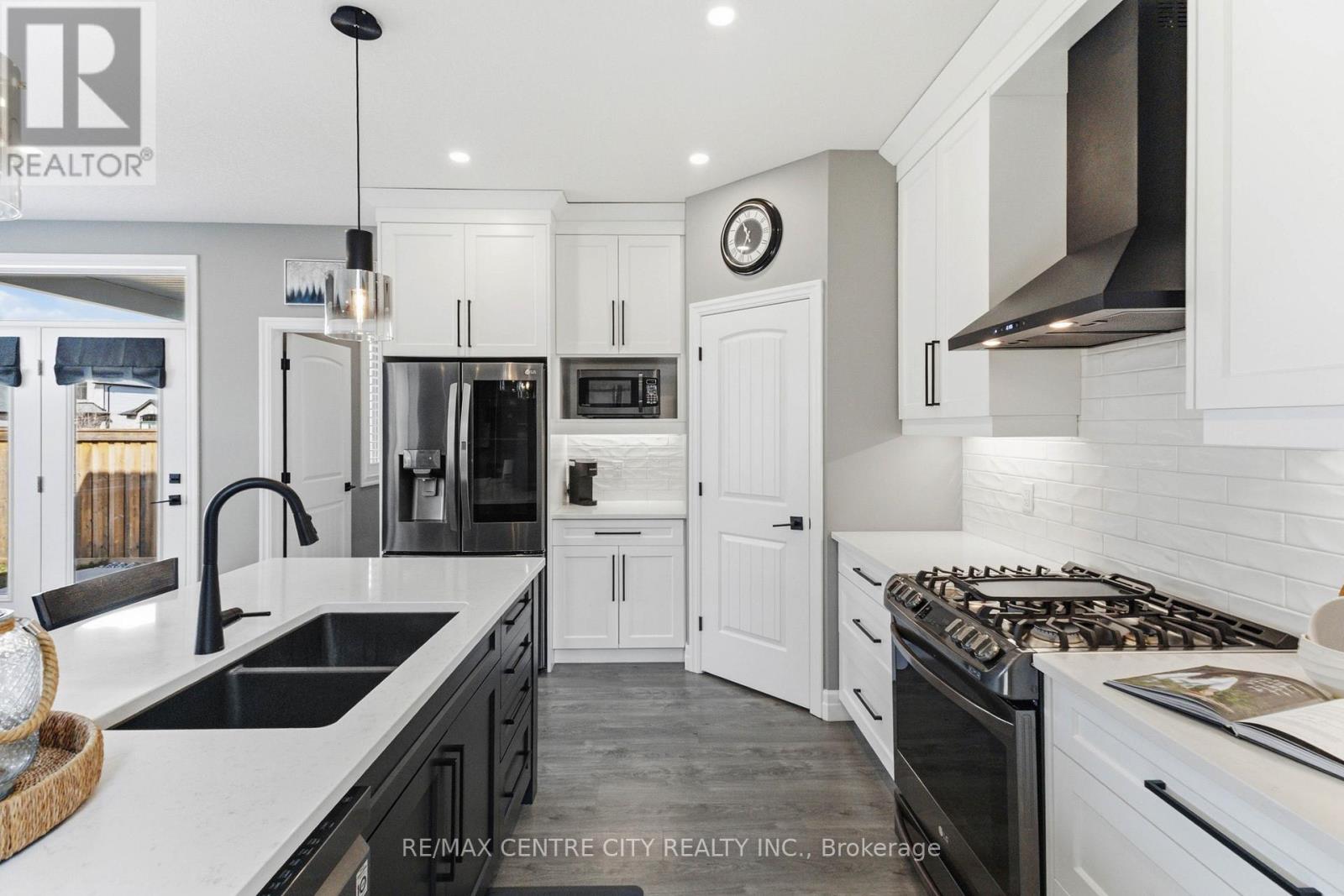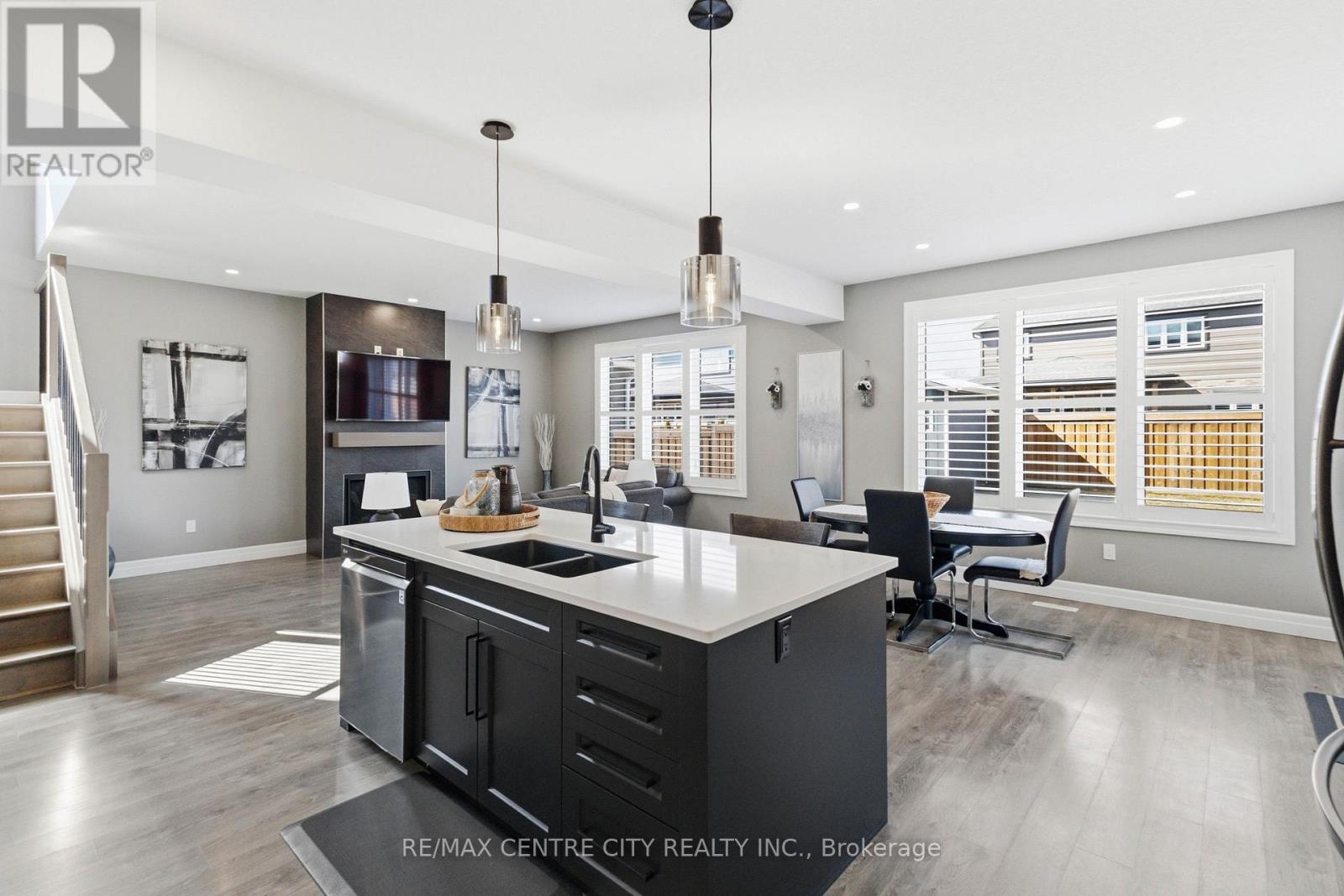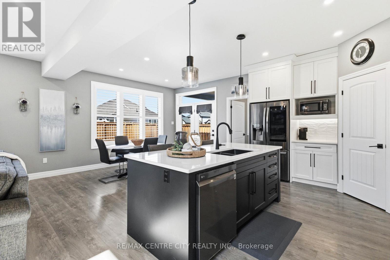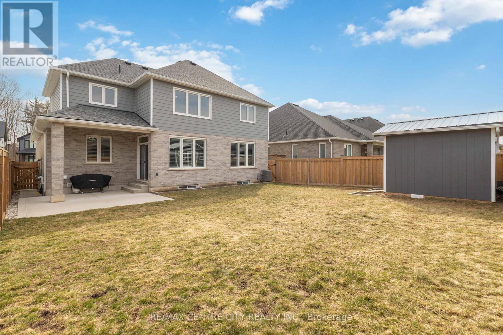 Welcome to Dorchester, the quaint, family-oriented village you'll never leave once you realize just how great life feels in this charming community. Six years new, beautifully appointed, stacked with upgrades, move-in ready. Low maintenance concrete driveway & double garage greet you before admiring the upgraded stone skirt, Hardie board exterior, covered porch & large transom windows. Spacious foyer includes plenty of room to welcome loved ones & convenient den for those WFH days or needed quiet times away from the bustle of a busy schedule. Open concept floor plan offers convenient flow & optimal function for your active family, including vinyl plank flooring throughout, spacious great room with gas fireplace & kitchen with quartz countertops, upgraded crisp white cabinetry, island, high end appliances, subway backsplash & generous corner pantry. Comfortable eating area showcases views of fully fenced backyard & storage shed, with access to a covered patio where you can barbeque year round. Large laundry/mudroom with inside entry to the garage means mindless mess control. Head upstairs, past an oversized window casting exceptional natural light through the stairwell, to four bedrooms, all comfortably sized and carpet-free! Exceptional closet space includes walk-in closets in three rooms & chic primary ensuite featuring double vanity, oversized tiled shower & glass surround. Fully finished lower level includes large windows, a generous family room, gym nook, plenty of storage & fully finished full bathroom. All this, in an elevated community of high quality craftsmanship and reputable builders, with your favourite amenities just minutes away, convenient access to the 401, and a quick 10 minute jaunt to London. This is where long standing traditions run deep, where kids grow up building forts in the woods, riding bikes with their friends & where community isn't just a perk, it's a way of life. Incredible value, with nothing to do but unpack! Welcome home! (id:64974)