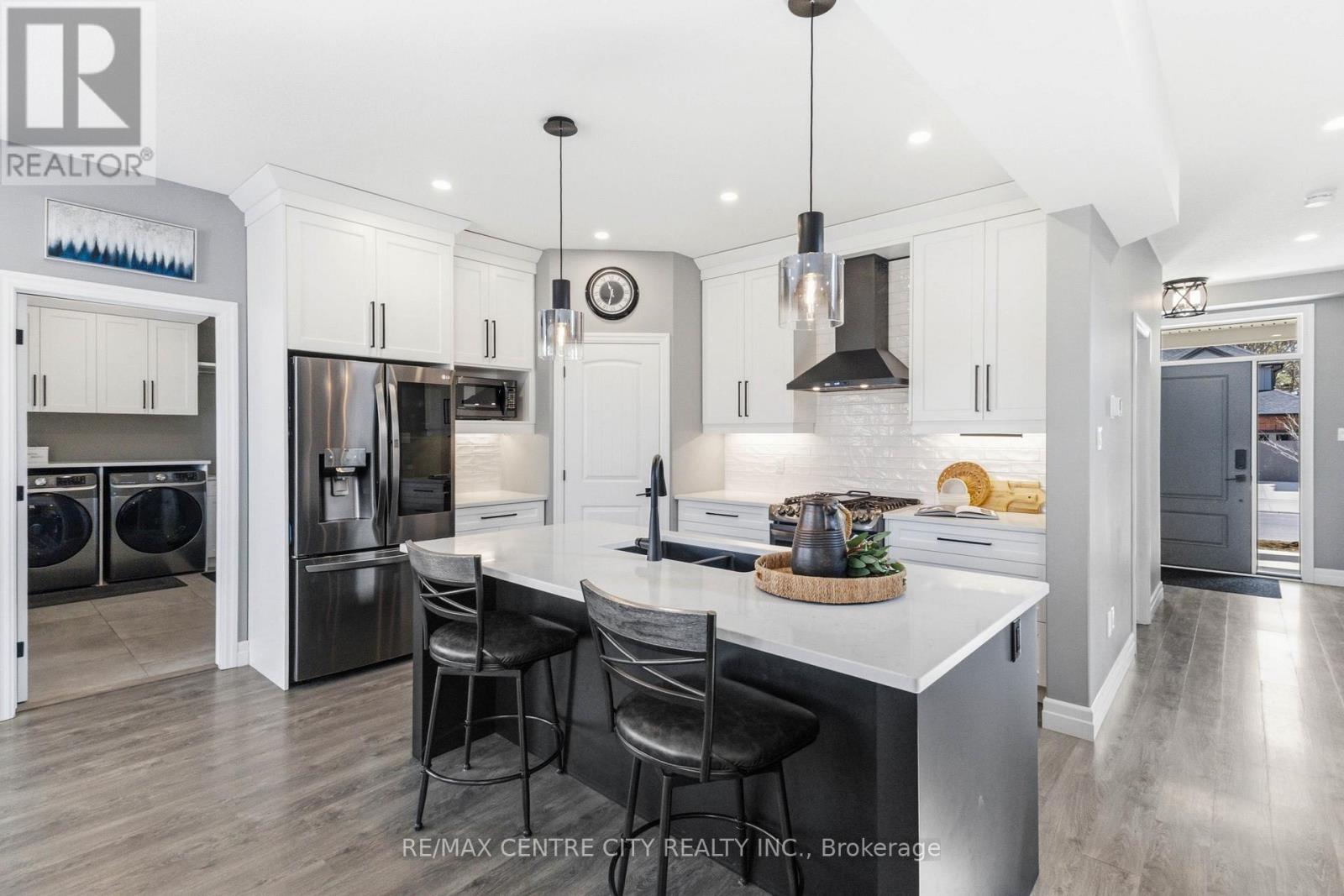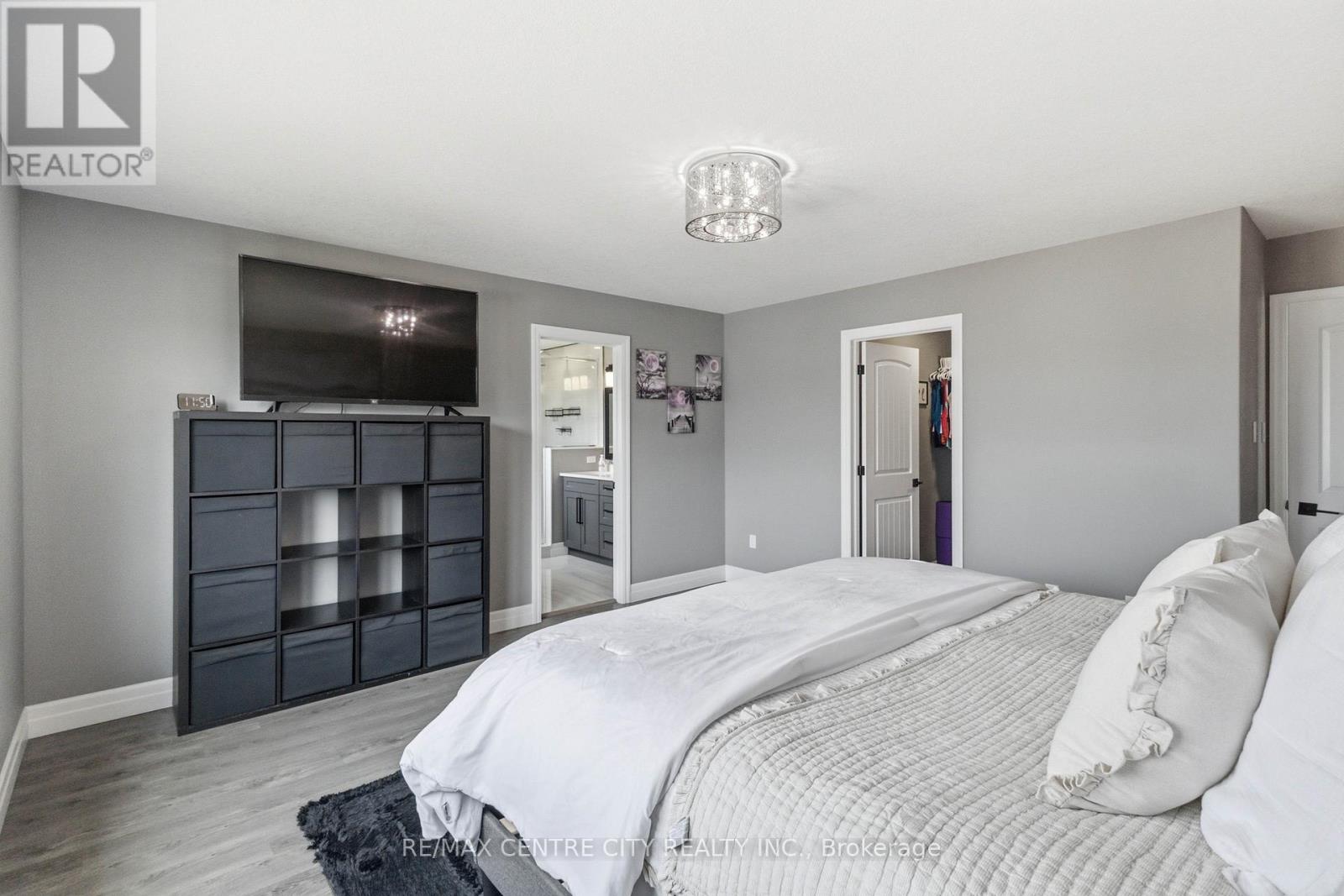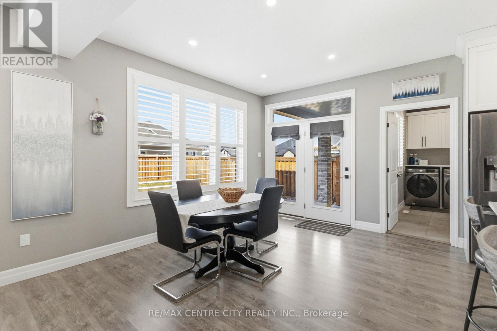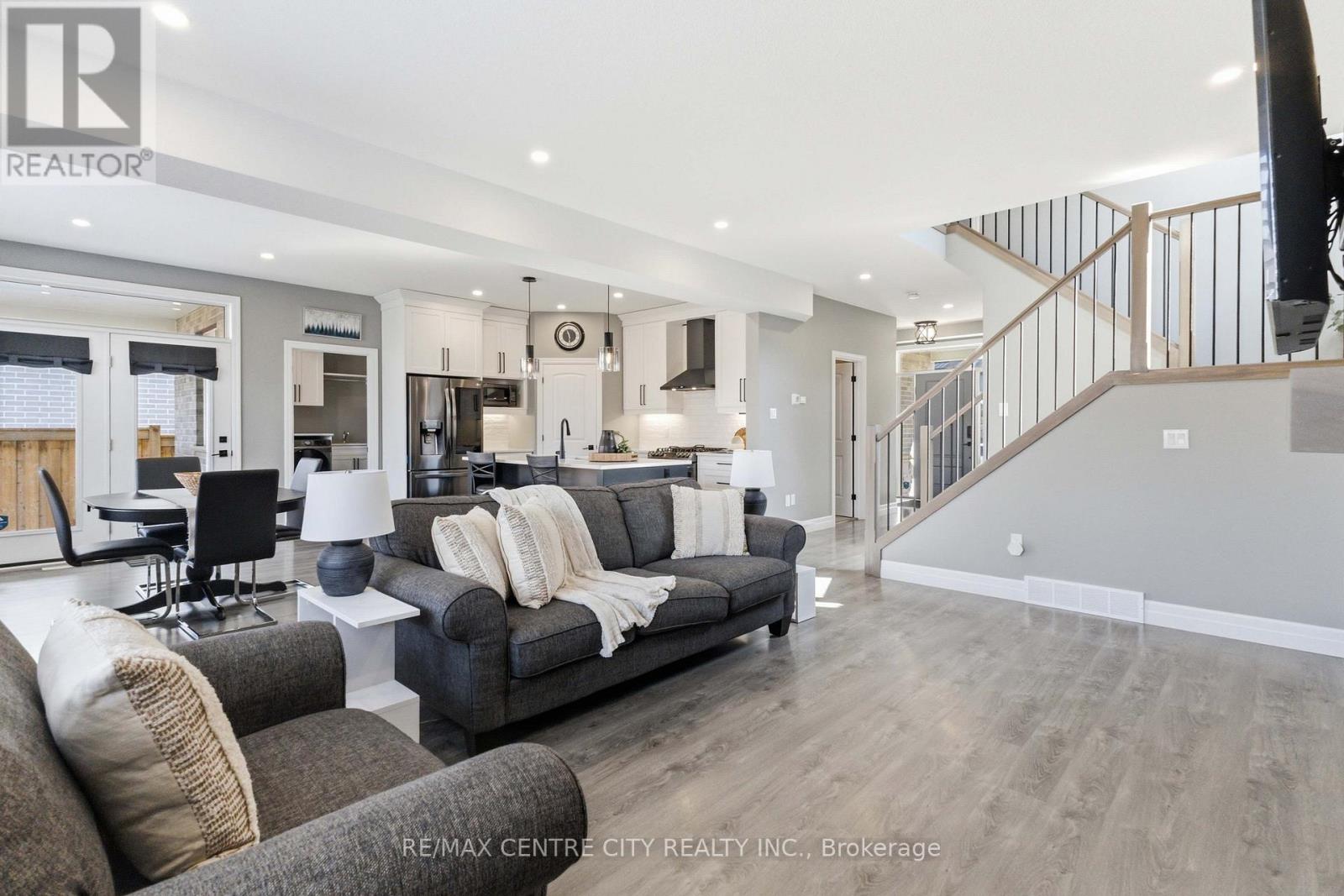 Welcome to Dorchester, the quaint, family-oriented village you'll never leave once you realize just how great life feels in this charming community. Six years new, beautifully appointed, stacked with upgrades, move-in ready. Low maintenance concrete driveway & double garage greet you before admiring the upgraded stone skirt, Hardie board exterior, covered porch & large transom windows. Spacious foyer includes plenty of room to welcome loved ones & convenient den for those WFH days or needed quiet times away from the bustle of a busy schedule. Open concept floor plan offers convenient flow & optimal function for your active family, including vinyl plank flooring throughout, spacious great room with gas fireplace & kitchen with quartz countertops, upgraded crisp white cabinetry, island, high end appliances, subway backsplash & generous corner pantry. Comfortable eating area showcases views of fully fenced backyard & storage shed, with access to a covered patio where you can barbeque year round. Large laundry/mudroom with inside entry to the garage means mindless mess control. Head upstairs, past an oversized window casting exceptional natural light through the stairwell, to four bedrooms, all comfortably sized and carpet-free! Exceptional closet space includes walk-in closets in three rooms & chic primary ensuite featuring double vanity, oversized tiled shower & glass surround. Fully finished lower level includes large windows, a generous family room, gym nook, plenty of storage & fully finished full bathroom. All this, in an elevated community of high quality craftsmanship and reputable builders, with your favourite amenities just minutes away, convenient access to the 401, and a quick 10 minute jaunt to London. This is where long standing traditions run deep, where kids grow up building forts in the woods, riding bikes with their friends & where community isn't just a perk, it's a way of life. Incredible value, with nothing to do but unpack! Welcome home! (id:64974)