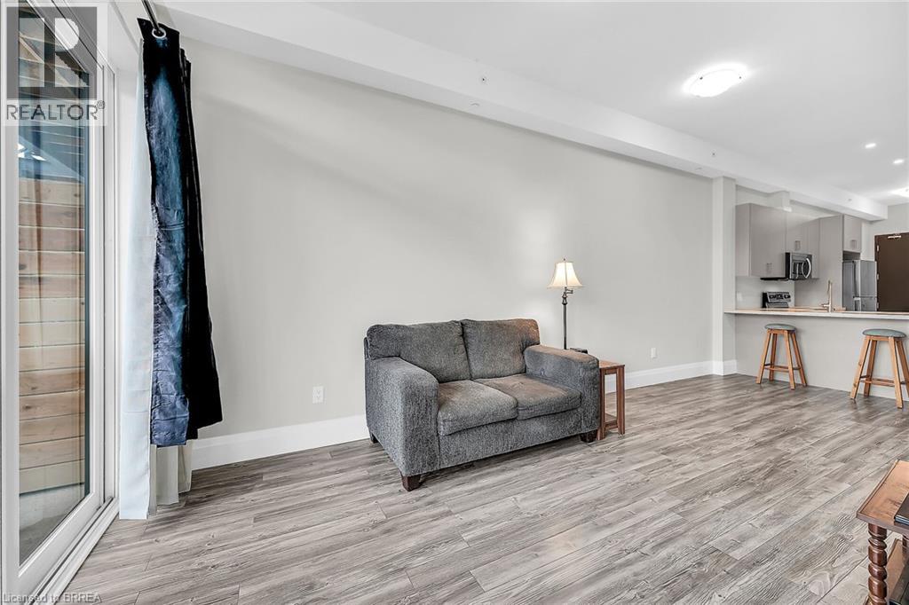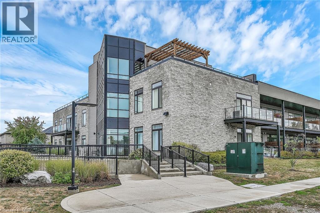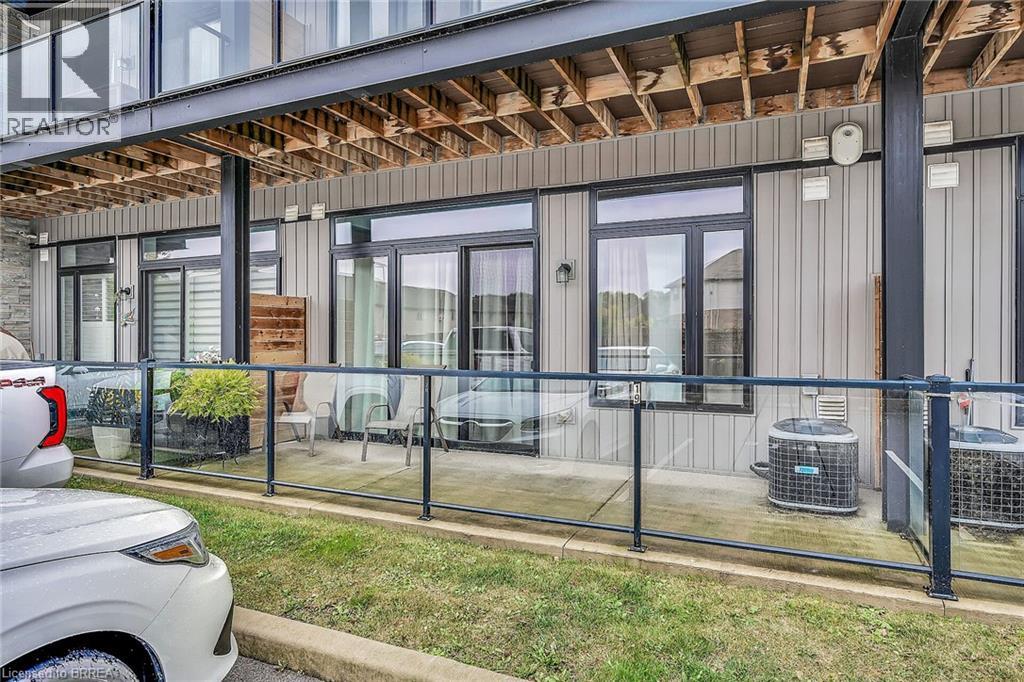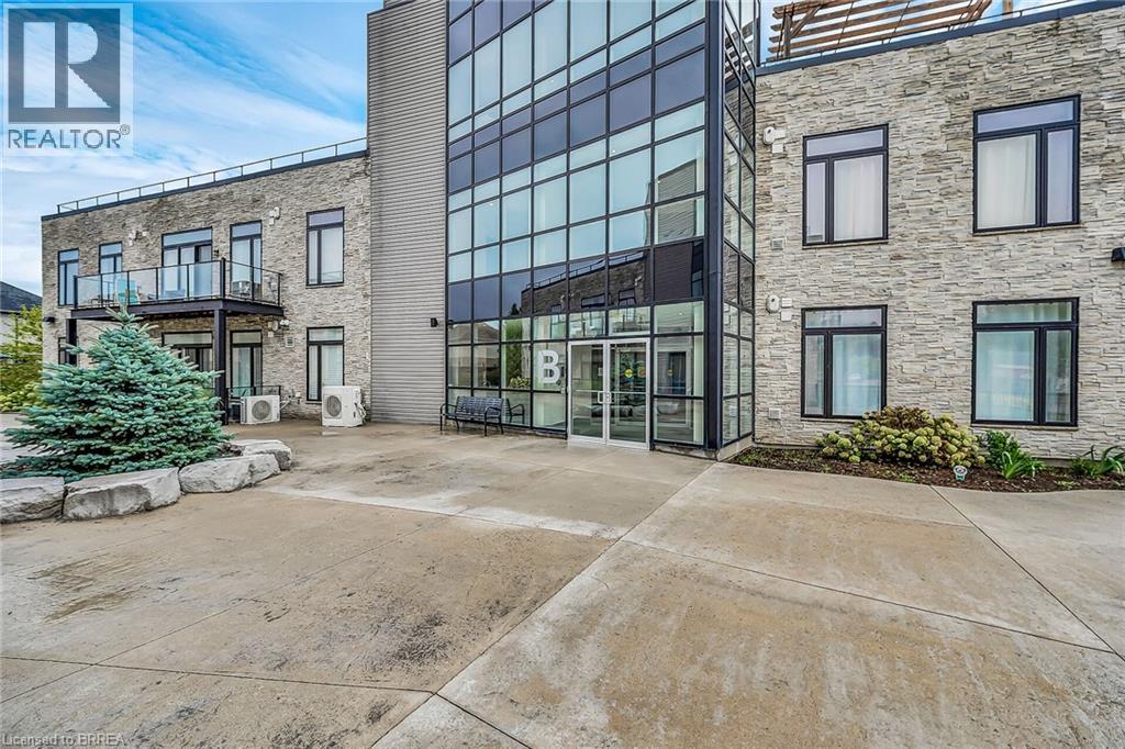 LIFE MADE EASY!!! Situated just blocks away from the picturesque Grand River and some of the finest hiking trails, the Lofts on Morrell offers modern living in a charming location close to many restaurants, access to the 403, the hospital and much more. Everything you need is handily located within this Stylish condo complex with many modern and tasteful conveniences. This spacious unit is bright and cheery with the floor to ceiling windows and patio doors to your private patio. You can also entertain on one of 2 Rooftop patios equipped with a Community BBQ and a lovely lounge/party room available to book for private functions. Amenities Galore. This unit with impressive 10ft. ceilings & 8 ft doors has an open concept LR/Kitchen design, 2 bedrooms, 4pc bath, in-suite laundry behind a sliding barn door and was recently professionally painted and cleaned throughout and ready for you to move in immediately. New furnace installed Oct 2025 & A/C replaced in 2022. Exclusive parking is conveniently located just outside the rear entrance. (id:64974)
