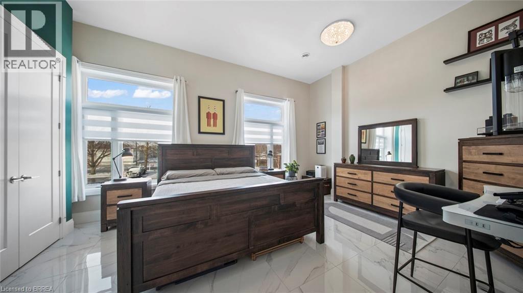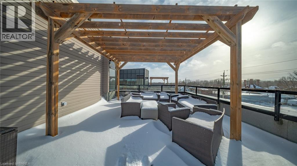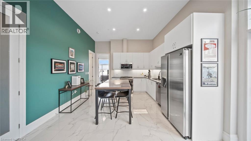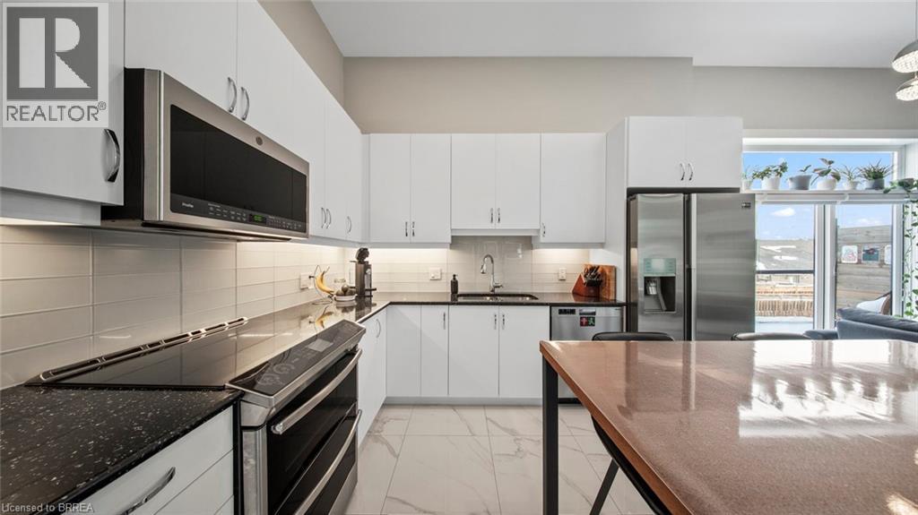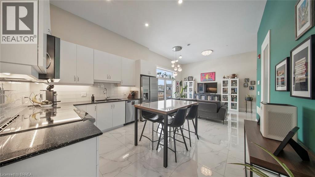 Are you a young professional, first time home buyer, or looking to downsize? This stunning and meticulously cared for executive corner suite boasts many unique features, making it a standout unit at The Lofts condominiums in Brantford’s highly desirable Holmedale neighbourhood. This unit features a large, open concept living space and kitchen with modern finishes, stainless steel appliances and tile flooring throughout, as well as a large bedroom with more than enough room for a king bed and a home office. Front hall and bedroom closets are double height with built in shelving units and tons of storage space. The entire unit features high ceilings, pot lights and ample natural light. The bathroom offers a floor to ceiling modern tile shower with a beautiful shower glass door. A spacious laundry and storage space completes the interior of this suite. Just off the main living space, you will find a large private balcony perfect for enjoying those warm summer nights. Included with this condominium is one parking space conveniently located close to the building entrance, as well as access to a rooftop patio with BBQ & fire top table, as well as a community room that can be rented for private events. The Lofts are just steps away from Grand River trails and parks. The property is perfectly located for those who enjoy nature walks, jogging, cycling or cross-country skiing, and is ideal for those who appreciate a quiet, safe and welcoming neighbourhood. Don’t miss out on this incredible opportunity – this condo is one of a kind! (id:64974)