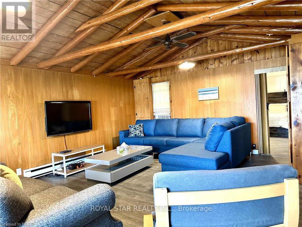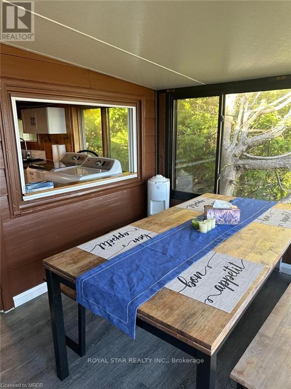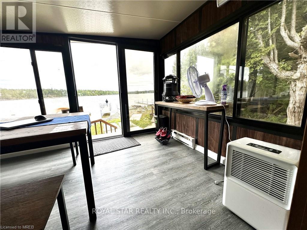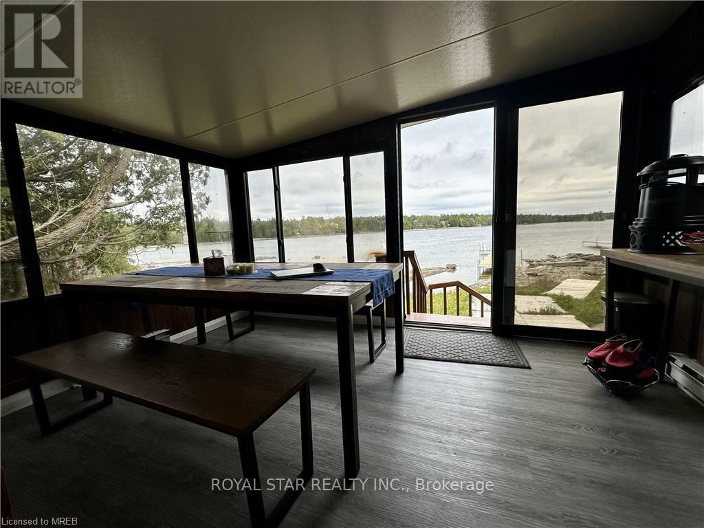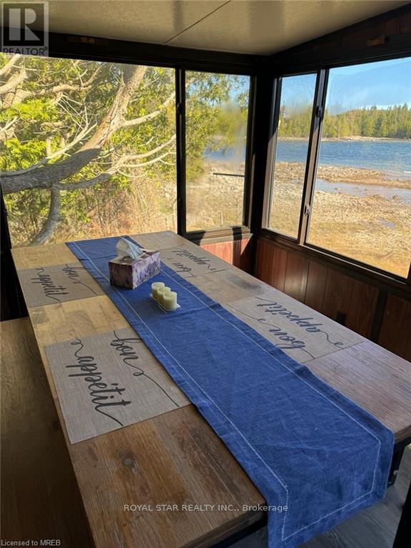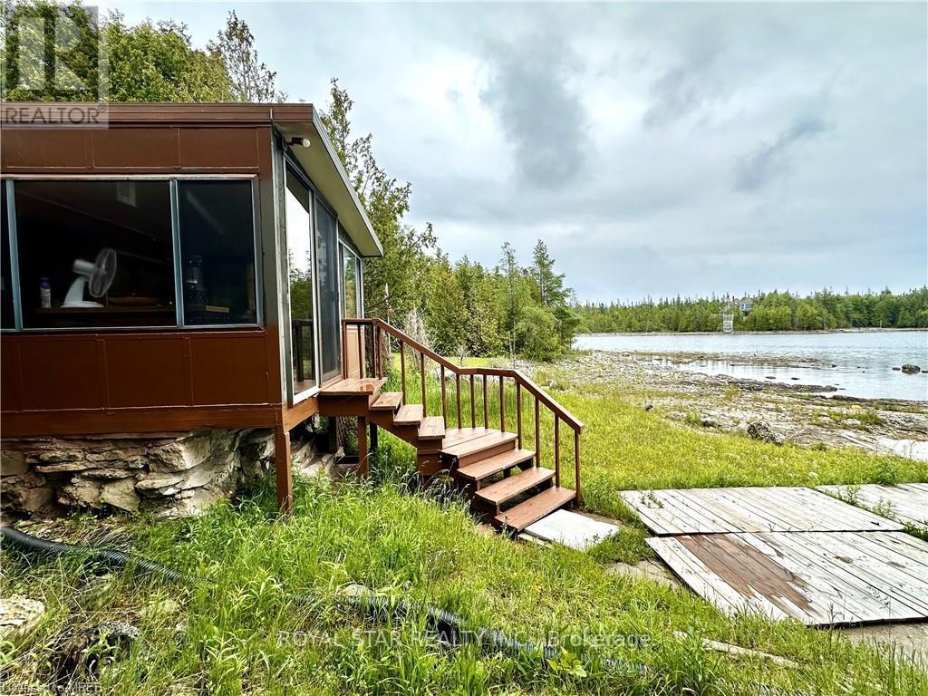 WATERFRONT COTTAGE MINUTES TO THE VILLAGE OF TOBERMORY! 1025 sq ft living space. Close to all amenities, recreation, shops & the ferry. Stunning shoreline views from the living room!!! The sunroom makes you feel like you're right on the water, perfect spot for family game nights, and dining. Located on a protected channel - perfect for boats, canoeing & kayaking! This cute place is a true "rustic" cottage. Both the kitchen & living room feature a vaulted ceiling with exposed log beams! Huge primary bedroom with large closet. Two additional bedrooms featuring high vaulted ceilings giving a large feel to them! 3pc bathroom, with shower. Cottage comes furnished! There is even a finished Bunkie, 14' by 12'. Metal Roof on Cottage! Great spot for the kids, not to mention the very large storage shed/workshop, 16' by 10. More than $100K spent in recent upgrades. New deck, flooring, kitchen...too many items to list. Option to purchase with existing furniture. (id:64974)