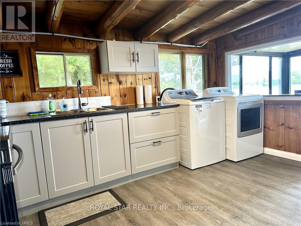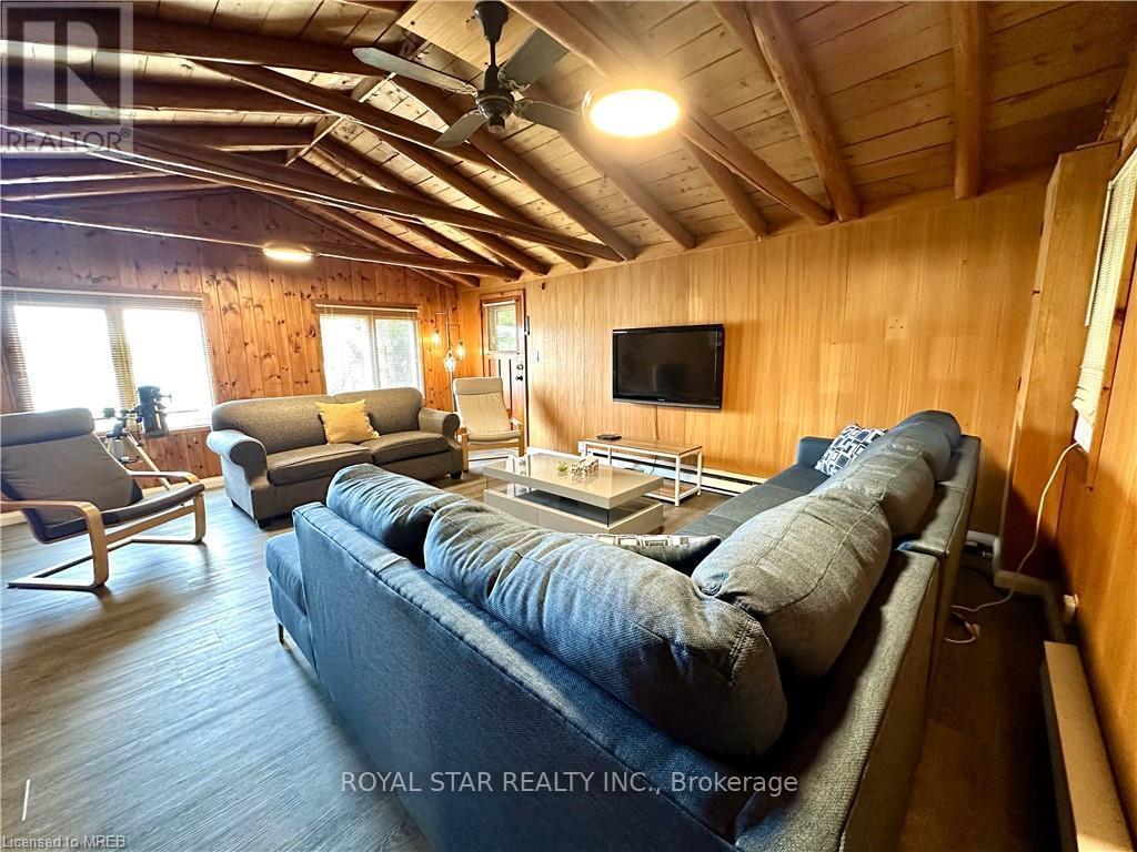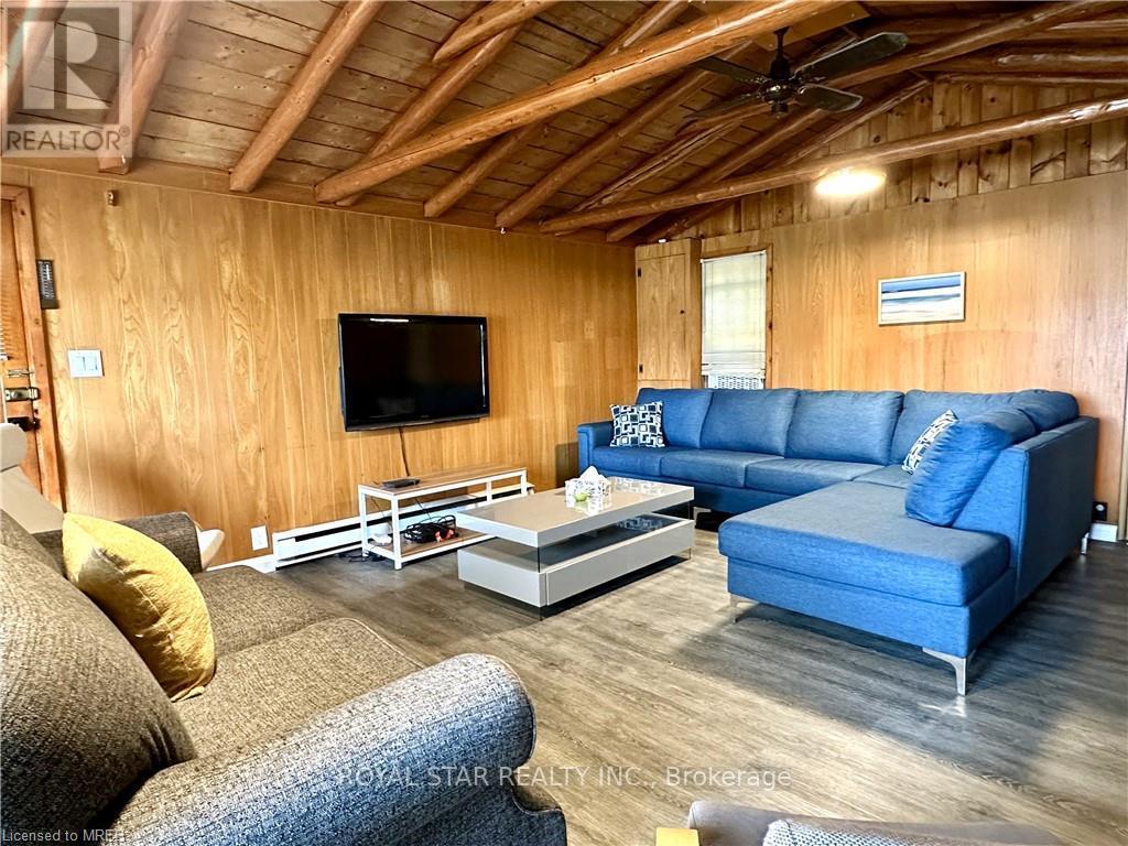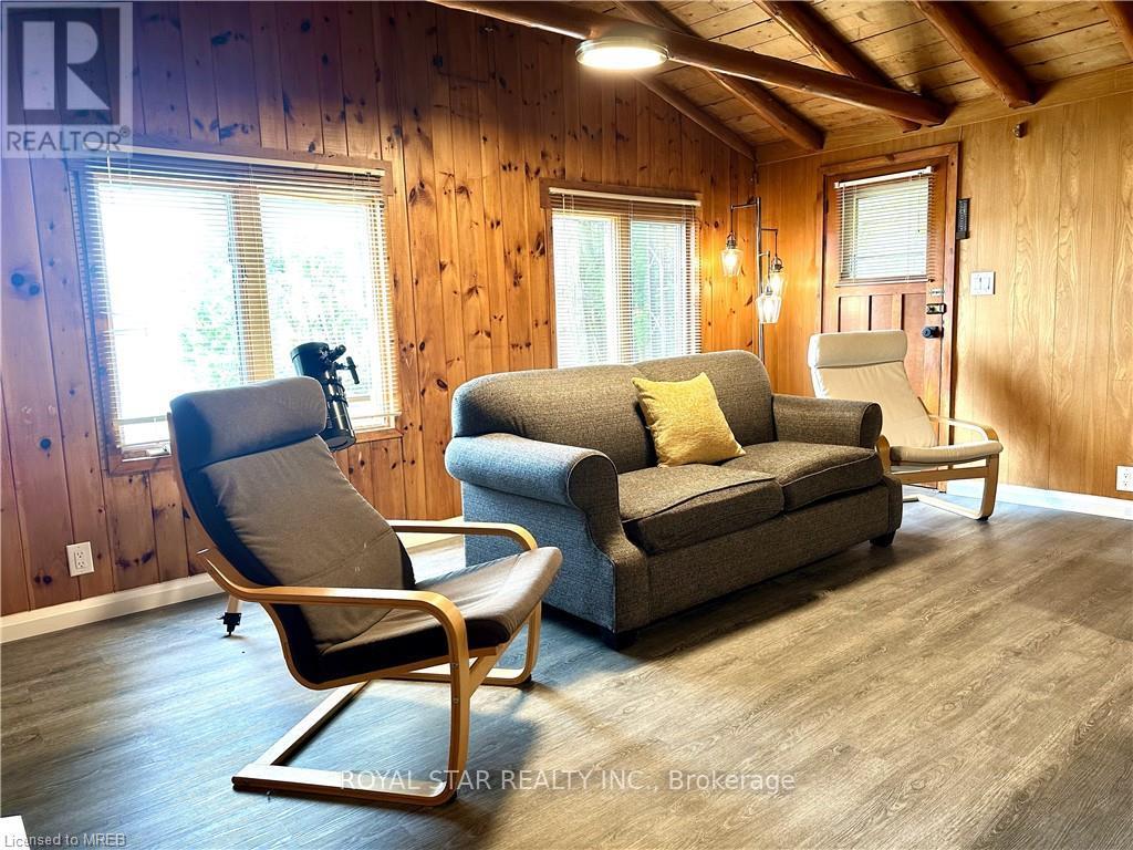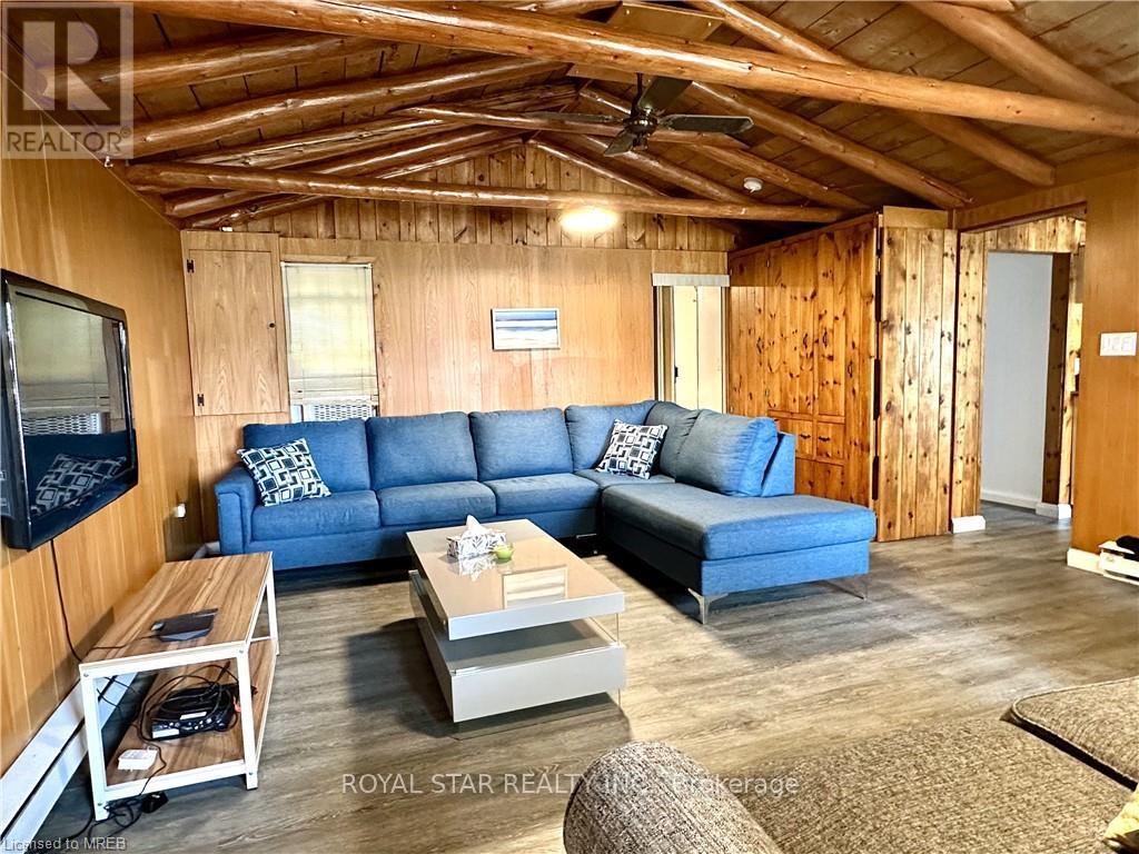 WATERFRONT COTTAGE MINUTES TO THE VILLAGE OF TOBERMORY! 1025 sq ft living space. Close to all amenities, recreation, shops & the ferry. Stunning shoreline views from the living room!!! The sunroom makes you feel like you're right on the water, perfect spot for family game nights, and dining. Located on a protected channel - perfect for boats, canoeing & kayaking! This cute place is a true "rustic" cottage. Both the kitchen & living room feature a vaulted ceiling with exposed log beams! Huge primary bedroom with large closet. Two additional bedrooms featuring high vaulted ceilings giving a large feel to them! 3pc bathroom, with shower. Cottage comes furnished! There is even a finished Bunkie, 14' by 12'. Metal Roof on Cottage! Great spot for the kids, not to mention the very large storage shed/workshop, 16' by 10. More than $100K spent in recent upgrades. New deck, flooring, kitchen...too many items to list. Option to purchase with existing furniture. (id:64974)