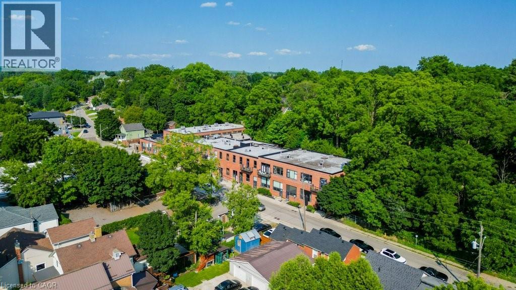 Spruce Street Lofts presents a unique opportunity to own a piece of Galt’s industrial history. This 1,691 sq. ft. updated warehouse conversion strikes a bold balance between raw materials and polished finishes, featuring striking cement floors and original brickwork under towering ceilings. The expansive open-concept layout is a centerpiece of modern function, seamlessly connecting a gourmet kitchen—boasting premium quartz countertops, modern painted cabinetry, stainless steel appliances, and an oversized island—to the sun-filled dining and lounge areas. This airy flow is perfect for entertaining, with wall-to-wall windows framing the urban landscape. Privacy remains paramount, with the building nestled in a quiet residential pocket bordering a park, yet located only minutes from the city's premier arts, dining, and yoga studios. High-end updates abound, from the designer lighting throughout to the spa-inspired bathroom with its deep soaker tub. Featuring secure underground parking and a rare private back patio, this loft offers the scale of a house with the effortless lifestyle of downtown condo living. (id:64974)