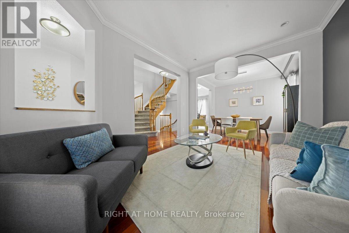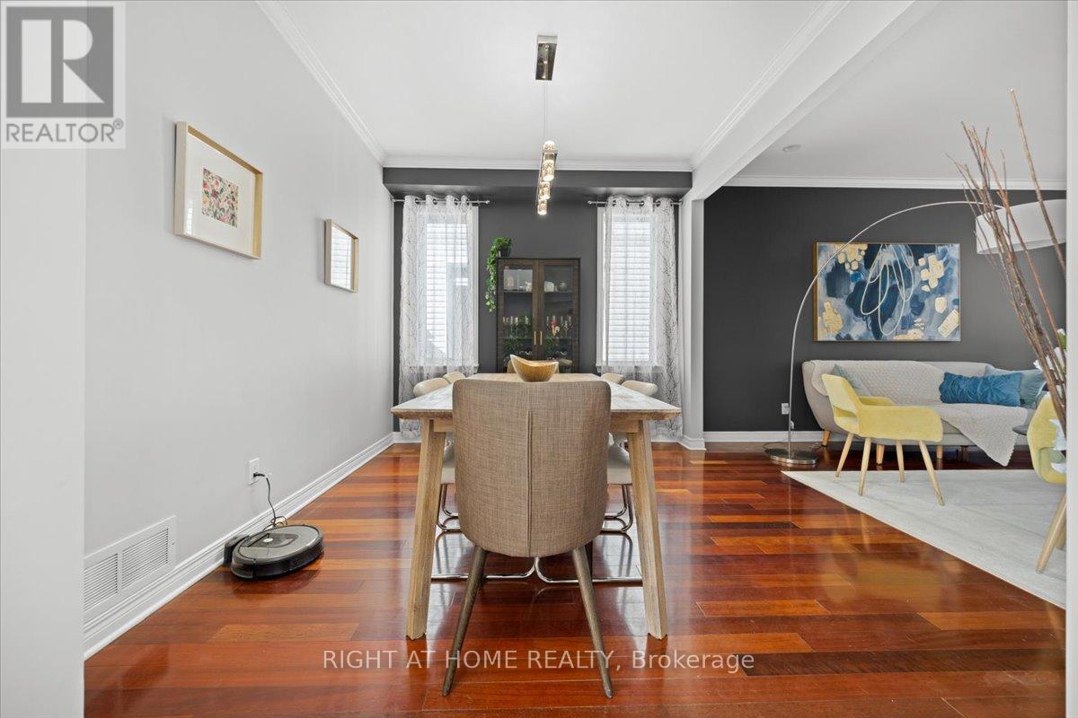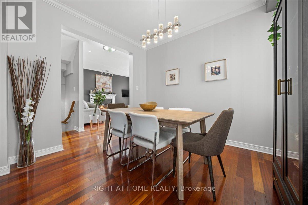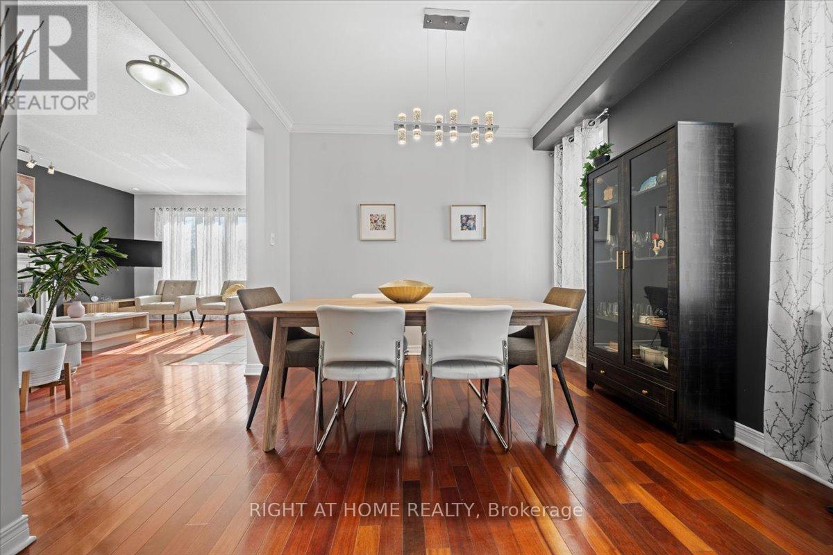 Sophistication meets comfort in this impeccably maintained 4-bedroom Richcraft Wellesley model. From the moment you step inside, the pride of ownership is unmistakable, offering a seamless blend of architectural character and modern luxury.The main floor is defined by soaring 9' ceilings and the rich warmth of Brazilian cherry hardwood. Whether you are hosting formal gatherings in the sun-drenched living and dining rooms or relaxing in the cozy family room by the gas fireplace, the layout flows effortlessly.At the heart of the home lies the Chef's Kitchen, a custom masterpiece featuring premium Muskoka cabinetry, polished granite counter-tops and professional-grade Bertazzoni induction cook-top.Retreat to the second floor where the Primary Suite serves as a true sanctuary, boasting dramatic cathedral ceilings. Three additional generously sized bedrooms provide ample space for family, guests, or a dedicated home office.The professionally finished basement is designed for the ultimate host. This impressive space features a stunning live-edge maple wet bar, an integrated wine refrigerator and a sleek electric fireplace for a modern ambience. Step outside to a private, fully fenced backyard oasis. Whether you're dining al fresco under the permanent gazebo or enjoying a quiet morning coffee, this space is ready for summer enjoyment. (id:64974)