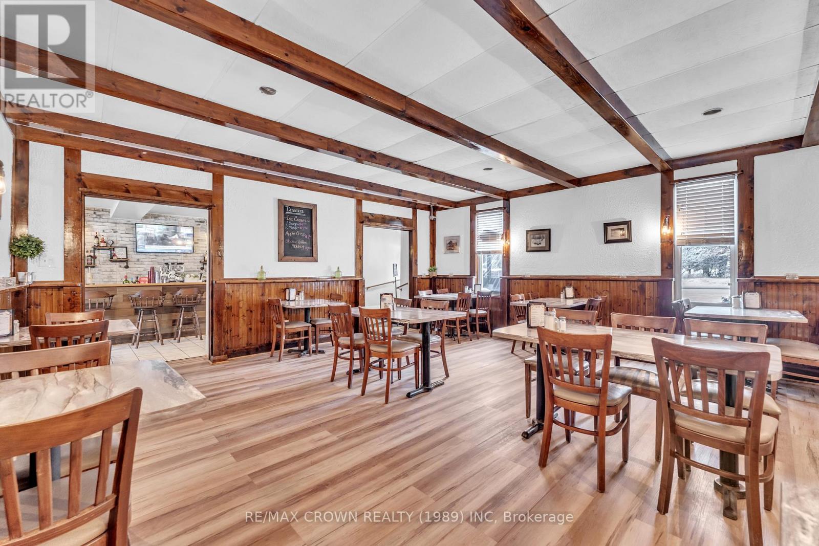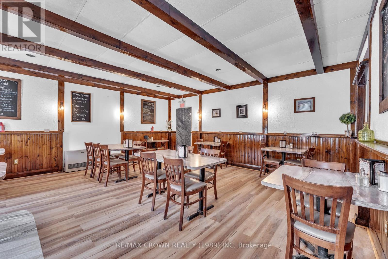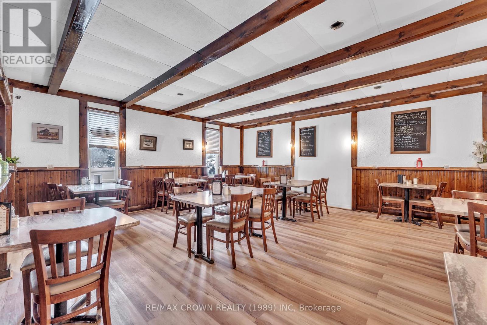 The Wagon Wheel Restaurant is a well-established, full-service dining operation located in Powassan, offering a turnkey opportunity that includes the land, building, and active business. This is a rare opportunity to acquire a recognized and proven restaurant with a strong history in the community. The property holds a valid liquor license and accommodates approximately 109 guests, with 50 interior seat sand 59 on the outdoor patio. The layout is functional and welcoming, supported by a fully equipped commercial kitchen, and is appropriately zoned for continued restaurant use. The Wagon Wheel has built a respected reputation for consistent food quality, friendly service, and dependable home-style dining. It attracts a steady customer base of local residents, surrounding rural communities, cottage owners, and Highway 11 travelers. With an established digital presence, strong reviews, and long-standing community recognition, this offering represents a stable and well-positioned investment opportunity with continued upside potential. VTB financing may be available for qualified buyers. (id:64974)