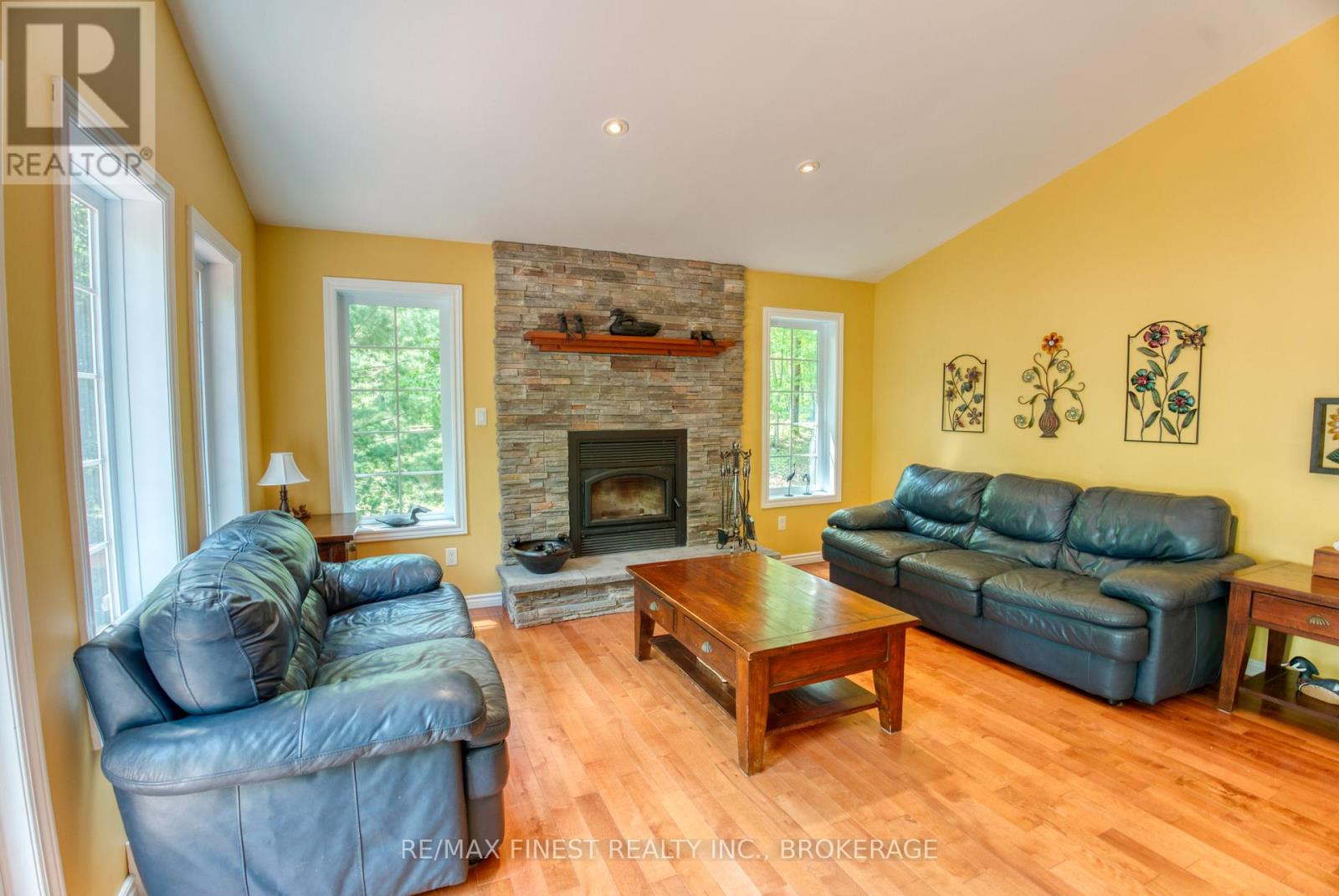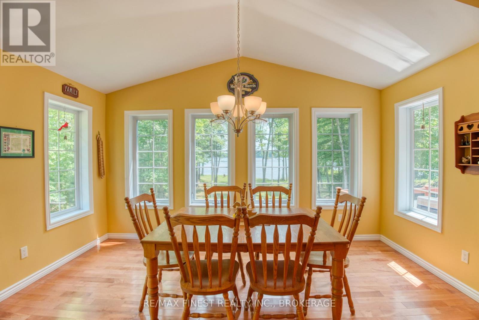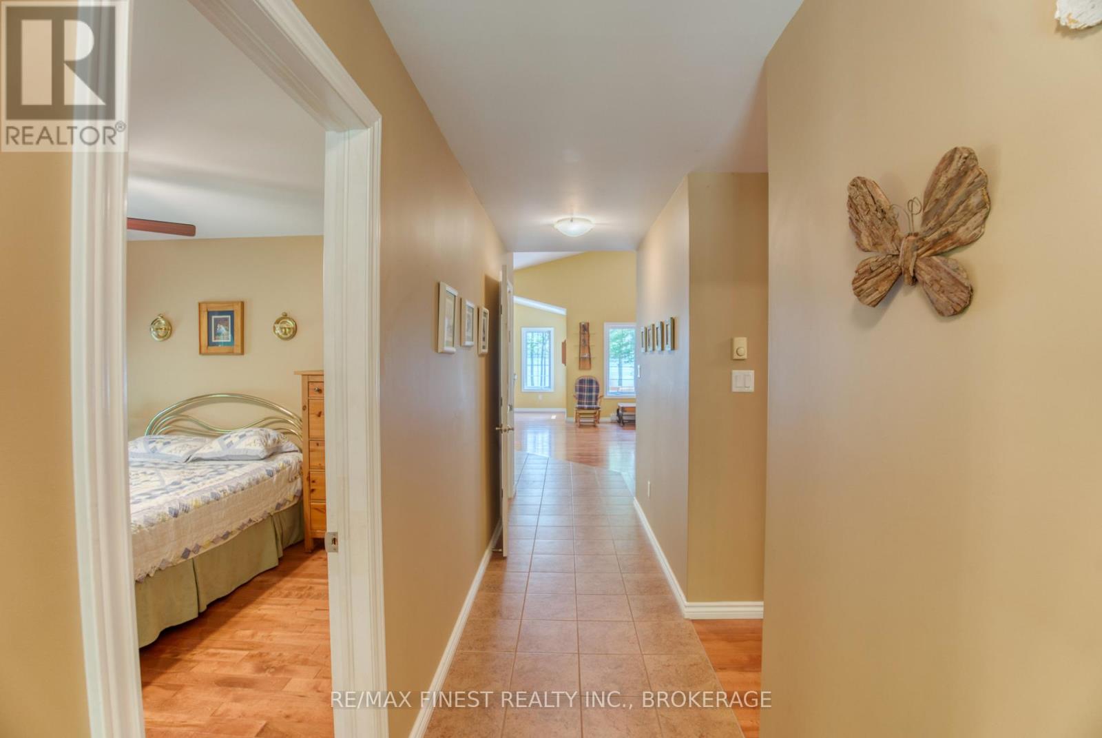 Welcome to beautiful and unique waterfront offerings on Bobs Lake - where space, privacy, and true four-season living come together. Built in 2009, this well-designed home or cottage was made for year-round use, not just summer weekends. The open-concept main level features vaulted ceilings, a custom stone fireplace, and large windows that draw your attention straight to the lake. With four generously sized bedrooms and two full bathrooms all on one level, it's perfectly suited for hosting family and friends without compromise. The full walk-out basement is a blank canvas - whether you envision additional living space, a recreation area, or a private guest suite, the opportunity is already built in. Step outside and the property separates itself. Set on over 6 acres with an expansive, level lakeside lawn, this is the kind of land that's becoming increasingly hard to find. The shoreline stretches an incredible 960 feet, offering fantastic privacy, multiple waterfront settings, and endless potential to shape the property into exactly what you want it to be. South-facing views mean all-day sun across the water - from quiet morning coffees to long summer evenings at the shoreline. And this isn't just a summer escape. In warmer months, enjoy boating, swimming, and exploring one of the largest inland lakes in the region. When winter arrives, the setting transforms - perfect for snowmobiling, ice fishing, and quiet weekends by the fire. With easy, year-round access just off a municipal road, this is a property you can truly use in every season. Located between the villages of Sharbot Lake and Westport, you have convenience when you need it - and complete privacy when you don't. Opportunities like this - combining acreage, significant shoreline, and a newer build - are rare on Bobs Lake. (id:64974)