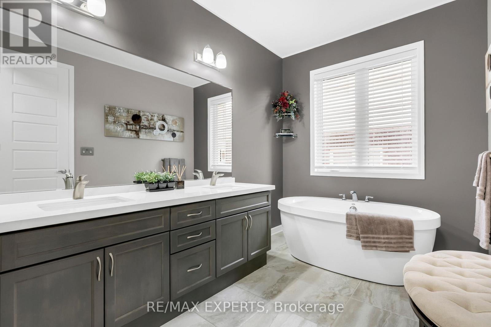 Welcome home to 857 Magnolia Terrace, an executive detached home designed for large families, featuring over 3100 sq ft of Luxury. You are Welcomed in with a Custom fiberglass door with a three-lock system. Inside, you will find soaring 20 Ft Ceiling in the family room with motorized blinds. The Dinning room with pot lights and big windows opens up to the butlers pantry. The kitchen is Elegant with custom backsplash, upgraded cabinetry and built in appliances. The living room is a great place to wind down with a custom stone accent wall, tons of windows and pot lights. Upstairs you will find The second floor features 4 large bedrooms with 3 full washrooms offering ample room for a sizable family. The lookout basement with a separate entrance presents endless possibilities for customization and expansion. The unique pie-shaped lot is perfect to accommodate a pool. Properties like this rarely come onto the market, don't miss out on your forever home. (id:64974)