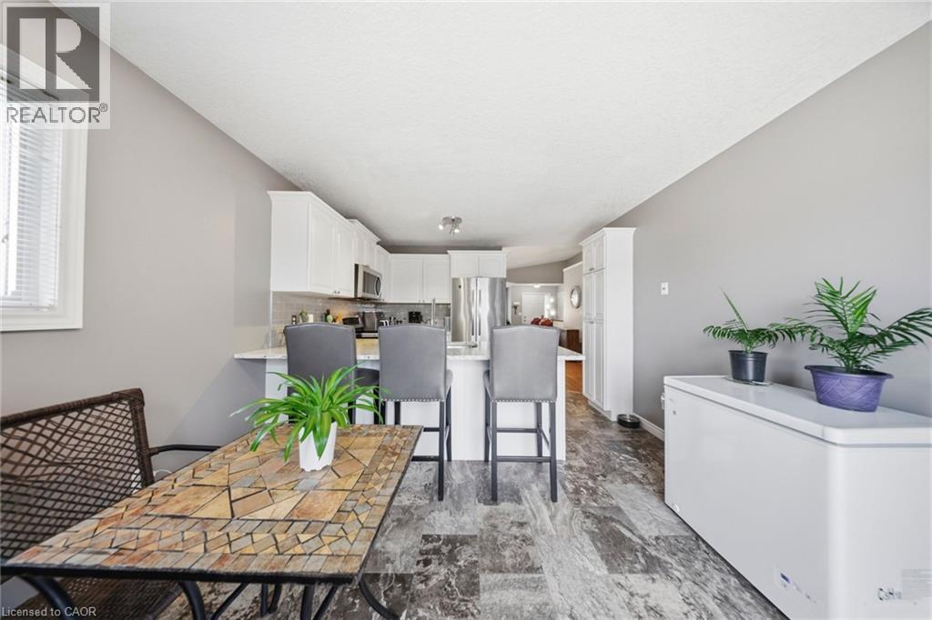Welcome to 858 Stonegate Dr., a beautifully maintained walkout bungalow in Woodstock’s highly desirable south end. The main level offers 3 bedrooms, a 4-piece bathroom, and an open-concept living and dining area enhanced by hardwood flooring and soaring ceilings. The beautifully updated eat-in kitchen (2020) walks out to the upper deck, creating an ideal space for everyday living and entertaining. The fully finished walkout basement adds exceptional versatility with an in-law suite featuring an open-concept kitchen and family room with built-ins, oversized windows, 1 bedroom with a massive walk-in closet, and a 3-piece bathroom. Shared laundry and patio doors lead to the professionally finished rear yard with interlock patio (2020) and firepit. Extensive updates include a refinished kitchen (2022), A/C (2020), interlock walkways and patios (2020), steel roof with lifetime warranty (2019), front retaining wall and seating area (2018), furnace (2016), water softener (2016), and tankless water heater (rental, 2016). A true turnkey opportunity for first-time buyers, multi-generational families, or investors, ideally located just seconds to Highway 401, Woodstock Hospital and within minutes to shopping, and everyday amenities. (id:64974)