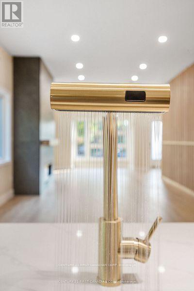 An exquisite, new home in prestigious Old North with unparalleled materials and artistry. This masterpiece boasts 5000 sqft of thoughtful, custom-designed living, perfect for a single family, multi-generational family, and executive lease income potential. The elegant stone and brick exterior hints at the exceptional quality within. The grand entrance welcomes you to sun-filled space, 10-foot ceilings and walls of windows creating an immediate sense of openness and light enhanced by 4 skylights bathing the home in sunshine. The custom open-riser maple staircase with maple-slat wall, opposite the gas fireplace set into a stone media wall, speak to the craftsmanship and care in every detail of this residence. The home features two connected but also distinct, complementary wings - Main Wing and Guest Wing - offering self-contained, separate entrances, luxurious living spaces with 2 gourmet kitchens, open-concept living room, family room and dining areas. Bask in 2 primary ensuites among 5 bedrooms, 6 baths, and 2 laundries on the upper levels of the home. Two fully finished basements add 3 bedrooms, 2 baths, a Media room and a Gym (both versatile). Nestled on an expansive 350-ft deep lot, picture summer gatherings under the trees with your private park-like yard. The property boasts a large back deck with built-in gas and water hookups overlooking your own private 'estate' with a fire pit surrounded by massive stone seats in addition to the stunning 30-foot wide cedar-walled balcony, accessible from both wings. The oversized 19ftx31ft garage with16ft high ceiling and 2 EV charging outlets ensures modern convenience, while the low maintenance metal roof guarantees durability. A luxurious, versatile home in one of London's most coveted neighborhoods. Minutes to excellent schools, Western University and University Hospital. Included* 2 sets of high-end appliances, 2 HVAC systems, 2 on-demand water heaters, 2 /200amp panels, 2 sets of all meters. Photos virtually staged. (id:64974)