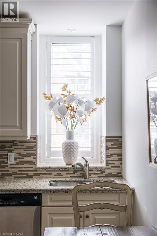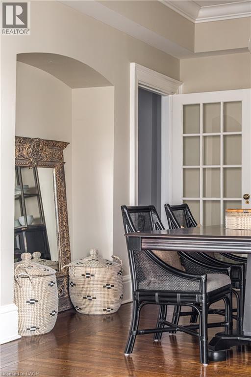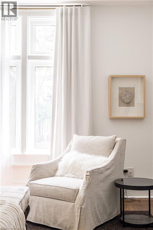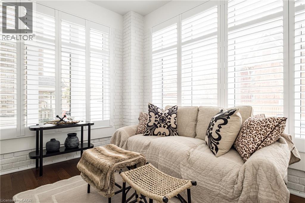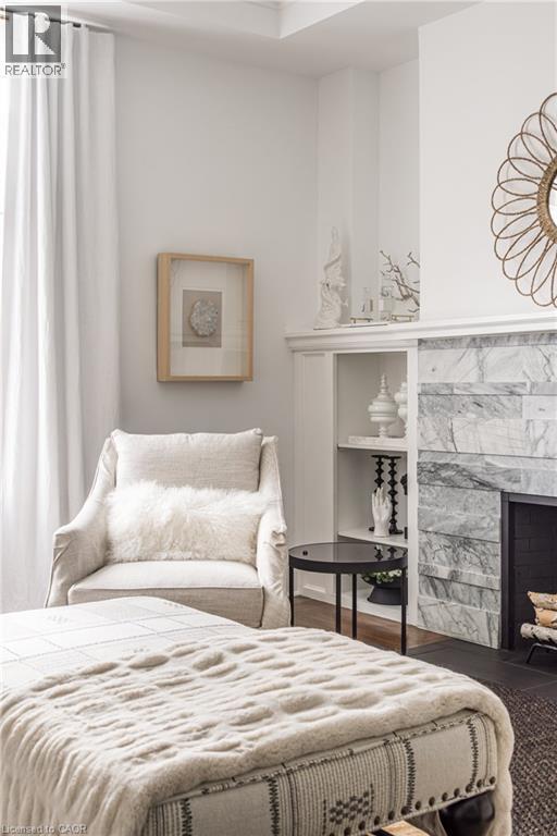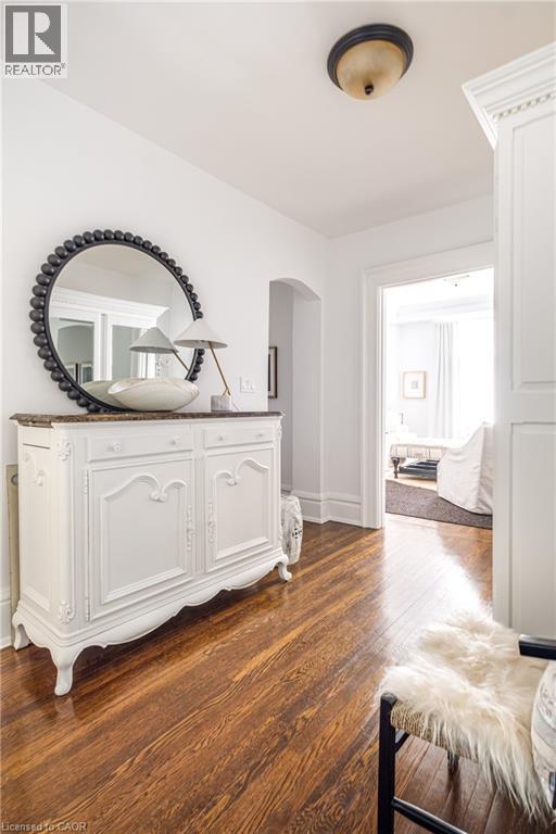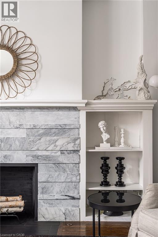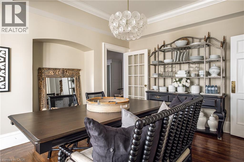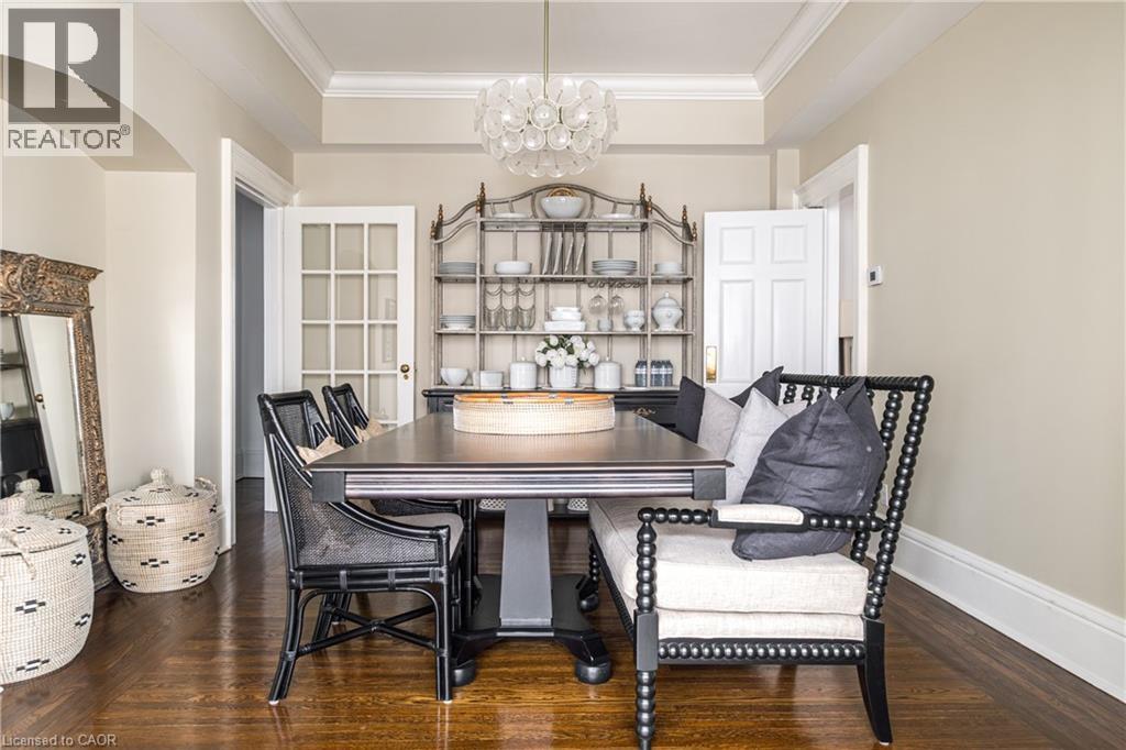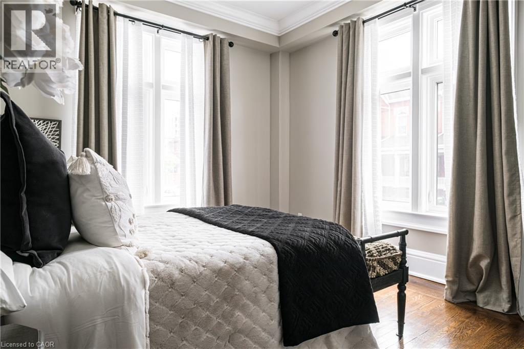 Welcome to the historic “Herkimer Apartments”, one of Hamilton’s most prestigious condo conversions, located in the heart of the Durand neighbourhood. Designed by renowned architect William Palmer Witton and built in 1915, this landmark was once the pinnacle of luxury living, featuring marble staircases, ornate moldings, steam heating, and Canada’s first elevator and central vac system. It remains Ontario’s last standing building with a terracotta portico. Today, Herkimer Apartments continues to captivate with 23 exquisite condo’s including this stunning 1,728 sq ft unit, which retains its original floorplan and offers two separate entrances. Inside, you'll find gleaming dark hardwood floors, soaring high ceilings, 10” baseboards, crown molding, and elegant finishes throughout. The original servant’s door, steps into a discreet back entry with storage, a stunning 2-piece bath, laundry, and utility room. The bright, spacious kitchen features granite countertops, stainless steel appliances, butler pantry station, and original swinging door leading to the formal dining room, ideal for hosting dinner parties and family gatherings. An adjacent sunroom features built-in bookcases and is the perfect space for a den or home office. The formal front entrance invites you into a spacious hallway and elegant living room featuring a fireplace with stunning Carrara marble surround and built-in bookshelves and the perfect place to relax or entertain. The bedroom wing boasts a newly renovated 4-piece bath with marble floors and two spacious bedrooms, including the primary with walk-in closet. Residents have access to a rooftop terrace with panoramic city views to enjoy. Updates incl furnace (2020) washer & dryer (2019) both bathrooms (2019). Just steps from St. Joseph’s Hospital, Locke Street S, parks, trails, GO Station and Hwy 403 access makes this is an extraordinary opportunity for the sophisticated buyer seeking a home with timeless elegance and historical significance. RSA. (id:64974)