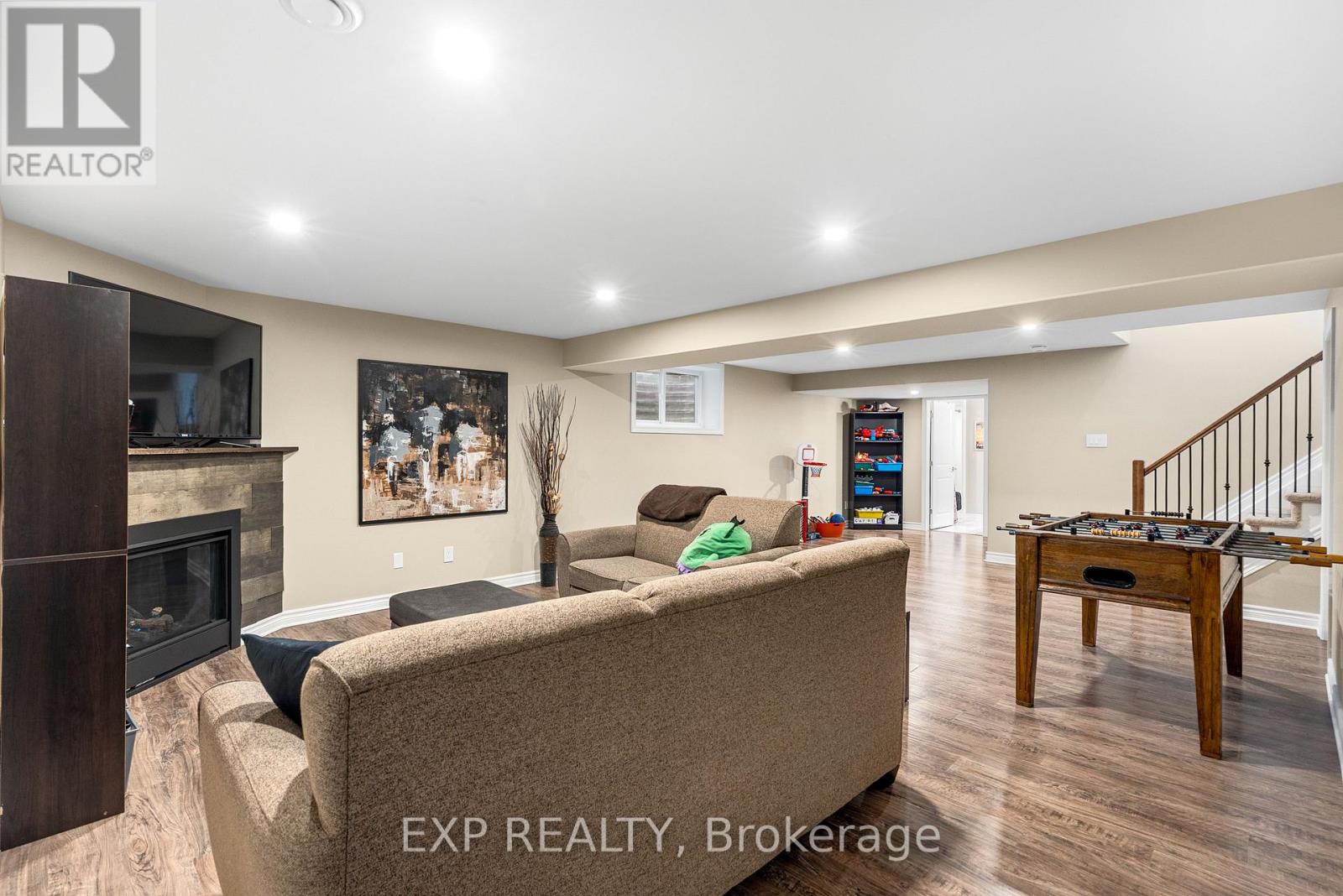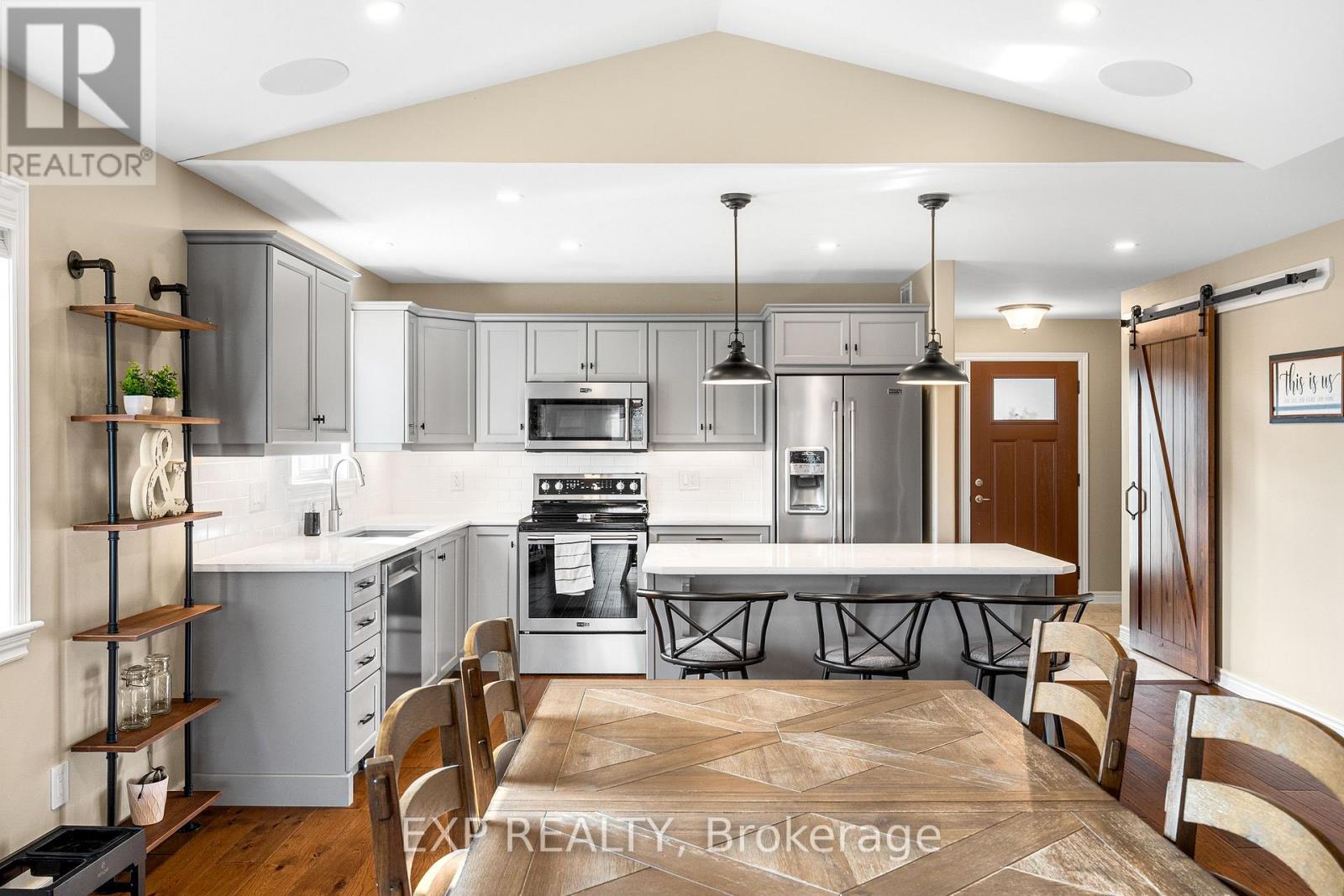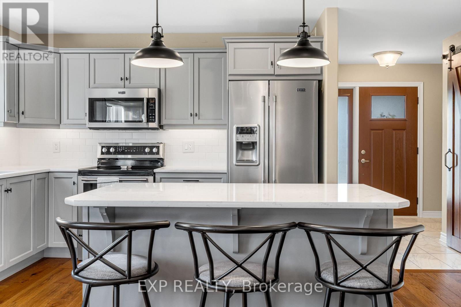 Experience luxury living in Mill Run, Almonte with this exceptional 4-bedroom, 3-bath bungalow, perfectly nestled on an expansive pie-shaped lot. Constructed in 2019, The McIntosh welcomes you with a striking front entrance and tiled foyer featuring ample closet storage and a stylish sliding barn door. A spacious front office, bathed in natural light, provides the perfect workspace or reading nook. Step into the heart of the home in a stunning Deslaurier-designed kitchen complete with granite countertops and premium stainless-steel appliances, seamlessly flowing into an open-concept dining and living room. Gather by the modern gas fireplace or enjoy effortless indoor-outdoor entertaining with 8 feet patio doors leading to multi-level decks and a backyard oasis. The main level boasts elegant hardwood barn-style flooring, laundry/mudroom with extra storage, two large kids bedrooms, and a crisp family bath. Also on the main floor is your private primary suite, a true retreat with generous proportions, a walk-in closet, and a spa-inspired ensuite. The finished basement extends the living space with a bright family room warmed by an additional fireplace, a fourth bedroom, full bath, and abundant storage solutions including an area for a gym. Parking is never an issue with an insulated and heated double garage plus a triple-wide, six-vehicle driveway. Enjoy a backyard designed for every lifestyle: a paved sports/basketball area, versatile decks for summer dining, a shaded patio, a salt-water heated above-ground pool, plus mature gardens and handy storage shed. This thoughtfully designed home blends everyday comfort with standout style. Located only minutes from Almonte's vibrant core of shops & restaurants & amenities. This home provides the perfect balance of modern living and small-town charm. Don't miss your opportunity to make it yours. Schedule your private tour today. (id:64974)