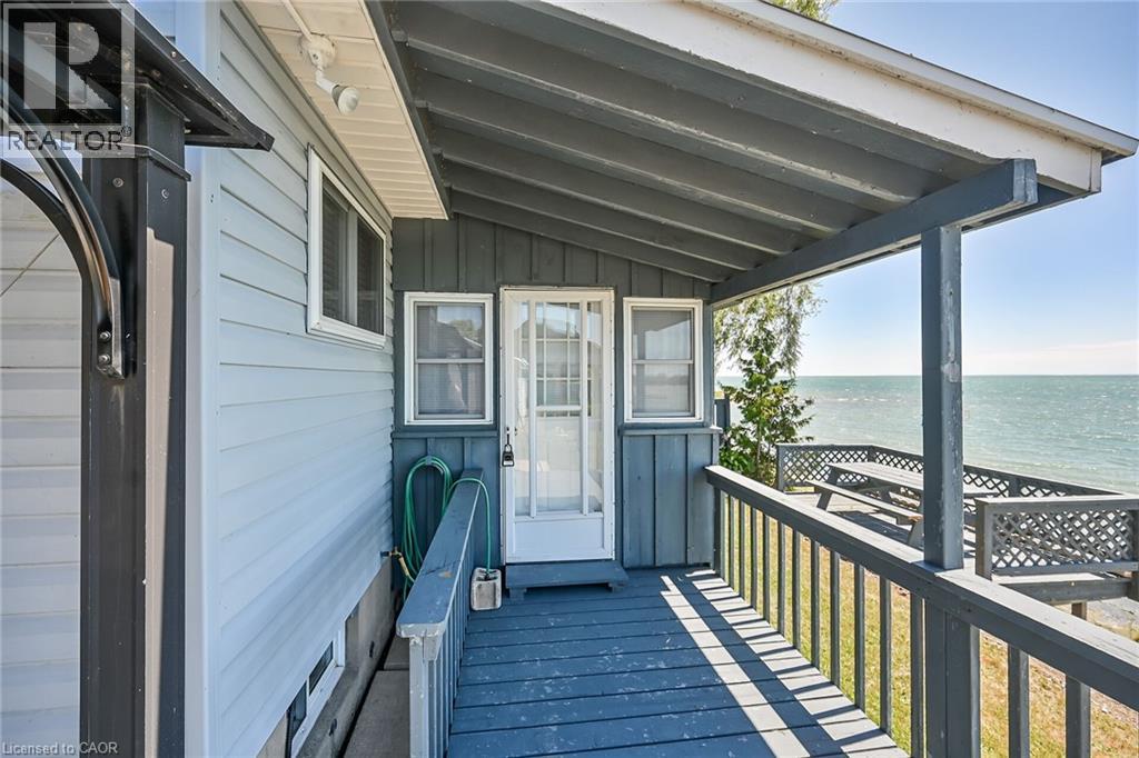 Beautiful Lake Erie waterfront cottage located in the heart of Selkirk Cottage Country - relaxing 45-55 minute commute to Hamilton, Brantford & Hwy 403 - 20 minutes west of Dunnville & 20 minutes east of Port Dover’s popular amenities including links style golf course, live theatre & famous beach front - only minutes to downtown Selkirk shops & eateries. Includes tastefully finished winterized cottage positioned proudly on 0.07 acre lot enjoying over 50ft of coveted water frontage protected by solid poured & block concrete break-wall boasting — waterfront observation deck & permanent steel ladder accessing hundreds of sand bottom Erie water - imagine swimming, paddle boarding, canoeing, kayaking, jet skiing, boating or fishing right in your back yard. This “larger than it appears” Erie Gem features large private lake facing entertainment deck providing entry to southern exposed 3-seasons sunroom - continues to bright, open concept kitchen/dining room/living room completed with main floor 3 pc bath. Newer 8ft high poured concrete basement-1992 offers the ideal venue for spacious primary bedroom - also housing utility/storage room. Notable extras include stylish vinyl sided exterior, new vinyl porch windows-2024, new hot water heater-2025, metal roof, upgraded 100 amp hydro service on breakers, 2000 gal water cistern-2008, 2000 gal septic holding tank, functional multi-purpose shed includes hydro plus oversized double driveway. Extremely well insulated home is incredibly economical to operate plus very low property taxes. Perfect for Retired Snow Birds - Affordable for 1st Time Home Buyers - or -The Ultimate Week-day/Week-end Lake Escape! (id:64974)
