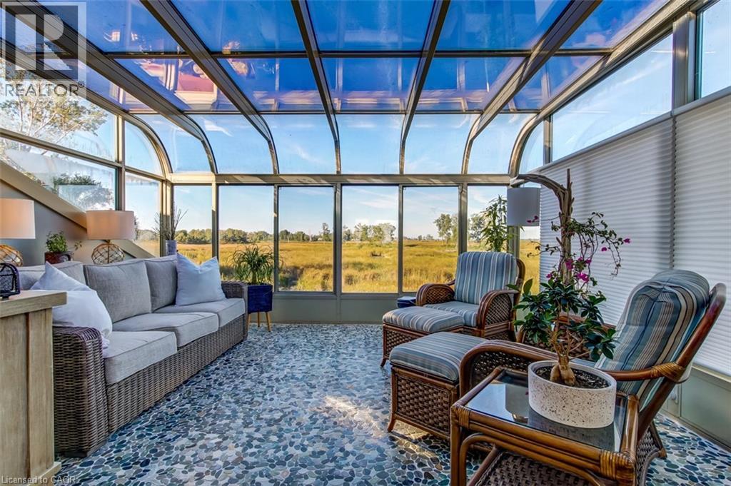 Welcome to this stunning 2-storey lake house, perfectly situated along the channel on Long Point’s sought-after Old Cut Boulevard. From the moment you arrive, you’ll be impressed by the double garage, paved driveway, professional landscaping, heated sidewalk and ramp, plus an irrigation system controllable from your phone. Featuring James Hardie siding, shingle-style metal roof, new windows, and Gutter-Guard eavestroughs, this home is built to last. Step inside to a welcoming foyer with a striking staircase. The main-floor bedroom is wheelchair accessible with an ensuite featuring heated floors (Wi-Fi controlled), lighted mirror, tub, and walk-in shower. The vaulted Great Room boasts a floor-to-ceiling stone fireplace and patio doors opening to a multi-level deck with screened 10×12 gazebo. A cozy sitting room overlooks the channel and bay, while the den is ideal for reading or entertaining. The chef’s kitchen offers granite counters, stainless appliances, double wall oven, induction range, and a bright dining area with sunrise views. Main-floor laundry is tucked conveniently off the kitchen. Upstairs, the primary suite is a true retreat, complete with oversized skylight for stargazing, luxury ensuite with Toto bidet, steam shower, heated floors, and smart controls. Step into the four-season sunroom, where heated floors and a dual heat pump keep you comfortable as you enjoy the breathtaking views. Two additional bedrooms and another full bath complete the upper level. Smart blinds throughout, numerous upgrades, and exceptional attention to detail make this property a must-see. Call today for more information. (id:64974)