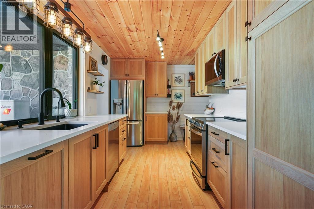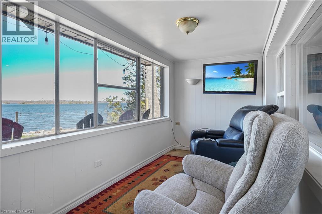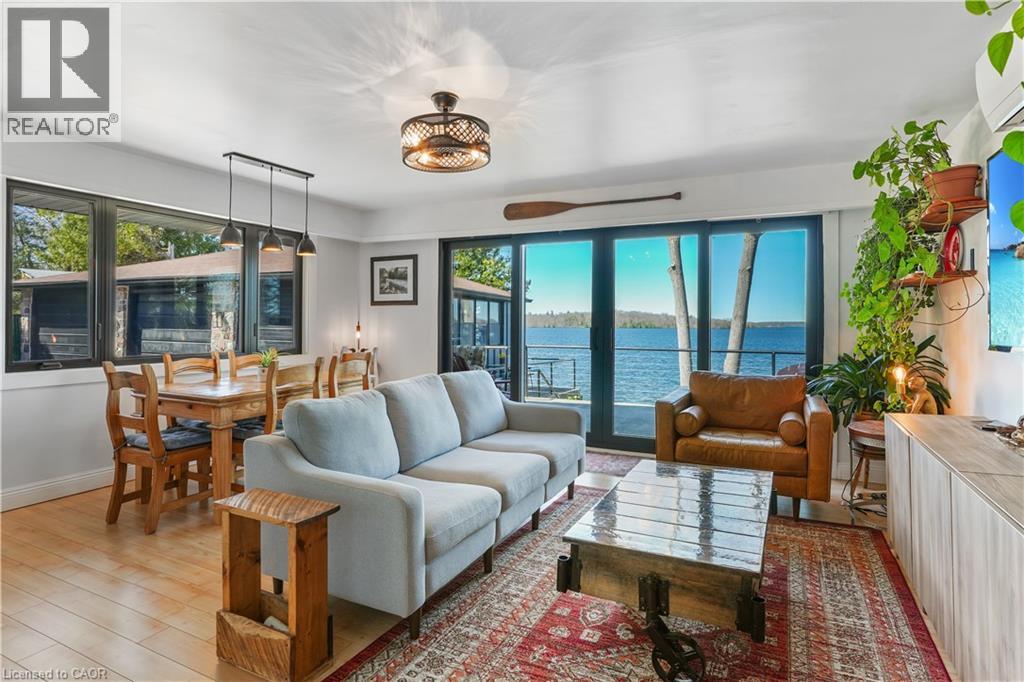 Your Waterfront Escape Awaits! Nestled on the serene south shores of Rice Lake, this property offers 75 feet of sparkling, west-facing waterfront — the perfect backdrop for unforgettable sunsets and year-round relaxation. Whether you're searching for a permanent residence or a four-season cottage getaway, this beautifully updated stone bungalow has it all. Inside, you’ll find 3+1 bedrooms and 2 full bathrooms, including a finished walkout basement complete with a wood burning fireplace, sunroom and spacious rec room — ideal for hosting family and friends. Enjoy the convenience of main-floor laundry, a brand-new kitchen with appliances (2024), and extensive updates including new windows, doors, soffit, fascia, and eavestroughs (2023). Efficient and comfortable living is ensured with three heat pumps and UV water filtration (2023). Step outside and explore the meticulously maintained grounds. A detached 3-car garage with a wood-burning fireplace offers extra storage or a great workshop space, while two fire pits set the scene for cozy summer nights under the stars. Water enthusiasts will appreciate the dry double-slip boathouse equipped with rails, electric winches, and cables, plus a 50’ aluminum Ritley dock system featuring a swim ladder and sandy/rocky shallow entry into the clear waters. A concrete seawall provides long-term shoreline protection. Eco-conscious buyers will love the owned 10 KW solar panel system, supplying power directly to the home and the updated R60 attic insulation. Located at the quiet end of a dead-end road, this once in a lifetime opportunity promises peace, privacy, and the ultimate waterfront lifestyle. (id:64974)