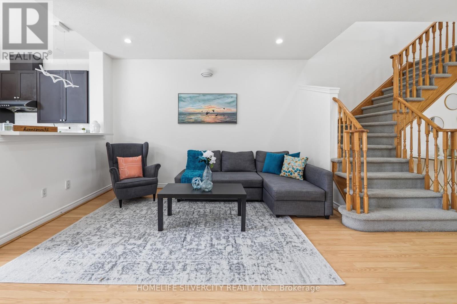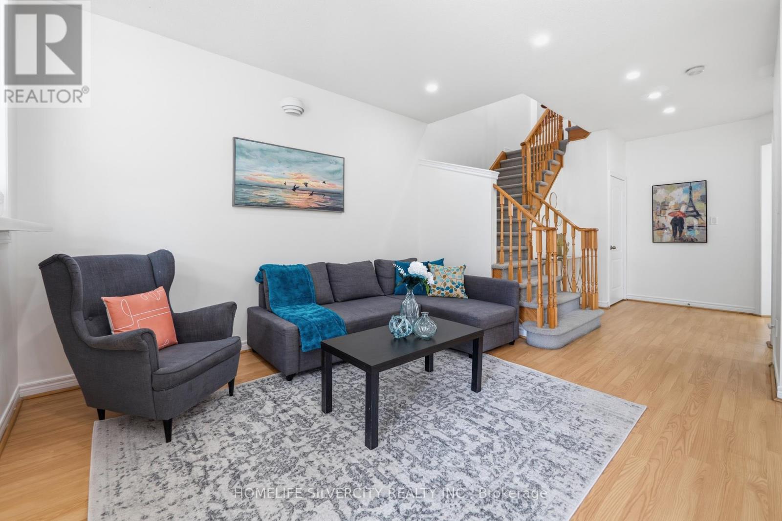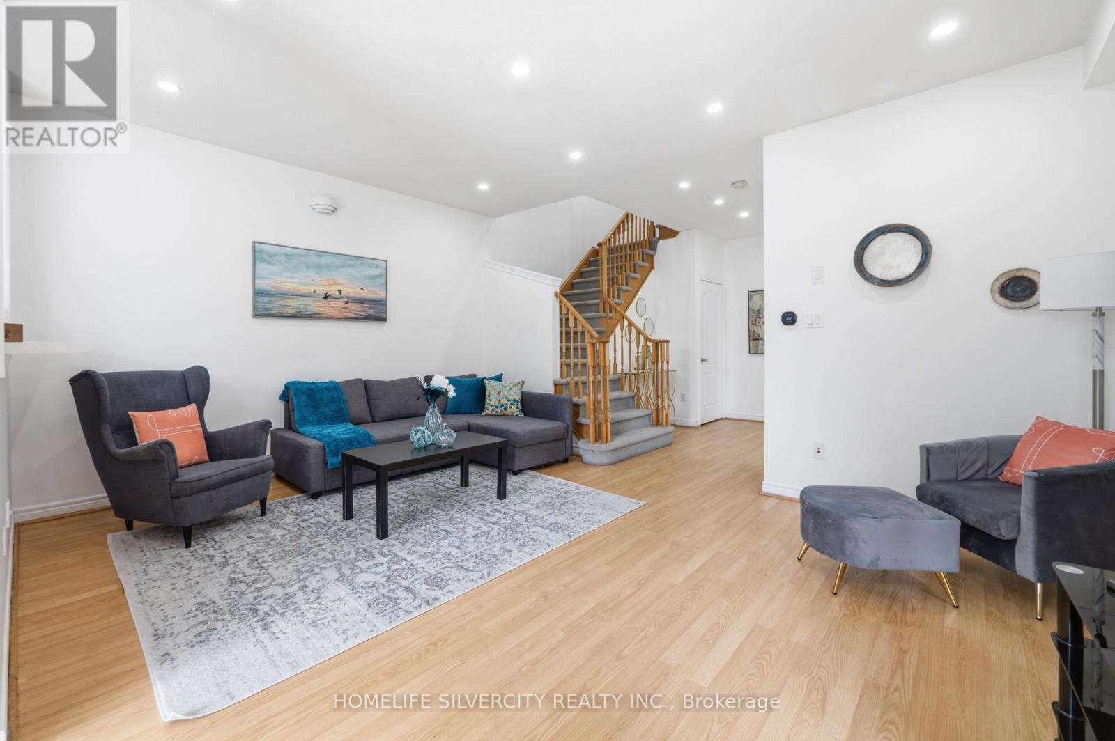 Beautiful semi-detached home in the prestigious Lakelands Village community. Well-maintained 3-bedroom layout with a finished 2-bedroom basement featuring a separate entrance through the garage. Bright, open-concept main floor with laminate flooring and fresh paint. Spacious kitchen with tall cabinets, quartz countertops, and stainless steel appliances, with a walkout from the breakfast area to the backyard. Enjoy 9 ft. ceilings on the main level and a family-friendly neighbourhood just steps to the 14-acre lake, parks, Esker Lake Trail, and minutes to Turnberry Golf Course and Hwy 410. (id:64974)