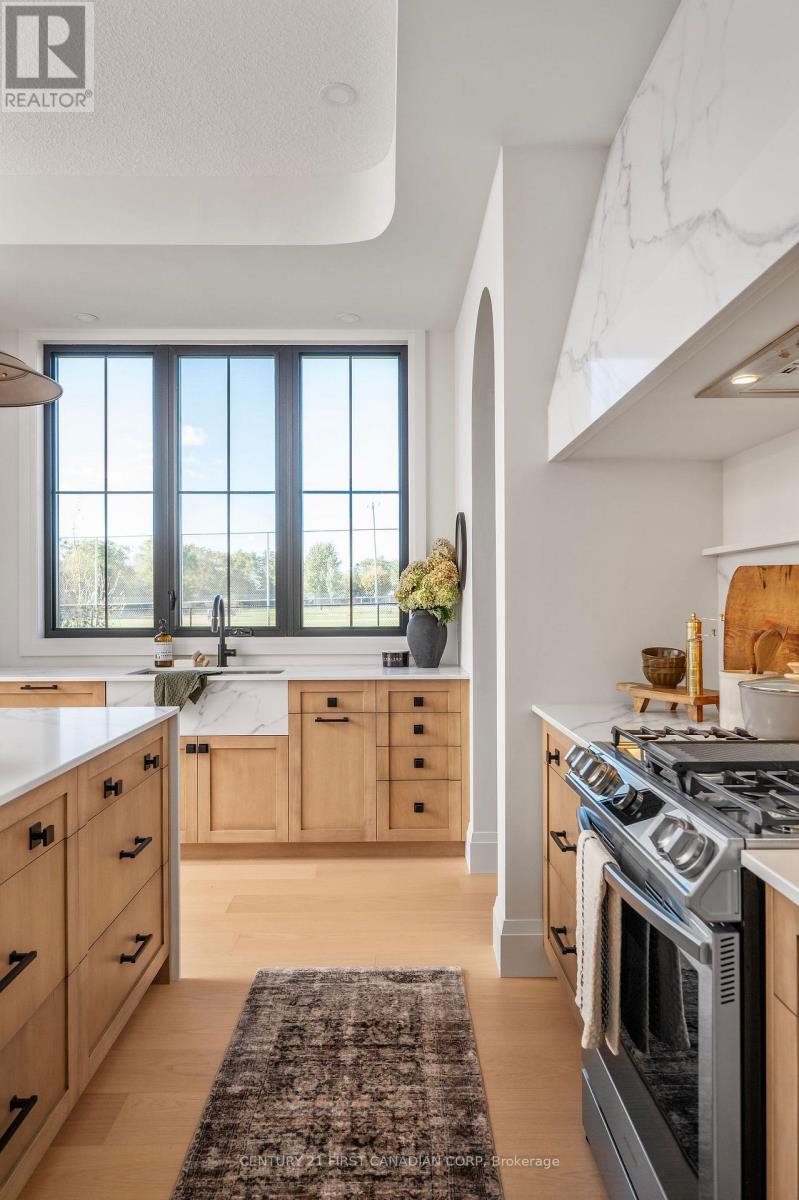 Royal Oak Homes proudly presents the "Kleinburg I", a stunning 2-storey home with 3 bedrooms, 2.5 baths, and a spacious 2-car garage, offered as a TO BE BUILT home in the prestigious Sunningdale Crossings community in North London. Thoughtfully designed, this residence perfectly combines style, functionality, and comfort. The main floor features an open-concept layout with a welcoming family room, dining area, and kitchen, designed for seamless living and entertaining plus a private office and a convenient main-floor laundry for everyday ease. The upper-level hosts three generous bedrooms, including a spacious primary suite with a walk-in closet and luxurious 5-piece ensuite. Enjoy quick access to parks, scenic trails, top-rated schools, shopping, and major highways. More plans and lots are available. Photos are from previous models for illustrative purposes; each model differs in design and client selections. (id:64974)
