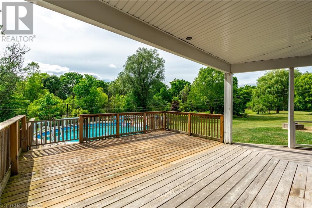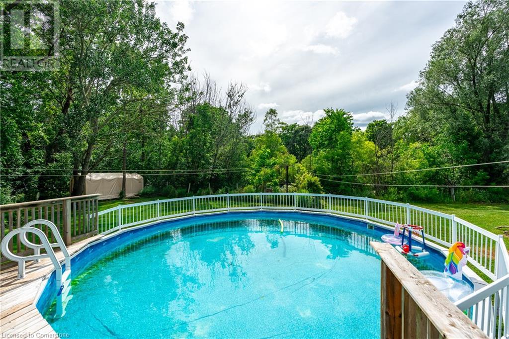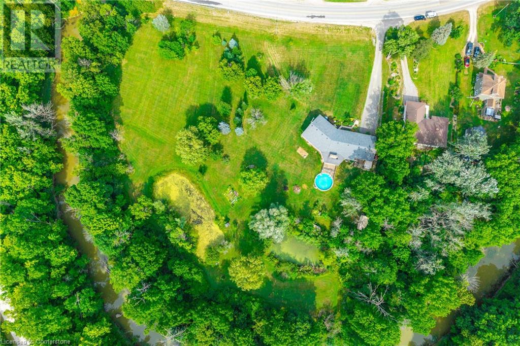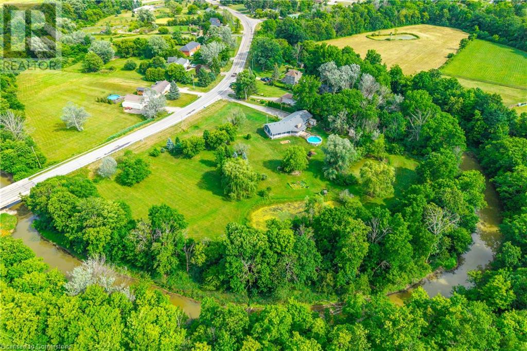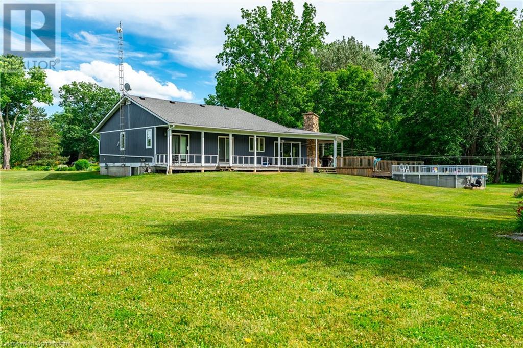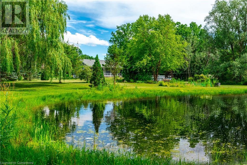 Welcome to your own private oasis just 15 minutes from Stoney Creek. Nestled on over 4 beautifully landscaped acres along the Chippawa Creek, this exceptional property offers a rare combination of privacy, nature, and convenience. The spacious ranch-style bungalow features a sunken living room, expansive windows with stunning rear-facing views, and a covered back porch that runs the full length of the home—perfect for relaxing or entertaining in the peaceful surroundings. A fully self-contained in-law suite with a separate entrance offers incredible flexibility for multigenerational living, guests, or extended family. Designed with accessibility in mind, the suite adds comfort and function to this already versatile layout. The partially finished basement adds even more potential for recreation or storage. Outside, the property showcases manicured lawns, two spring-fed ponds, and an above-ground pool, making it a dream for outdoor living. The home has been thoughtfully updated with back roof shingles in 2019 and front shingles in 2025, a new furnace, A/C, and hot water tank in 2024, plus new windows in the bathroom and primary bedroom. The entire home was freshly painted in 2021. This is the perfect escape for those seeking country serenity without sacrificing access to city amenities—a truly special property ready to be enjoyed. (id:64974)