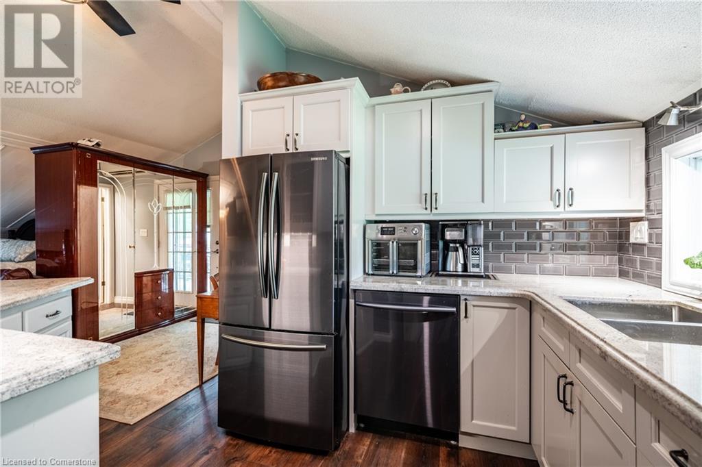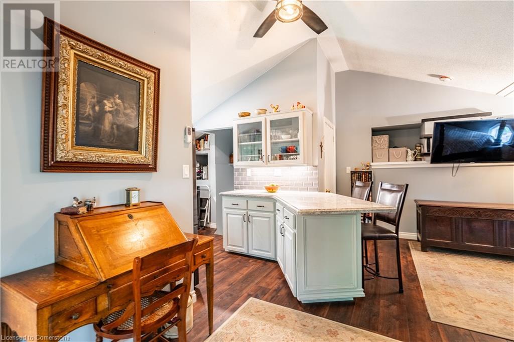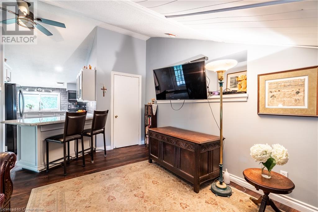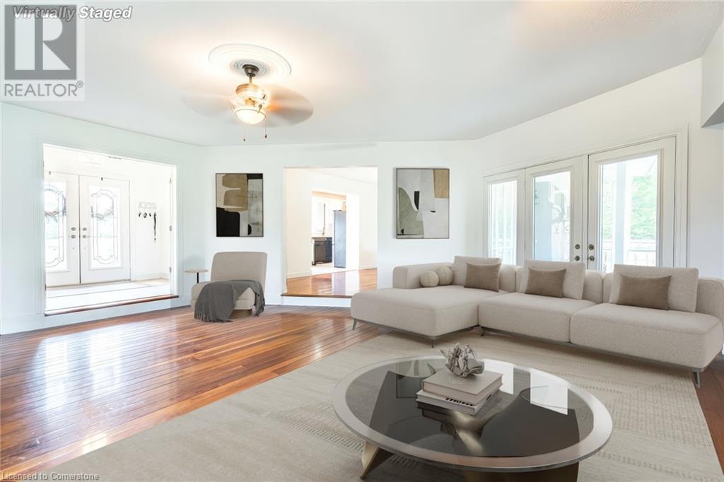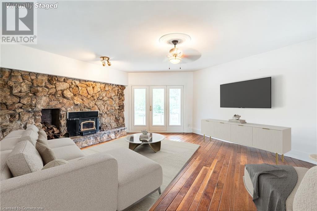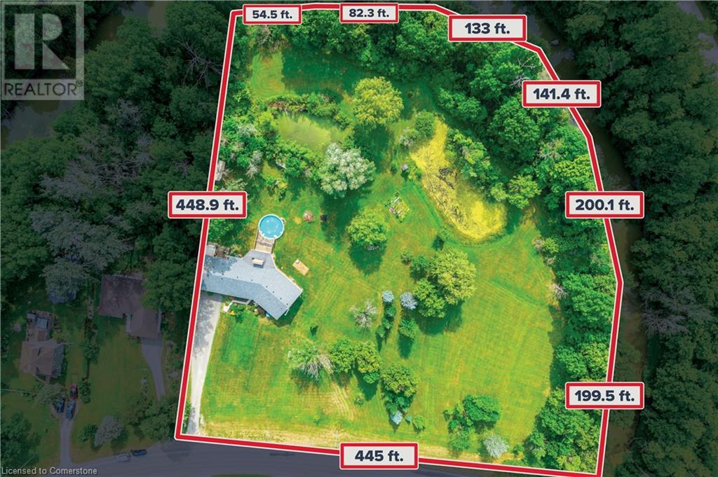 Welcome to your own private oasis just 15 minutes from Stoney Creek. Nestled on over 4 beautifully landscaped acres along the Chippawa Creek, this exceptional property offers a rare combination of privacy, nature, and convenience. The spacious ranch-style bungalow features a sunken living room, expansive windows with stunning rear-facing views, and a covered back porch that runs the full length of the home—perfect for relaxing or entertaining in the peaceful surroundings. A fully self-contained in-law suite with a separate entrance offers incredible flexibility for multigenerational living, guests, or extended family. Designed with accessibility in mind, the suite adds comfort and function to this already versatile layout. The partially finished basement adds even more potential for recreation or storage. Outside, the property showcases manicured lawns, two spring-fed ponds, and an above-ground pool, making it a dream for outdoor living. The home has been thoughtfully updated with back roof shingles in 2019 and front shingles in 2025, a new furnace, A/C, and hot water tank in 2024, plus new windows in the bathroom and primary bedroom. The entire home was freshly painted in 2021. This is the perfect escape for those seeking country serenity without sacrificing access to city amenities—a truly special property ready to be enjoyed. (id:64974)