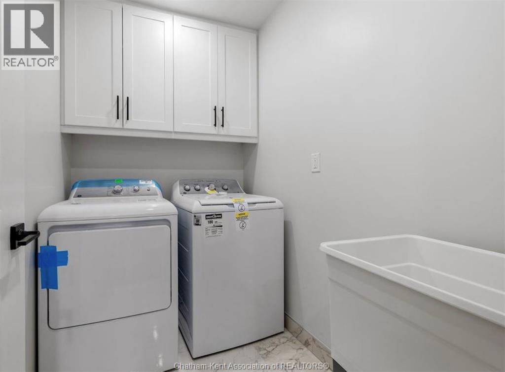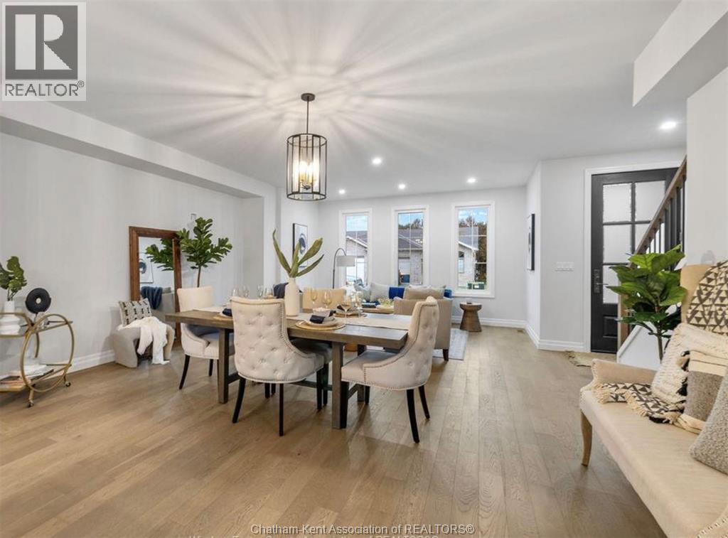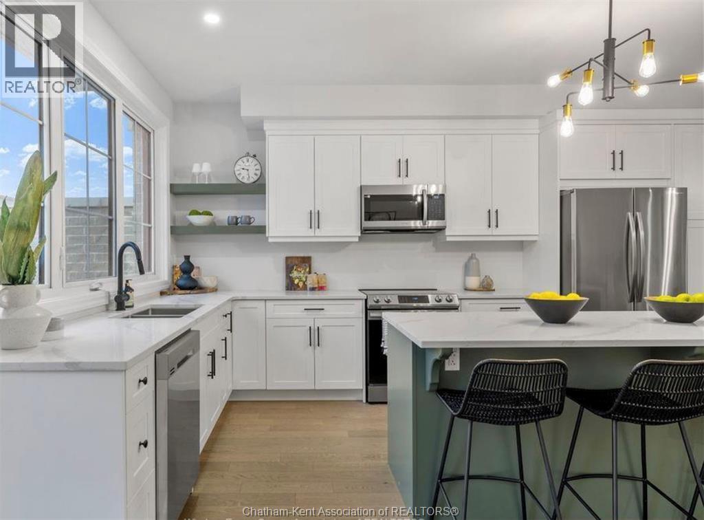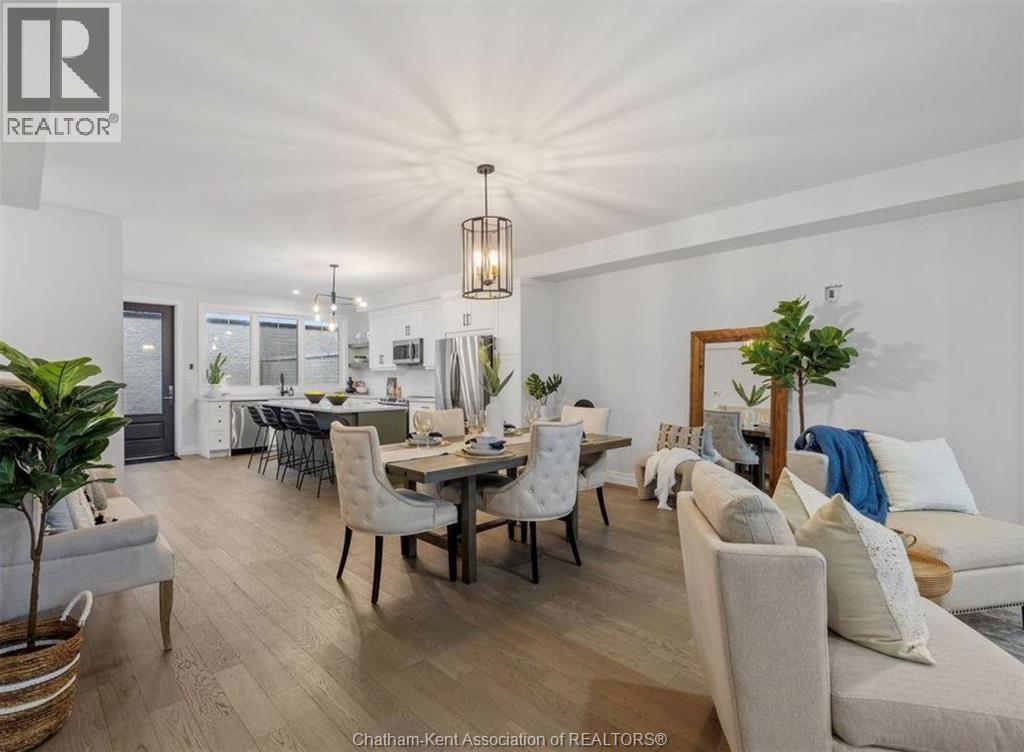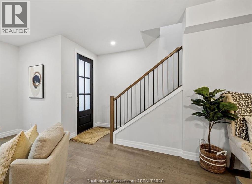 Built in 2023, this modern move-in-ready townhome offers approximately 1,800 sq ft of stylish, low-maintenance living. Featuring 3 bedrooms and 2.5 baths, all bedrooms are conveniently located on the upper level, including a spacious primary suite with walk-in closet and private ensuite. The main floor showcases engineered hardwood flooring, quartz countertops, a beautiful kitchen, and stainless steel appliances. Enjoy a private enclosed 17’ x 22’ concrete courtyard, perfect for outdoor relaxation without the upkeep of a traditional yard. The unfinished basement provides excellent potential for additional living space, gym, or storage. Detached single-car garage plus a double-wide driveway with parking for up to 6 vehicles. Ideally located with quick access to Highway 401 in a quiet suburban setting, this home is perfect for buyers seeking luxury, flexibility, and easy living. Images shown are from a similar model unit and are intended to illustrate layout only; finishes, fixtures, and staging may vary from the subject property (id:64974)