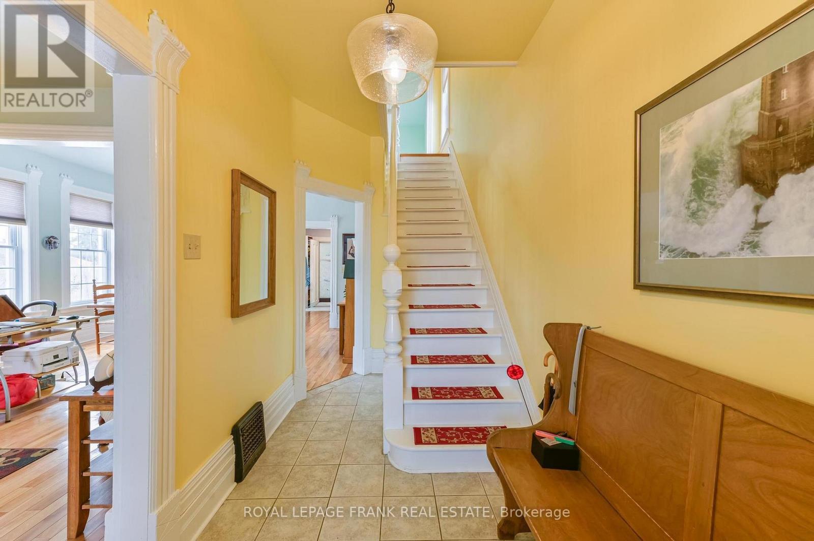 This beautifully large brick century home is situated in a great west end location. It is the original farm house, the current owners have enjoyed 40 years here. It has been lovingly maintained with many upgrades. Beautiful birch floors in the living room and spacious formal dining room, lots of beautiful crown moulding, modern kitchen with lots of cupboards, main floor family room with a gas stove for your enjoyment. Elegant staircase that goes to the second floor. Roof shingles just under 4 years. Newer windows, freshly painted last year. Large lot 75' by approximately 200 feet. Sun porch for the nature lover in you off the family room. Bonus 20x20 workshop. Home Inspection Report available. (id:64974)