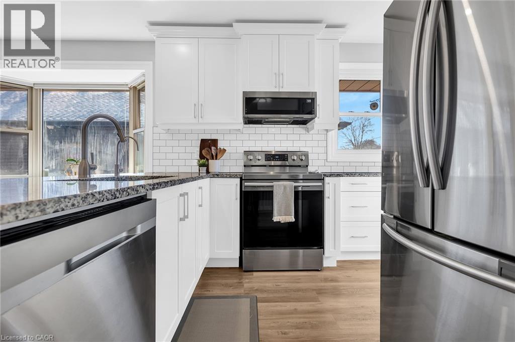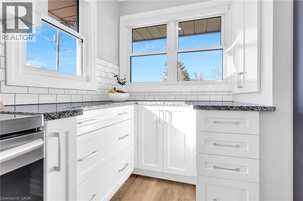 Welcome to this beautifully updated brick bungalow nestled in the highly sought-after North Woodstock community. This charming home offers 2+2 spacious bedrooms and 1+1 modern bathrooms, making it ideal for families, downsizers, or anyone seeking move-in-ready comfort. Step inside to discover a fully renovated interior featuring stylish finishes throughout. The bright and inviting main level flows seamlessly into a fully finished basement, providing additional living space perfect for a recreation room, home office, or guest suite. Outside, enjoy a large, private lot backing directly onto Brompton Park—offering peaceful views and easy access to green space. The tastefully landscaped yard is perfect for relaxing or entertaining. A standout feature is the detached garage with convenient lower-level storage, along with ample parking for up to 4 vehicles. Located just minutes from trails, schools, transit, churches, and shopping, this home combines modern living with exceptional convenience in one of Woodstock’s most desirable neighbourhoods. Don’t miss your opportunity to own this turnkey property in a prime location! (id:64974)