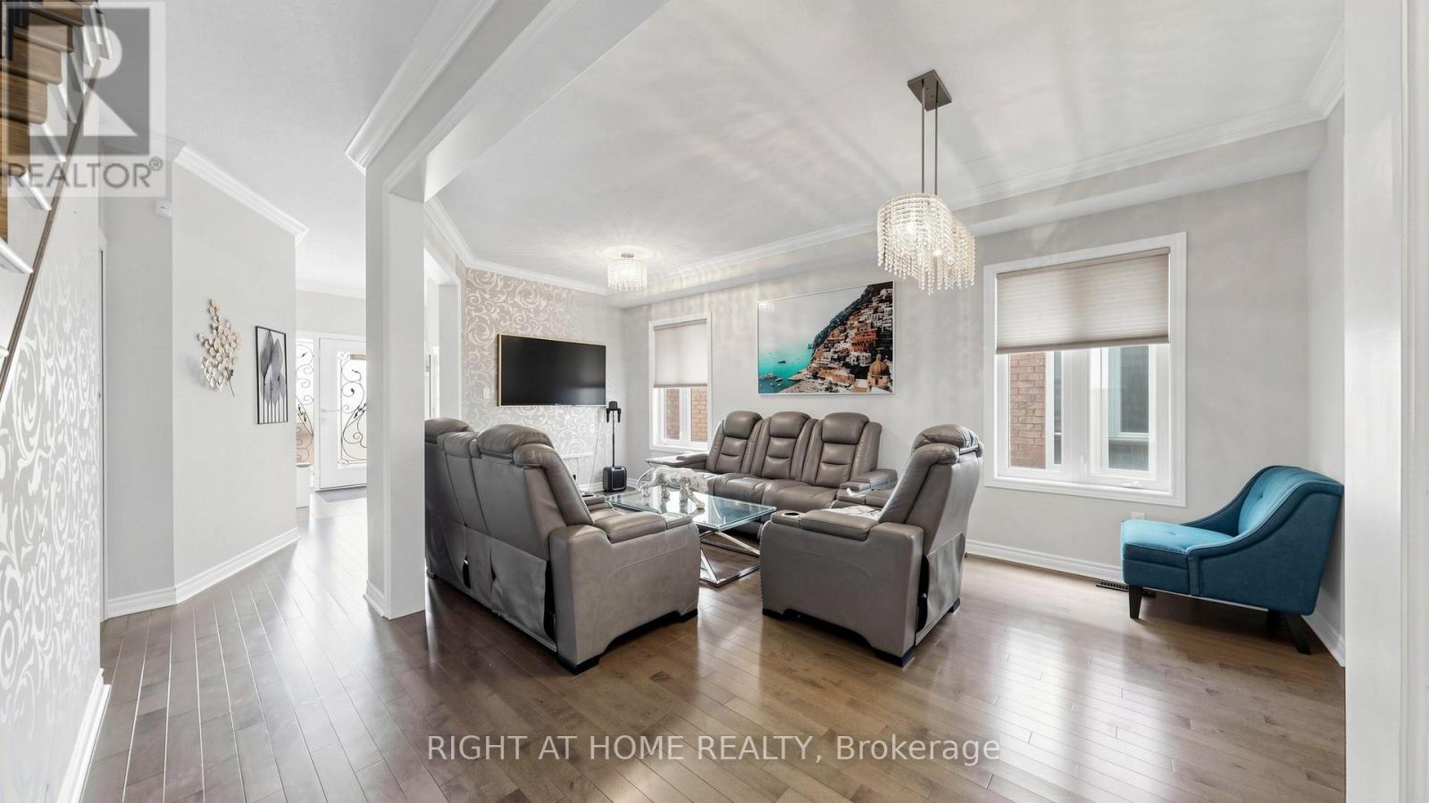 Experience luxury in this captivating 4-bedroom residence spanning 2807 sqft. The open-concept main floor features 9 ft ceilings, hardwood, and tile flooring, complemented by crown moulding. A gourmet kitchen with quartz countertops and glass tile backsplash opens to a spacious family room. The main floor office offers flexibility. Upstairs, four large bedrooms await, each with ample closets. The finished Legal basement adds three bedrooms and two washrooms for added convenience. Welcome to unparalleled comfort and elegance in this remarkable home. (id:64974)